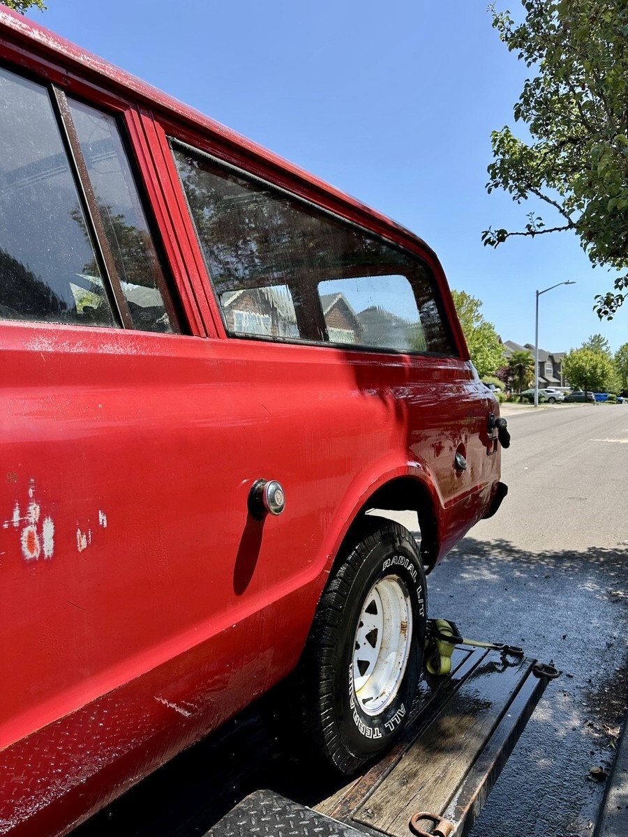 Up for sale is my Original Barn Door 4x4 Burb. It’s all stock, lots of cool factor! V8, auto, tow hooks, red on black which is a nice color combo. Has some rust but mostly minimal stuff compared to typical burbs. Extra parts, extra doors, extra wheels, nice motor. Needs fuel pump/ fresh gas / work. Currently not running and has been parked for years.