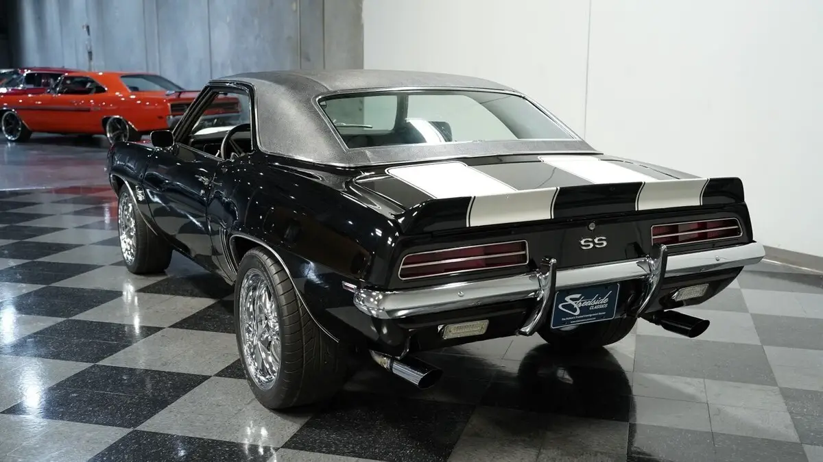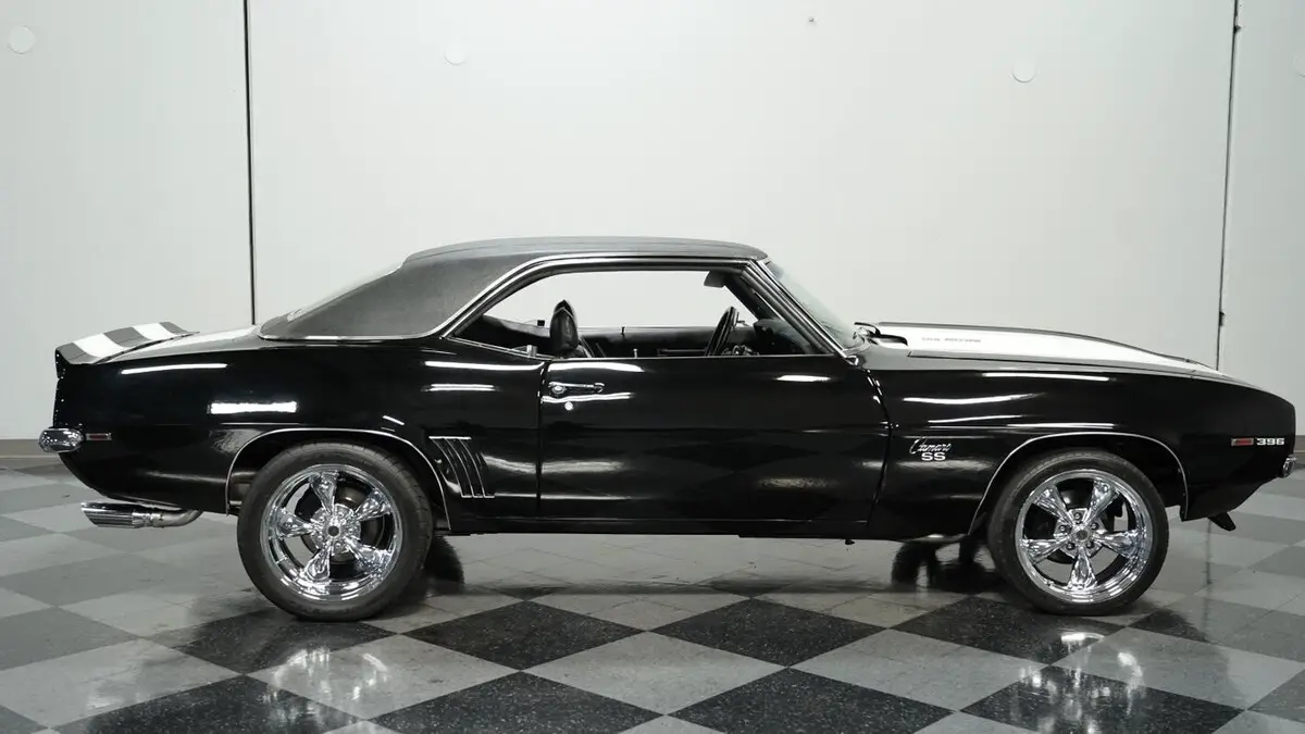 Vehicle Original VIN : 124379N594776• 396 V8 Engine • 3 Speed Automatic Transmission (TH400) • Single 4 Barrel Carburetor • Edelbrock Carburetor • Champion Aluminum Radiator • Long Tube Manifolds • Dual Exhaust • FlowMaster Mufflers • Four-Wheel Disc Brakes • 10 Bolt Rear Axle • Black Paint with White Stripes • Black Vinyl Top • 18" Front & 18" Rear Wheels • 235/40R18 Front & 275/40ZR18 Rear Tires • Black & White Houndstooth Interior with Bucket Seats and Console • Power Steering • Power Windows • Tilt Wheel • AM/FM Cassette Player • Digital Gauges