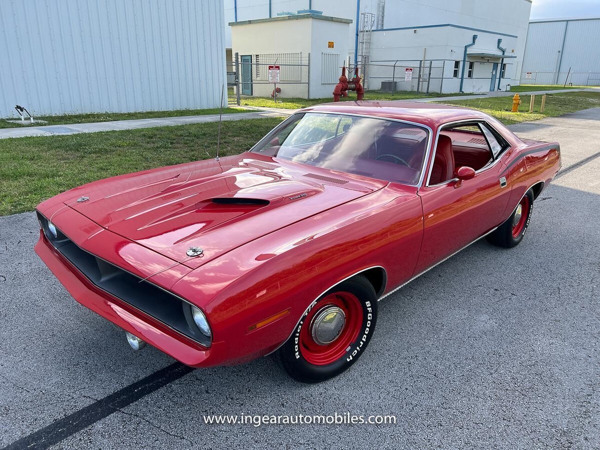 Vehicle Original VIN : BS23H0B242411Call me 305-542-5662. Up for sale is a very rare Mopar! 1970 Plymouth Cuda red on red! 3-Speed manual Transmission! Elastomeric front & rear bumpers! Build Sheet! Lots of options and very few made in this combination. This could be a 1 of 5 ever made car, still doing more research on it. Matching numbers Engine & Matching numbers Transmission. This is a very collectible muscle car, and was part of a private car collection and is now available for purchase. Check out my video! Previous title ownerships reads milage has actually a 42k mile car!Built in February of 1970 this is a Factory "Bright red" car, Factory Red interior! This is a high trim grade car. "H"code car. The engine is a Matching numbers high performance 340cid V8 4 Barrel. Factory Hood pin optioned car. Factory rare 3-speed manual transmission car, Factory sports Hood, Dual exhaust system, Center console, buckets seats, Rallye Instrument Cluster, 8 3/4 Rear Axle 3.23 Ratio, Heavy Duty Rear Shock, Cigar Lighter, Heavy Duty Suspension/Rallye, Steering Wheel Woodgrain, Woodgrain Instrument Panel, and much more options.E55- 340 V8 Single 4 Barrel Carburetor HP 275hp. If "A53" Package "T/A & AAR" 6 Pack Carbs HP 290hp (8 Cylinder)D13- 3 Speed Manual Transmission Floor ShiftB- Plymouth BarracudaS- Special Price Class23 -2 Door HardtopH-340 V8 Single 4 Barrel Carburetor High Performance (8 Cylinder)0- 1970 Model Year (F-Series)B- Hamtramck, MI242411 – Sequential NumberFE5 – "Bright Red" in Dodge / "Rallye Red" in PlymouthH- High Trim Grade6- Vinyl Bucket SeatsE4 - Red000 – Full Door Panel203 – Scheduled to be built February 1970 on the 03 day139144 – Vehicle Order Number (VON)FE5 – Painted Top (no Vinyl Roof) "Bright Red" in Dodge / "Rallye Red" in PlymouthA62 - Rallye Instrument Cluster = Trip odometer, 150 MPH Speedo, Instrument Panel Woodgrain, Heater Control Flood Light, Tachometer, Clock, Fuel, Oil, Temperature Gauges, Ammeter and 3 Speed / Variable Wipers w/ Electric WashersC16 – Console w/ Woodgrain (and Seat Belt holder in the back of the console)C55 – Bucket SeatsJ45 – Hood Tie Down PinsJ54 – Sports HoodM21 – Drip Rail MoldingsM25- Body Sill MoldingsM31 – Body Belt MoldingsM88 – Deck Molding Treatment (Tail Light Panel Molding)N41 – Dual ExhaustN42 – Bright Exhaust TipsN85 – TachometerR11 – 2 Watt AM Radio (Music Master)Y05 - Build for USA Order26 – 26" RadiatorEN1 – End of Sales Codes on Fender Tag (Vehicle Assembled on production line #1)A lot of time and money has been spent on this cuda please see all the 100+ pictures. The interior is supposedly original and in good shape full bucket seats, full red door panels, dash and carpets are in good condition. Instrument panel gauges work, Cuda floor matts. All chrome and miscellaneous very well kept. Odometer reads 42,278I'm located in Miami about 30 minutes away from the airport. Feel free to come see the car in person. Non-refundable $500 deposit. Sold as is where is. Buyer is responsible for shipping or pickup of vehicle. Like any classic cars there's always its regular wear and tear. Clean Title. Any inquires email me. Contact me at 305-542-5662. Thanks for lookingIf you're looking to finance I would recommend JJ Best. They finance your classic car or hot rod and are very pleasant to work with.