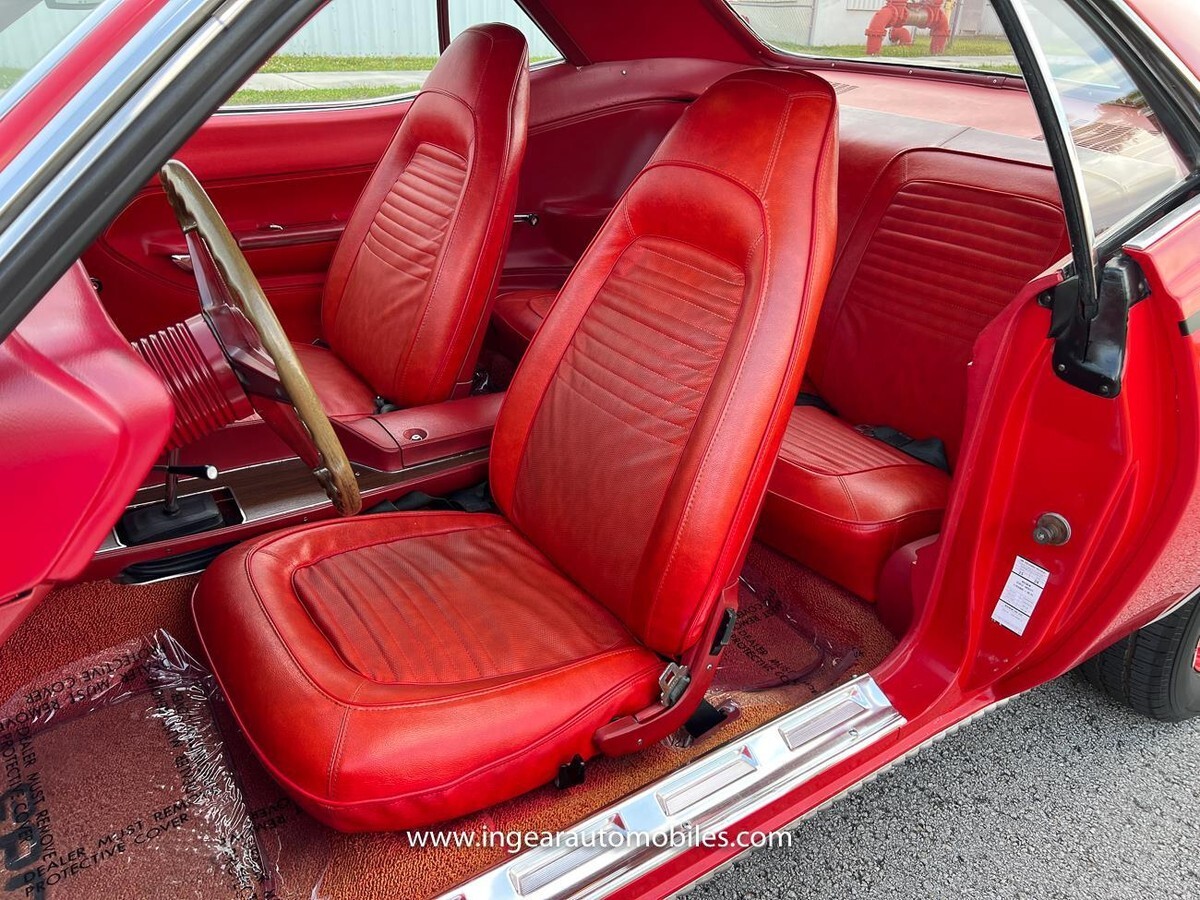 A lot of time and money has been spent on this cuda please see all the 100+ pictures. The interior is supposedly original and in good shape full bucket seats, full red door panels, dash and carpets are in good condition. Instrument panel gauges work, Cuda floor matts. All chrome and miscellaneous very well kept. Odometer reads 42,278