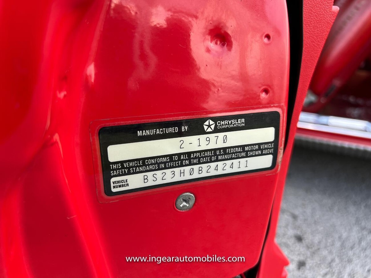 Built in February of 1970 this is a Factory "Bright red" car, Factory Red interior! This is a high trim grade car. "H"code car. The engine is a Matching numbers high performance 340cid V8 4 Barrel. Factory Hood pin optioned car. Factory rare 3-speed manual transmission car, Factory sports Hood, Dual exhaust system, Center console, buckets seats, Rallye Instrument Cluster, 8 3/4 Rear Axle 3.23 Ratio, Heavy Duty Rear Shock, Cigar Lighter, Heavy Duty Suspension/Rallye, Steering Wheel Woodgrain, Woodgrain Instrument Panel, and much more options.
