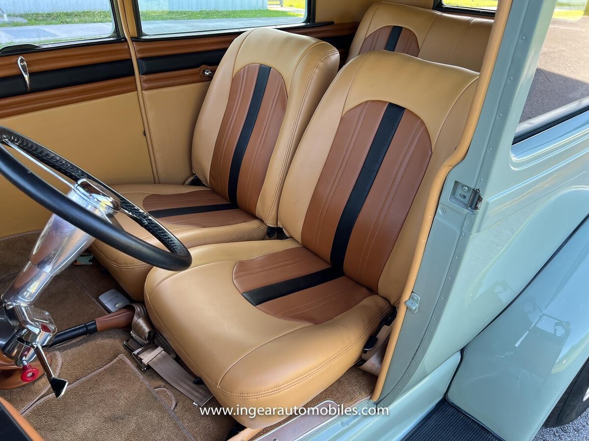 Full Custom interior, with custom headliner and matching door pannels. Inetrior was done with taste!Has roll up windows front & rear, Chrome steering column, aftermarket steering wheel, custom sound system, has a really cool looking set of Vintage Classic set of guages. At one point this was a show car now its a good driver with some little paint blemish I pointed out. Check out my full video, and pictures. Most cars are fiberglass this all steel body and for the price is priced very fair.