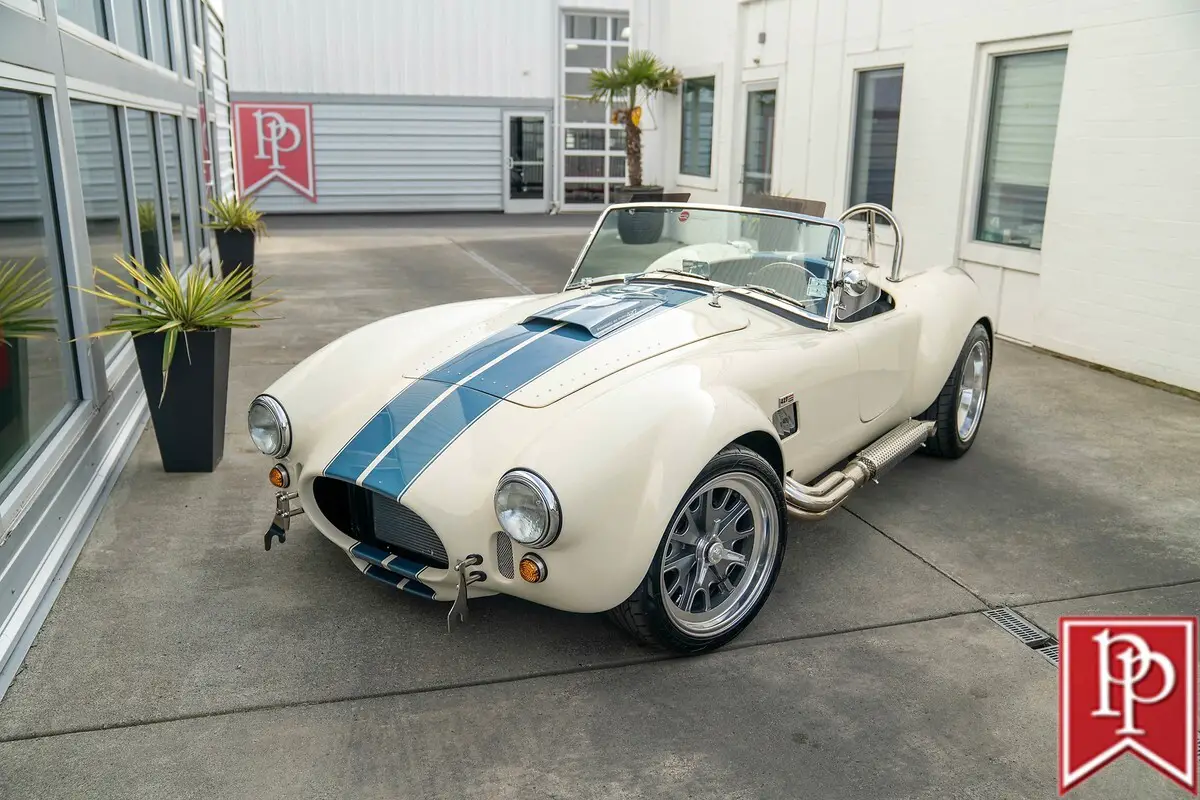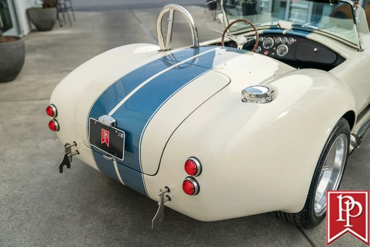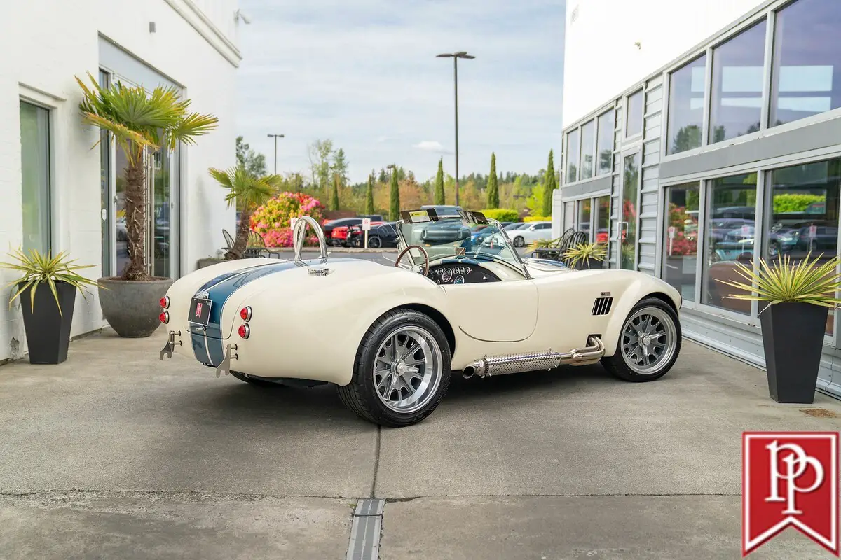 Call Toll Free 877-855-1030 - 1965 BackDraft Racing RT4 Roadster Wimbledon White With Guardsman Blue Stripes 427ci V8 With Tremec 5-Speed Manual Transmission Body Features Classic 1960s-427 Cobra-Style Bodywork Driver’s Side Roll Hoop 18” Halibrand-Style Wheels Polished Lip Center Knock-Off Chrome Side Exhaust LeMans Fuel Filler Cap Wimbledon White Pinstriping Interior Features Black Leather Seating Contrast White Stitching Autometer OEM-Style Gauges Passenger Seat Slider Custom Shift Knob Cam-Lock Style SABELT Seatbelts Raydot Driver’s Side Mirror Black Vinyl Tonneau Cover Drivetrain Features Prestige Motorsport 427ci Stroker V8 500 Horsepower 500 Lb-Ft of Torque 10:1 Compression (Pump Gas) 351ci Windsor Based 4340 Forged Steel Stroker Crankshaft Hydraulic Roller Camshaft Forged Aluminum Pistons Holley Terminator X EFI Polished Aluminum Valve Covers Tremec TKX 5-Speed Manual Transmission Hydraulic Clutch 4-Wheel Power Disc Brakes Coilover Front Struts Multi-Link Rear Suspension 3.55 Ford Super 8.8 Differential Call Toll Free 877-855-1030 to discuss or Click Buy it Now! There are no fees from eBay. We don't charge out of State Cash buyers any fees, no buyers or sellers fees, no taxes or license fees, just a $200.00 document fee and the agreed sales price. That is it, very simple. watch?v=VaH4uhFZ9as Buy with confidence on eBay.