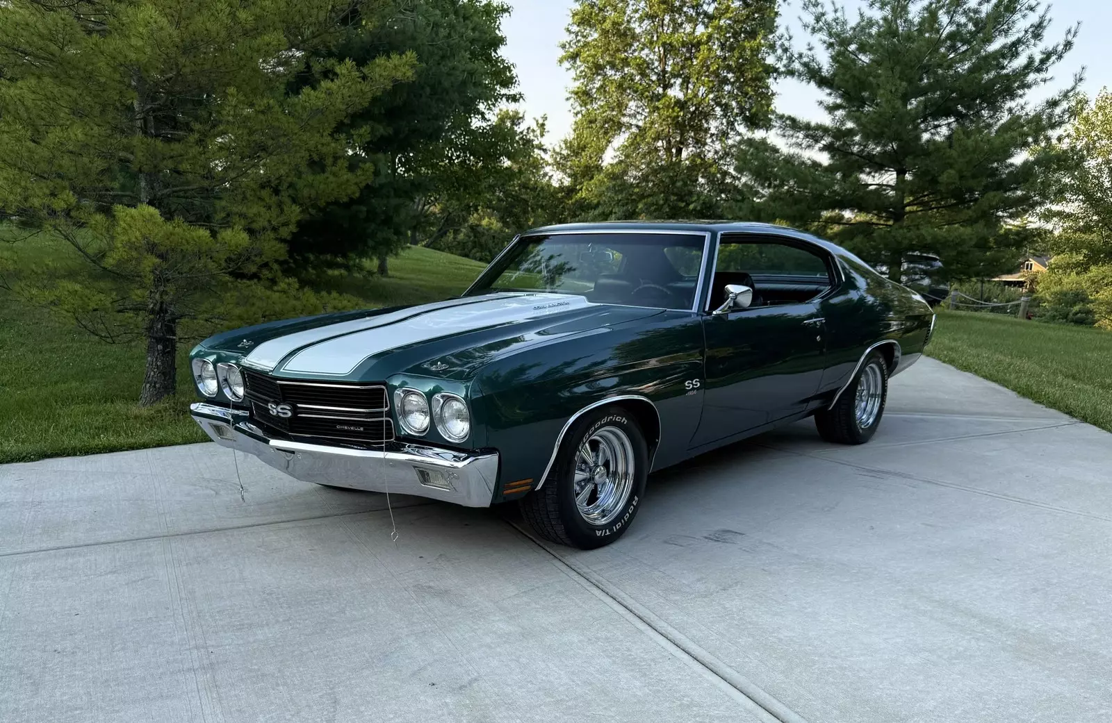 SUPER SHARP 1970 CHEVELLE SS 454 STRONG REBUILT 454 TURBO 400 AUTO 12 BOLT PS PDB TACH & GAUGES FUNCTIONAL COWL FLAPPER COMPLETELY SOLID & LASER STRAIGHT ORIGINAL METAL CALIFORNIA BEAUTIFUL QUALITY EMERALD FOREST GREEN PAINT WITH EXCELLENT BLACK BUCKETS & CONSOLE INTERIOR