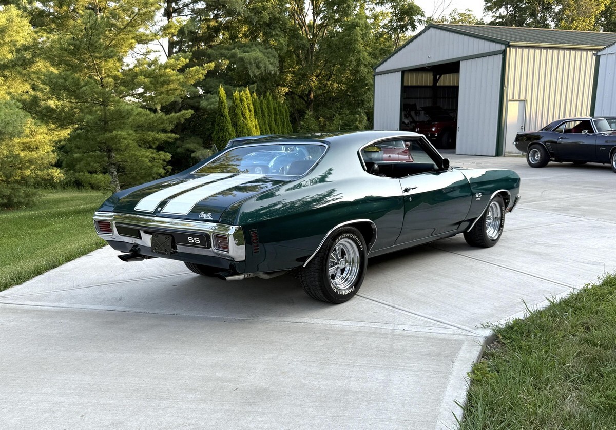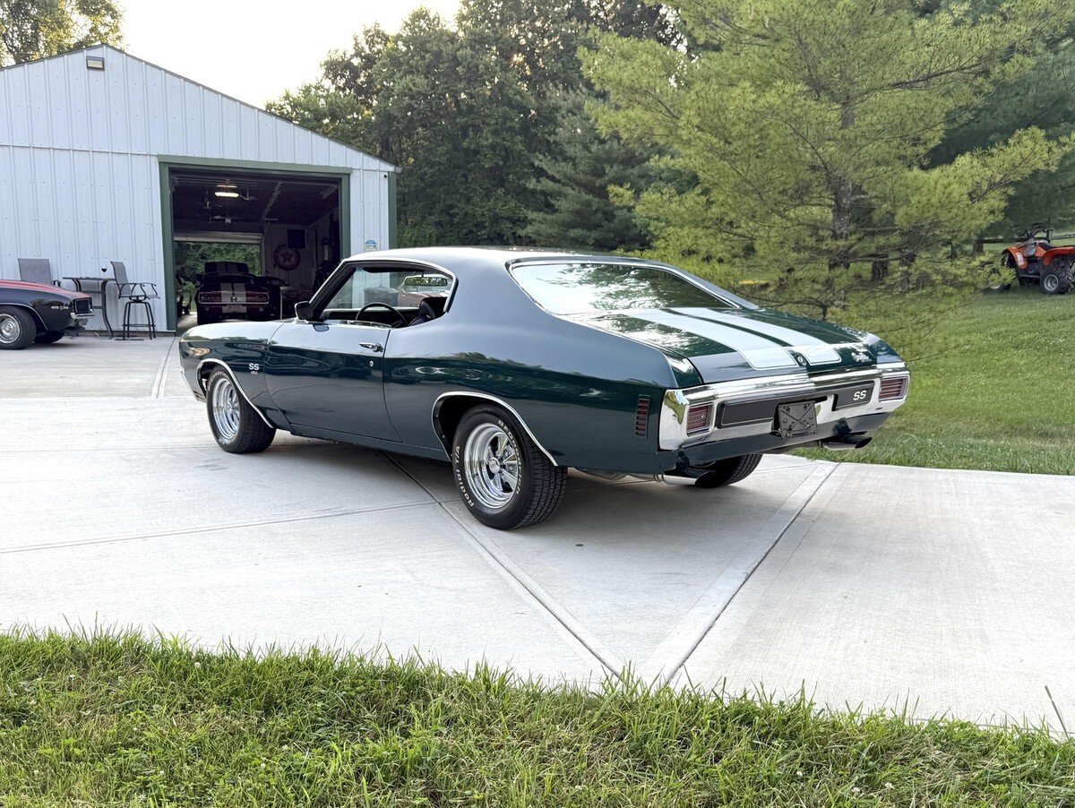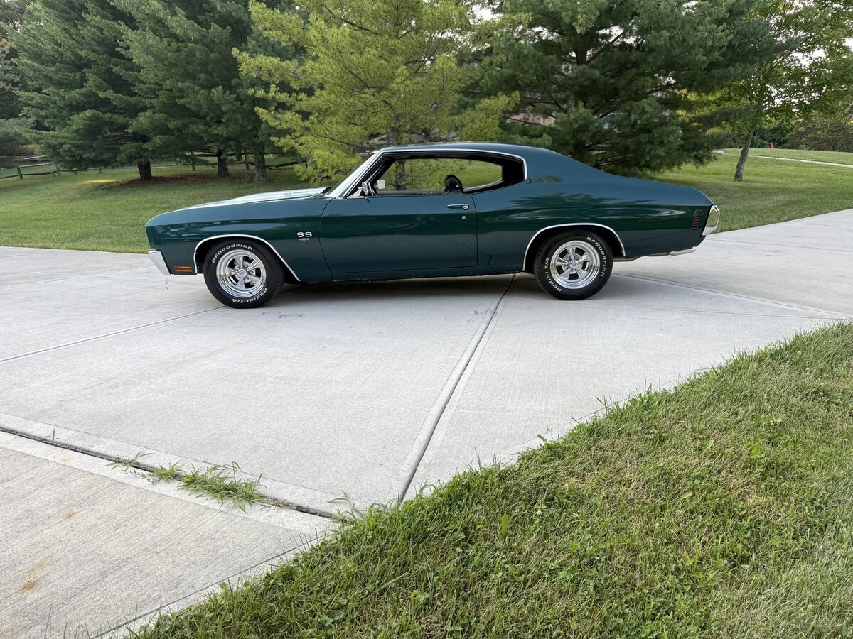 Vehicle Original VIN : 136370L160030SUPER SHARP 1970 CHEVELLE SS 454 STRONG REBUILT 454 TURBO 400 AUTO 12 BOLT PS PDB TACH & GAUGES FUNCTIONAL COWL FLAPPER COMPLETELY SOLID & LASER STRAIGHT ORIGINAL METAL CALIFORNIA BEAUTIFUL QUALITY EMERALD FOREST GREEN PAINT WITH EXCELLENT BLACK BUCKETS & CONSOLE INTERIORFULLY SORTED OUT…EVERYTHING WORKS…TURNKEY READY TO ENJOY CAR!RUNS AND DRIVES AND PERFORMS BEAUTIFULLYVERY GOOD CARABSOLUTE PLEASURE TO CRUISE…DRIVES VERY SMOOTH TIGHT AND STRONG!FILE OF RESTORATION RECEIPTS AND INFOABOUT 4000 MILES ON RESTORATIONVERY STRAIGHT AND SOLID ORIGINAL METAL BODYCLEAN AND NICE DRY ORIGINAL METAL FLOORS AND FRAME NICE SOLID TRUNK…DETAILED WITH MAT AND SPARETURBO 400 AUTOMATIC TRANSMISSIONHURST SHIFTER WORKS PERFECTLY….CAN INSTALL NEW FACTORY HORSESHOE SHIFTER FOR EXTRA $1000….PLEASE CALL FOR DETAILS…513-615-5755 SMOOTH VERY RESPONSIVE AND STRONG REBUILT PERIOD CORRECT 454 ENGINE WITH ABOUT 375HPNICELY DETAILED CLEAN ENGINE AND ENGINE BAY12 BOLT POSI REAREND WITH 3.55 GEARS GREAT SETUP WITH ALL THE DESIRABLE OPTIONS AND FEATURES: ? VERY DESIRABLE ORIGINAL METAL SOLID CALIFORNIA CAR ? FILE OF RESTORATION INFO AND RECEIPTS ? REBUILT SMOOTH RESPONSIVE AND STRONG 454 MOTOR ? FUNCTIONAL COWL FLAPPER ? POWER FRONT DISC BRAKES ? POWER STEERING ? NEW 3 SPOKE SPORT STEERING WHEEL ? FACTORY TACH AND GAUGES DASH ? EXCELLENT DASH BEZEL ? CLASSIC AUTO STEREO..WORKS GREAT ? LIKE NEW CRISP BLACK BUCKET SEAT AND CONSOLE INTERIOR ? TURBO 400 AUTO TRANSMISSION ? 12 BOLT REAREND WITH 3.55 GEARS ? LIKE NEW BUMPERS AND TRIM AND EMBLEMS ? LIKE NEW GRILL AND TAIL LIGHT ? LIKE NEW 15” CHROME CRAGAR WHEELS AND BF GOODRICH TA RADIALS ? PERFECT LOOK AND STANCE ? FULL DUAL FLOWMASTER EXHAUST ALL WAY BACK WITH CORRECT CHROME TIPS …..SOUNDS GREAT! ? BEAUTIFUL MILE DEEP EMERALD FOREST GREEN PAINT ….BUFFED SMOOTH…DEEP COLOR AND SHINE…PAINT LOOKS NICEFOR MORE PICTURES OF THIS CAR PLEASE EMAIL… OR CALLL…513-615-5755FOR WALK AROUND VIDEO OF THE CAR RUNNING PLEASE EMAIL… OR CALL…513-615-5755 EASY FINANCING IF NEEDED THRU JJ BESTFOR FINANCING CALL CHRIS @ 508-415-1035 FOR QUESTIONS ON CAR PLEASE EMAIL OR CALL 513-615-5755 WITH ANY QUESTIONS AND/OR OFFERS. THANKS LIKE NEW CHROME AND TRIM AND EMBLEMSLIKE NEW GRILL LIKE NEW TAIL LIGHT LENS VERY SOLID AND SUPER STRAIGHT ORIGINAL METAL BODY…..EXCELLENT FIT AND GAPS....DOORS, HOOD AND TRUNK OPEN AND CLOSE EXCELLENTALL WINDOWS ROLL UP AND DOWN GREATNICE BEAUTIFUL QUALITY EMERALD FOREST GREEN PAINT ….PAINT IS BUFFED SMOOTH AND A MILE DEEP!….. DEEP COLOR AND VERY DEEP SHINE DESIRABLE GORGEOUS FACTORY COLOR FOR A 70 CHEVELLE THIS IS A VERY NICE WELL DONE RESTORED 1970 CHEVELLE SS 454 AUTO. SMOOTH AND STRONG RUNNING 454 MOTOR, TURBO 400 AUTO TRANS, 12 BOLT REAREND, POWER STEERING, POWER DISC BRAKES, TACH & GAUGES, LIKE NEW BLACK BUCKETS AND CONSOLE INTERIOR. EVERYTHING WORKS AS SHOULD, EXCEPT HORN …..FULLY SORTED OUT CARTURNKEY READY TO ENJOY RIGHT AWAY FOR MORE PICTURES OF THIS CAR PLEASE EMAIL… OR CALLL…513-615-5755FOR WALK AROUND VIDEO OF THIS CAR RUNNING PLEASE EMAIL… OR CALLL…513-615-5755 EASY FINANCING IF NEEDED THRU JJ BESTFOR FINANCING CALL CHRIS @ 508-415-1035 PLEASE EMAIL OR CALL 513-615-5755 WITH ANY QUESTIONS IF YOU NEED SHIPPING I HAVE A SHIPPING SOURCE THAT HAS VERY REASONABLE RATES AND SHIPS IN A TIMELY MANNER. POSSIBLE CLASSIC CAR LOAN OPTIONS: TERMS:Notice To Bidders: High Bidder To Send $800.00 Non-Refundable Deposit Within 24 Hours Of The Close Of This Auction. Funds To Be Paid With Certified Check, Bank Transfer, Or Cash In Person Within 5 Days Of Auction Ending. All Sales Final. Mileage Is Exempt. The Sale Is Subject To The Following Conditions And RepresentationsThis Vehicle Is Being Sold As Is, Where Is With No Warranty In Connection Therewith. The Seller Shall Not Be Responsible For The Correct Description, Authenticity, Genuineness, Or Defects Herein, And Make No Warranty In Connection Therewith. No Allowances Or Set Aside Will Be Made On Account Of Any Incorrectness, Imperfection, Defect Or Damage. Any Descriptions Or Representations Are For Identification Purposes Only And Are Not To Be Construed As A Warranty Of Any Type. It Is The Responsibility Of The Buyer To Have Thoroughly Inspected The Vehicle, And To Have Satisfied Himself Or Herself As To The Condition And Value Based Upon That Judgment Solely. Seller Assumes No Responsibility For Any Repairs Regardless Of Any Oral Statements About The Vehicle.May Sell To The Highest Bidder If Reserve Is Not Met And Will Entertain Offers Before End Of Auction. I Reserve The Right To Terminate This Auction At Any Time. Shipping Costs Are The Responsibility Of The Purchaser But I Will Try To Help Anyway I Can. Negative Feedback Bidders Or 5 Feedback Bidders Or Less Please Contact Me Before Bidding. Do Not Bid Unless You Intend To Buy. Thank You And Good Luck! You Are Entering Into A Legal Binding Contract To Purchase The Vehicle Described Above. If You Do Not Intend To Purchase This Item, Do Not Bid! Bidders Must Be Able To Pay Cash Or Have All Loans Pre-Approved Before Bidding On This Vehicle! Unqualified Bidding, Deadbeat Bidding, Or Auction Interference Will Be Subject To Legal Prosecution To The Fullest Extent Of The Law. Thank You Very Much For Your Understanding. NOTE: PLEASE CALL ME AT 513-615-5755 WITH ANY QUESTIONS OR OFFERS THANKSPLEASE NOTE THERE IS A TYPO ABOVE….I WILL SELL WORLDWIDE….PLEASE EMAIL IF INTERESTED…..HAVE SOLD MANY CARS TO OVERSEAS:NOTE: LOW RESERVE......READY TO SELL.....CALL OR EMAIL WITH QUESTIONS OR OFFERS.......CALL 513-615-5755