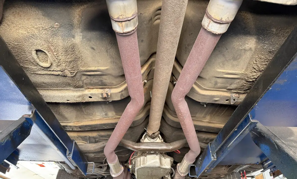? FULL DUAL FLOWMASTER EXHAUST ALL WAY BACK WITH CORRECT CHROME TIPS …..SOUNDS GREAT!
