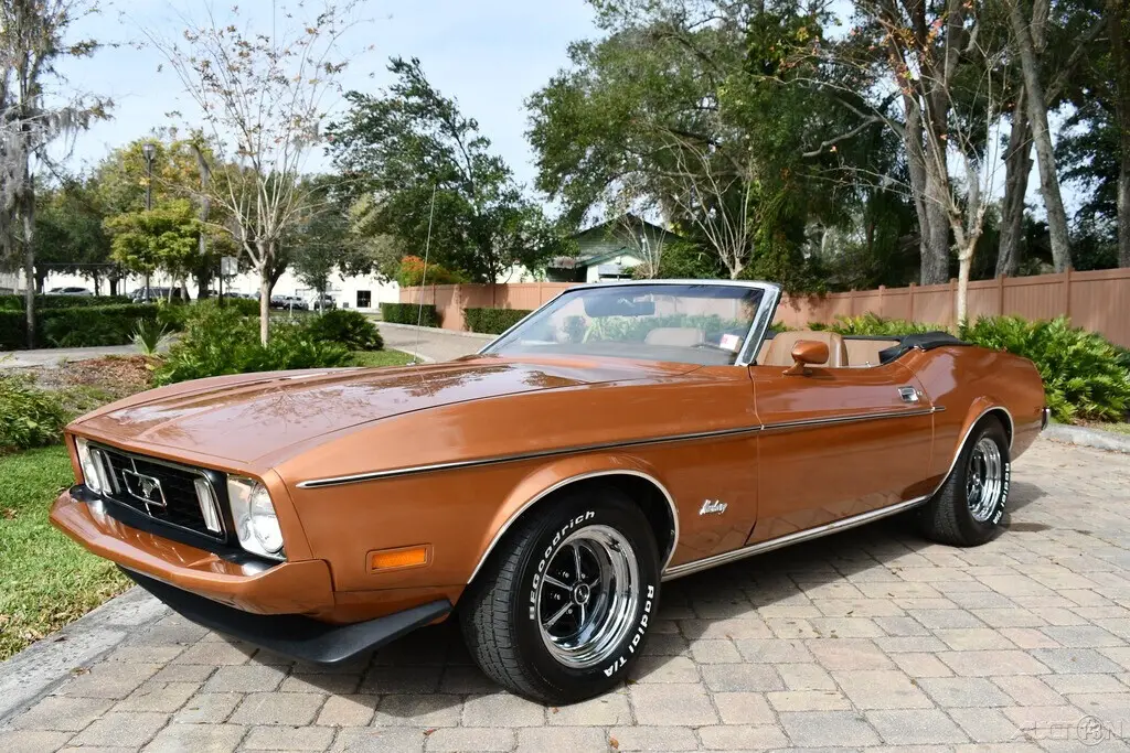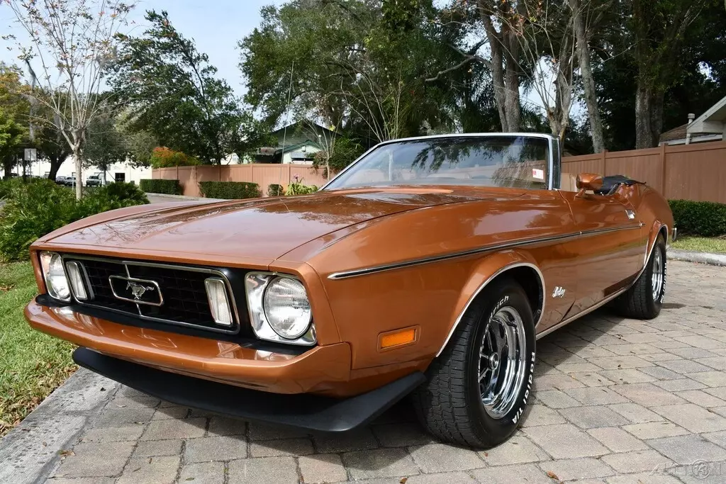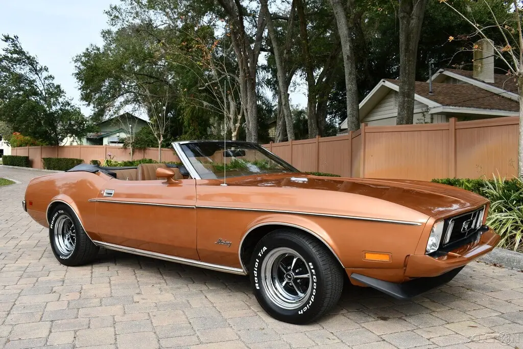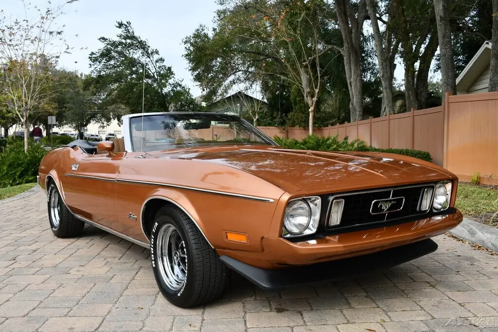 Remarkable Original1973 Ford Mustang Convertible 302ci V8 EngineAutomatic2 Barrel CarburetorPower SteeringPower BrakesBuck SeatsCenter ConsoleBlack Power Convertible TopColor Keyed MirrorsFront SpoilerBelieved to be 59ks title reads exemptNew Magnum 500 WheelsBF Goodrich Radial Tires