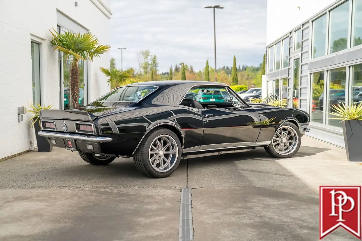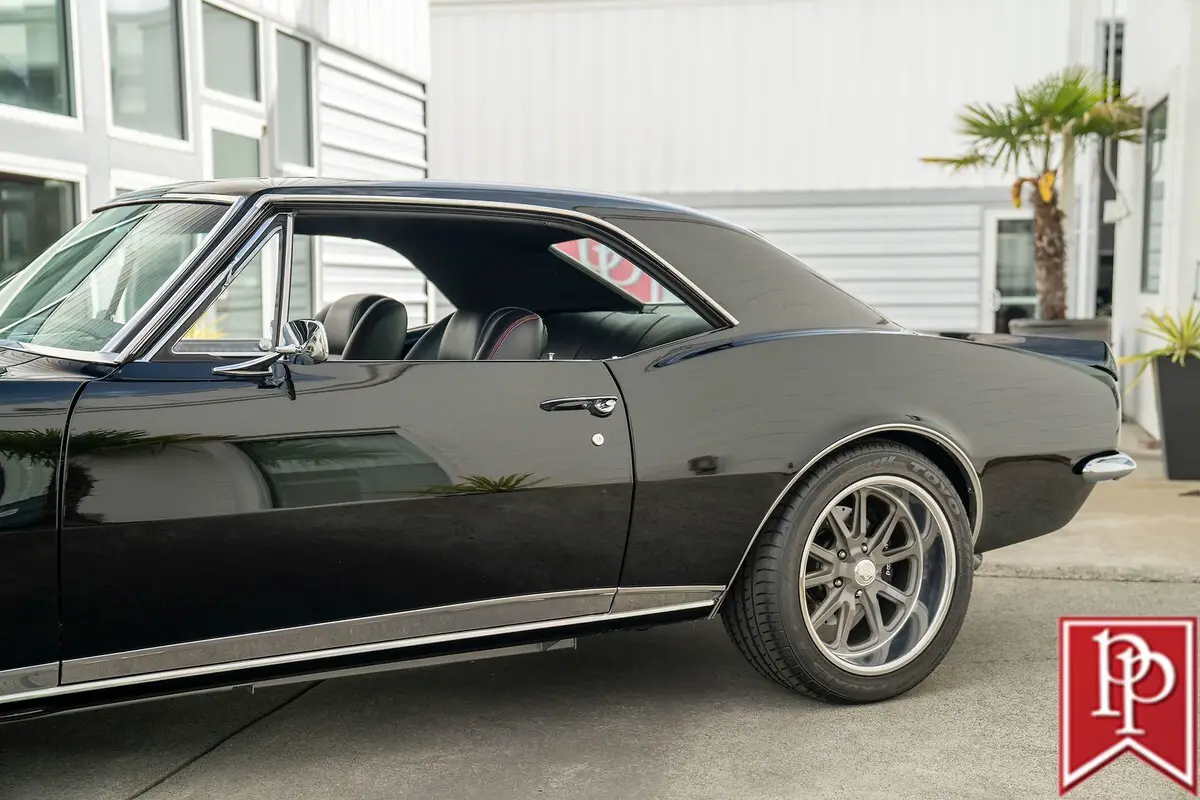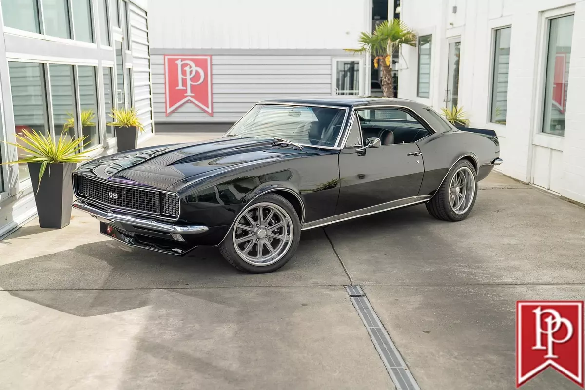 1967 Chevrolet Camaro RS/SS Resto-Mod When Ford debuted the Mustang in mid-1964, it was such a sales hit that the other American manufacturers instantly realized they needed cars to compete in the segment. In 1967, Chevrolet’s Camaro went on sale as a more powerful and aggressive Mustang alternative, and went on to become one of the ultimate vehicles of the muscle car era. To this day, the first generation Camaros - built between 1967 and 1969 - are some of the most desirable American cars from any era and are without a doubt some of the most frequently customized vehicles of all time. This 1967 Camaro RS/SS Resto-Mod was built by Show Quality Restorations in Longview, WA who undertook a rotisserie custom build between 2015 and 2018. Beyond a cowl induction hood and 18-inch US Mag wheels with power Wilwood disc brakes hiding behind them, there is little to give away the work that has been completed beneath the car, taking the driving experience from classic to modern. Finished in black, this Camaro features coveted RS/SS features like the hide-away headlights behind the front grille, and more subtle, elegant design that is associated with the Camaros from 1967. Move to the interior and you are met by a set of modern bucket seats with partial power adjustment, that are wrapped in a combination of leather and Alcantara with red contrast stitching throughout. A three-spoke billet steering wheel is fitted to an Ididit adjustable steering column and behind the wheel sits a set of modern Vintage Digital gauges. Running between the two front seats is a custom built console painted to match the black exterior, with chrome accents and cup holders, and in the waterfall above it sits a modern classic-look stereo and controls for the air conditioning. Where the modifications get really serious is under the hood - the running gear was taken from a 2002 Corvette, meaning an LS2 V8 that produces 378 horsepower and 398 lb-ft of torque with both fuel injection and coil-on-plug ignition. Although largely stock, this engine does benefit from a Spectre air intake and a set of jet coated headers, along with an aluminum radiator with electric fan to keep everything cool. This is connected to a Tremec T56 6-speed manual from the Corvette, which sends power back to a Ford 9-inch rear end with a drop-out 3rd member for quick rear gear swaps. To keep up with all the power, the suspension has also been entirely overhauled with tubular upper and lower control arms, QA1 front coil-overs, Hotchkis rear leaf springs and ride adjustable rear shocks. Subframe connectors keep everything tied together beneath the car, and a rack and pinion steering system makes for precise, quick turn in- something this car never would have had stock. To really drive home how special this car is, the entire engine bay has been shaved, painted body color and polished, putting the engine on full display when you open the hood. This professionally built Camaro is an absolute stunner and getting behind the wheel only improves the experience. If you have ever wanted to own a classic muscle car but didn’t want to give up the convenience and performance of a modern vehicle, this is the right car for the job. To replicate this car would take considerable time and money, but this example is ready to go and has nearly 2,000 shakedown miles on it since the build was completed, ensuring you get a car that you can just hop in and drive. Key Features Built by Show Quality Restorations in Longview, WA Rotisserie Build Between 2015 and 2018 2002 Corvette LS2 V8 378 Horsepower/398 Lb-Ft of Torque Jet Coated Headers Spectre Air Intake Coil On Plug Fuel Injection Tremec T56 6-Speed Manual Gearbox Ford 9-Inch Rear End Wilwood Disc Brakes Tubular Upper/Lower Control Arms QA1 Front Coilovers Hotchkis Rear Leaf Springs Ride Adjustable Rear Shocks Subframe Connectors Rack and Pinion Steering Air Conditioning Aluminum Radiator w/Electric Fan Ididit Adjustable Steering Column Vintage Digital Gauges 18-Inch US Mag Wheels Additional Information Build Invoices and Photos Dyno Sheet Integrated Battery Tender For more information on this 1967 Chevrolet Camaro RS/SS Resto-Mod or any of our 150+ High-Performance, Exotic, Luxury, and Special Interest Cars always in stock, contact one of our friendly and knowledgeable sales consultants or feel free to drop by our 40,000+ sq ft of Indoor Showrooms in Bellevue, WA - Home of an Exciting Inventory of Luxury, Exotic, High Performance and Collectible Automobiles. With 200+ Always On Site, Nobody Has What We Have!