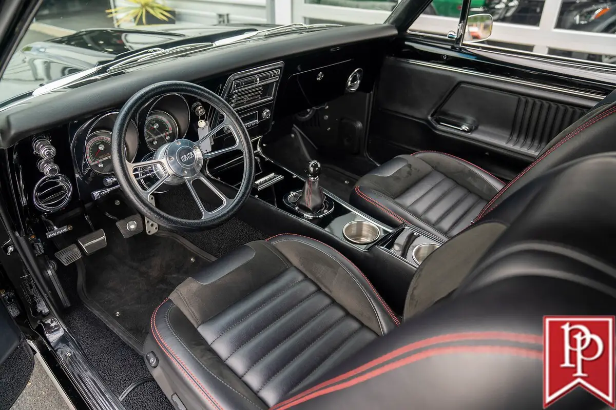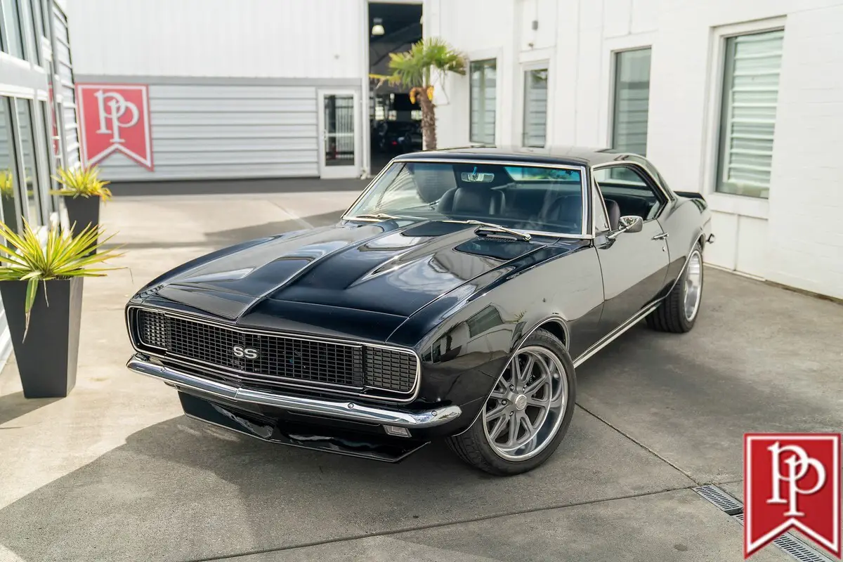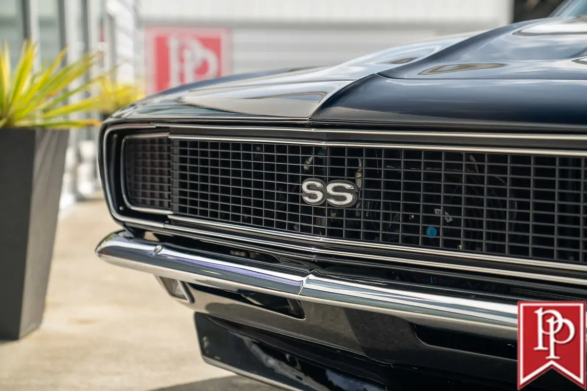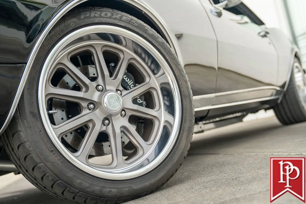 1967 Chevrolet Camaro RS/SS Resto-Mod When Ford debuted the Mustang in mid-1964, it was such a sales hit that the other American manufacturers instantly realized they needed cars to compete in the segment. In 1967, Chevrolet’s Camaro went on sale as a more powerful and aggressive Mustang alternative, and went on to become one of the ultimate vehicles of the muscle car era. To this day, the first generation Camaros - built between 1967 and 1969 - are some of the most desirable American cars from any era and are without a doubt some of the most frequently customized vehicles of all time. This 1967 Camaro RS/SS Resto-Mod was built by Show Quality Restorations in Longview, WA who undertook a rotisserie custom build between 2015 and 2018. Beyond a cowl induction hood and 18-inch US Mag wheels with power Wilwood disc brakes hiding behind them, there is little to give away the work that has been completed beneath the car, taking the driving experience from classic to modern. Finished in black, this Camaro features coveted RS/SS features like the hide-away headlights behind the front grille, and more subtle, elegant design that is associated with the Camaros from 1967. Move to the interior and you are met by a set of modern bucket seats with partial power adjustment, that are wrapped in a combination of leather and Alcantara with red contrast stitching throughout. A three-spoke billet steering wheel is fitted to an Ididit adjustable steering column and behind the wheel sits a set of modern Vintage Digital gauges. Running between the two front seats is a custom built console painted to match the black exterior, with chrome accents and cup holders, and in the waterfall above it sits a modern classic-look stereo and controls for the air conditioning. Where the modifications get really serious is under the hood - the running gear was taken from a 2002 Corvette, meaning an LS2 V8 that produces 378 horsepower and 398 lb-ft of torque with both fuel injection and coil-on-plug ignition. Although largely stock, this engine does benefit from a Spectre air intake and a set of jet coated headers, along with an aluminum radiator with electric fan to keep everything cool. This is connected to a Tremec T56 6-speed manual from the Corvette, which sends power back to a Ford 9-inch rear end with a drop-out 3rd member for quick rear gear swaps. To keep up with all the power, the suspension has also been entirely overhauled with tubular upper and lower control arms, QA1 front coil-overs, Hotchkis rear leaf springs and ride adjustable rear shocks. Subframe connectors keep everything tied together beneath the car, and a rack and pinion steering system makes for precise, quick turn in- something this car never would have had stock. To really drive home how special this car is, the entire engine bay has been shaved, painted body color and polished, putting the engine on full display when you open the hood. This professionally built Camaro is an absolute stunner and getting behind the wheel only improves the experience. If you have ever wanted to own a classic muscle car but didn’t want to give up the convenience and performance of a modern vehicle, this is the right car for the job. To replicate this car would take considerable time and money, but this example is ready to go and has nearly 2,000 shakedown miles on it since the build was completed, ensuring you get a car that you can just hop in and drive. Key Features Built by Show Quality Restorations in Longview, WA Rotisserie Build Between 2015 and 2018 2002 Corvette LS2 V8 378 Horsepower/398 Lb-Ft of Torque Jet Coated Headers Spectre Air Intake Coil On Plug Fuel Injection Tremec T56 6-Speed Manual Gearbox Ford 9-Inch Rear End Wilwood Disc Brakes Tubular Upper/Lower Control Arms QA1 Front Coilovers Hotchkis Rear Leaf Springs Ride Adjustable Rear Shocks Subframe Connectors Rack and Pinion Steering Air Conditioning Aluminum Radiator w/Electric Fan Ididit Adjustable Steering Column Vintage Digital Gauges 18-Inch US Mag Wheels Additional Information Build Invoices and Photos Dyno Sheet Integrated Battery Tender For more information on this 1967 Chevrolet Camaro RS/SS Resto-Mod or any of our 150+ High-Performance, Exotic, Luxury, and Special Interest Cars always in stock, contact one of our friendly and knowledgeable sales consultants or feel free to drop by our 40,000+ sq ft of Indoor Showrooms in Bellevue, WA - Home of an Exciting Inventory of Luxury, Exotic, High Performance and Collectible Automobiles. With 200+ Always On Site, Nobody Has What We Have!
