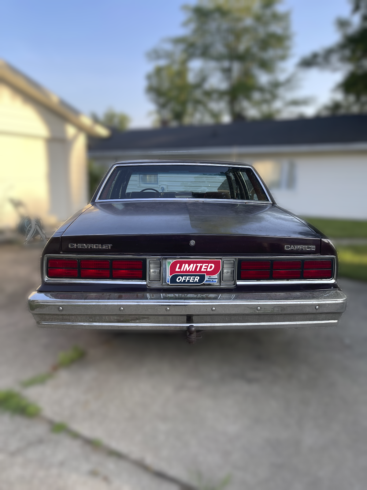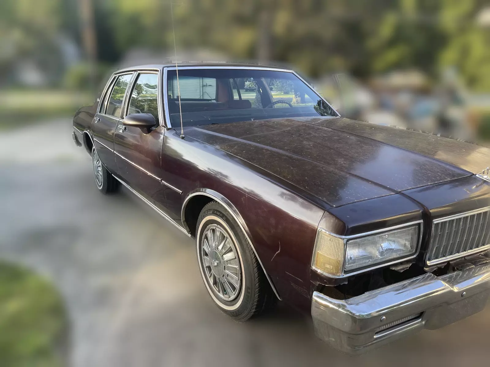 Mom's Car. Had to give up license due to her age. Car has been sitting for years. Runs great! Very well maintained. Lots of life left in this gem.5.0 LITER E.F.L. V8 ENGINE (305 CID)Power SteeringPower Front Disc/Rear Drum Brake SystemFull Perimeter-Type FrameFull Coil SuspensionAll Season Steel Belted Black Wall Radial Ply TiresDouble Panel Doors, Hood and Deck LidFront Stabilizer BarAnti-Corrosion TreatmentsConvenience Features:Air ConditioningCloth Bench Front Seat with Center Folding ArmrestETR AM/FM Stereo with Seek-Scan and Digital ClockDual Sport Mirrors with Left-Hand Remote Control FeatureFull Wheel CoversComposite Halogen HeadlampsCigarette LighterFront Courtesy, Ash Tray, Glove Box, and Trunk LampsInside Hood ReleaseTinted Glass, All WindowsFull Floor Carpeting3 Point Front and Rear Outer Position Lap and Shoulder Safety BeltsCenter High Mounted Stop LampSide-Guard Door BeamsCAPRICE SEDAN PREFERRED EQUIPMENT GROUP #2 INCLUDES:Power Door LocksElec Speed Control W/ ResumeComfort tilt Steering WheelBody Side MoldingsIntermittent Windshield WiperAuxiliary LightingColor-Keyed Front & Rear carpeted Floor MatsExtended Range SpeakersWheel Opening MoldingsHeavy-Duty BatteryMaroon Cloth 50/50 With Passenger & Driver ReclinersElectric Rear Window DefoggerP205/75R ALS S/B Radial W/S