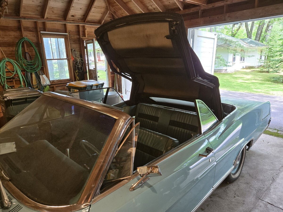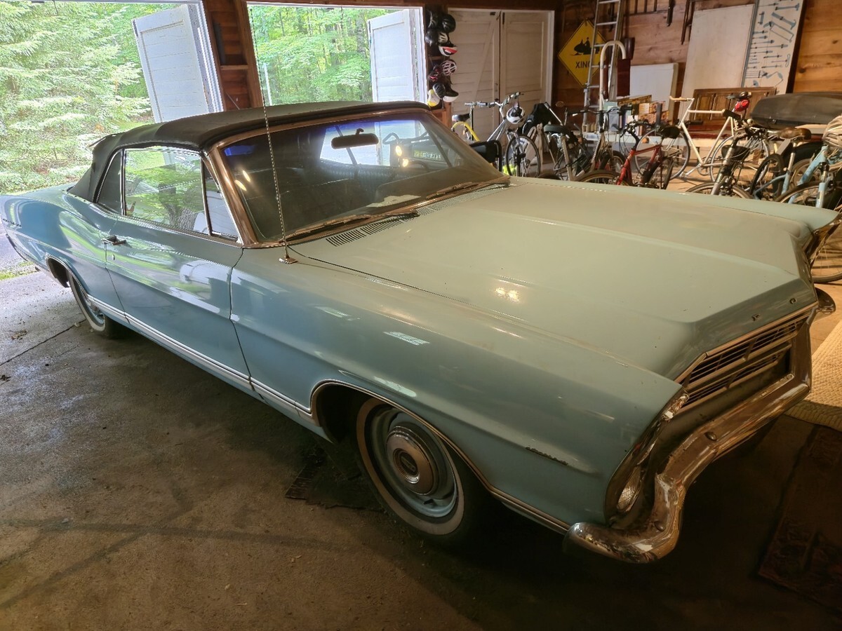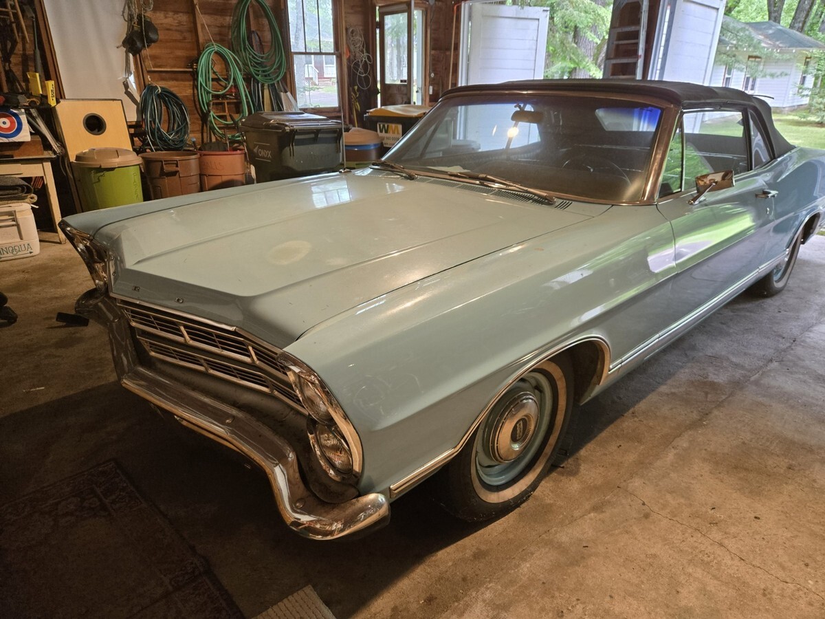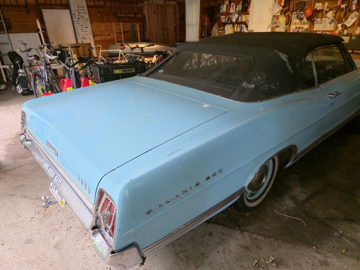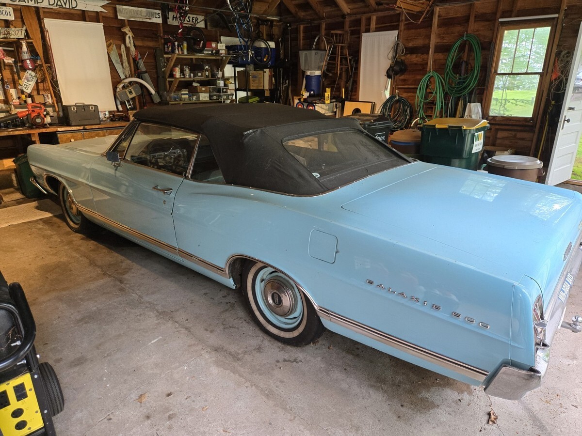 The 1967 Ford Galaxie 500 convertible in the original 'robin's egg blue' exterior color is a great & easy ride. Six cylinder, 289 automatic engine gets 14mpg. Two doors all with working crank windows and functional electric top - not that you will ever drive it with the windows or top up.This is a summer vacation car that was run for about 70 miles every year until last year.Only one previous owner and mileage of 73,000. No accidents, clean title, garage kept - a very fun weekend car.Happy to answer questions and post some additional photos as needed. Will update this listing with question/answers.