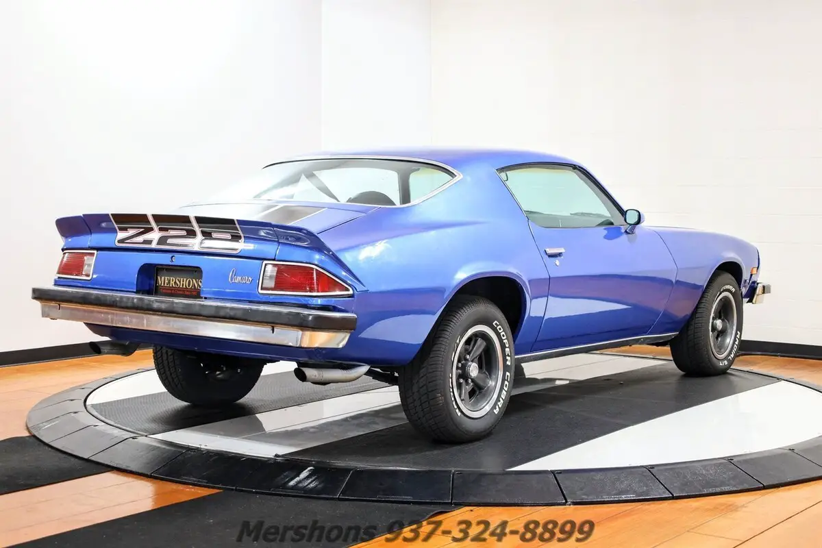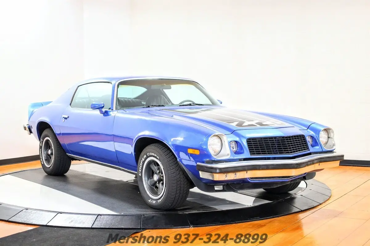 1974 Chevrolet Camaro Z/28 Beautiful Z/28! 350 4 Speed!! Highly Desirable Bright Blue!! Color Code 26 Bright Blue over a Black Interior. Casting Number '3970010' 350 270 HP Paired to a 4 Speed Manual Transmission. Features include Z/28 Graphics Package, Z/28 Spoiler, Power Steering, Power Brakes, Longtube Headers, Rally Wheels wrapped in White Letter Radials and more! This Camaro really Stands out in Bright Blue! A very desirable Color from 1974! All of the Z/28 Graphics are in Excellent condition! This Camaro is loads of fun to drive! Who doesnt love banging gears in a 4 Speed Camaro! The 350 is warmed over, and makes for a fun to drive car that will keep you pinned in the seat when you plant your right foot! So please give us a call today for more detailed information! We would love to hear from you! We KNOW our cars because We OWN our cars! Call today for more information! Financing and Door to Door Delivery Available, We take trades! Call Today! Now Accepting ALL Trades... Of Course We Prefer Corvettes and Classics, What Do You Have?