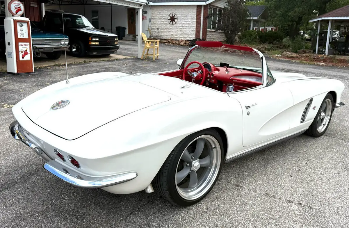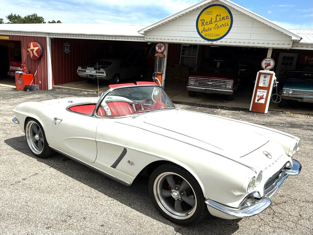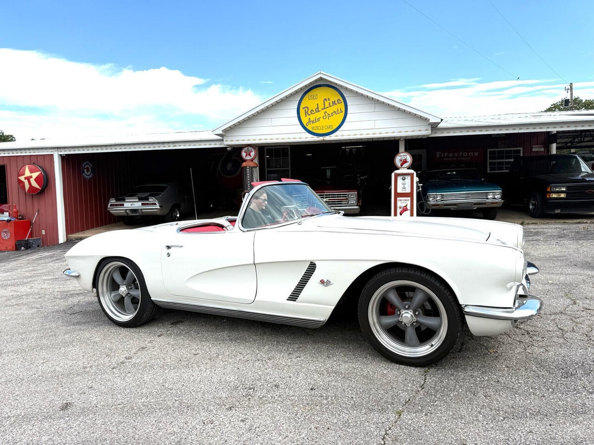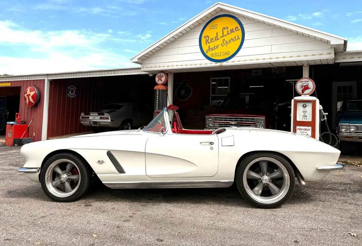 For sale $79,9001962 Corvette hardtop roadster restomod. Factory Alpine White factory red vinyl interior 350 V8 700R4 OD 4 speed Automatic.Vin: 20867S100406Drilled and slotted front disc brakes Dakota, digital analog look gauges AM/FM stereo with amp box highly detailed interior and trunk lid. This car runs and drives excellent it looks amazing like every 1962 Corvette or fine line cracks in certain spots that weve pointed out in our photos. 18 inch five torque Rusty wheels dual exhaust absolutely amazing restored chrome bumpers grill trim door handles windshield trim hard top is restored beautiful and your body color alpine white with white headliner all new weatherstrip throughout. As a driver this car is in the box if you want a perfect show car you would need to do a little bit on the fine line cracking that old Corvettes get. This car starts easy runs down the road smooth shifts like butter he fired up. It sounds mostly the door shut firmly and it drives smoothly down the road. It does have a pull to the right and needs an alignment. This car is from an estate and is a consignment sold as is where is. Price is right at $79,900.call or text will be on our website next week. Call me if you have any questions. 21180 US Highway 70 Wilson Oklahoma 73463We ship Nation wide and we also export.ASAP TransportationEthan Kearns 888-577-7952Local shippers:Nina & Greg 888-577-7952Finance: Taylor AllenInspection: Wiley Conley+1 888-577-7952CHALLENGEDCollector Car LendingOffice: 800.224.8180Fax: 727.498.0604to the credit app* : owners notesmues since competion.Engine Factory, 430 HP, 425 Tq, 350 CI Chevy. Professionally built custom turnkey engine that runs on F additives. The roller cam is not radical so it is very suitable for everyday street use. I can provide receipt specifications and components.Transmission is a new TCI Streetfighter 700-R4 automatic overdrive. It can be shifted fully automatic 4 s optional oversize aluminum pan with cooling fins.Power Steering conversion with modern steering box (no hydraulic ram).Dise brake conversion on front with vented rotors. Rear drum brakes completely rebuilt.Dakota Digital VHX analog display digital Corvette gauge cluster.New interior, including red leather seats, smaller Corvette steering wheel with leather covering, new door Original Wonderbar radio, rebuilt with plug-in cable for ipod or mp3 player.All new fuel lines and brake lines, including the flex lines.New fuse panel and new wiring - New Windshield & new door window felt.New (approx. 950 miles) Radial whitewall tires. All DOT date codes current.Optima battery with shutoff switch.This is mostly a new car hiding in an old Corvette. It is really fun and easy to drive. It doesn't have bad h performance cars. It starts, drives and handles easily and goes without stumbling, even when cold. Never steering and disc brakes help make this a pleasure to drive. In 4th overdrive the RPM is about 2000 @ 71 gas mileage. I would not hesitate to drive this car anywhere.There are no fluid leaks and has not used any oil.The odometer is built into the new gauge cluster that was installed during construction so it is accurate n This Corvette is a true driver, not a show car. The paint is single stage in an original color of Ermine Whi up or spot painted. Car was painted during the build but not high quality and could benefit from at least buffing.The stainless trim, including the windshield surround and emblems are excellent, brilliant with no pitting looks like new with only a minor scuff on the RF bumper.The matching hardtop is in very nice condition and fits well. The carrier for the hardtop has locking whe cover used when the top is stored.The frame is solid with no visible damage or rust. The underneath of the car is clean but not detailed.Overall the car looks very good and gets lots of compliments.Buyer will receive: The clear, signed California title, current registration certificate, receipts, manufactur hardtop with its carrier and cover. Visit Red Line Muscle Cars online at to see more pictures of this vehicle or call us at888-577-7952 today to schedule your test drive.