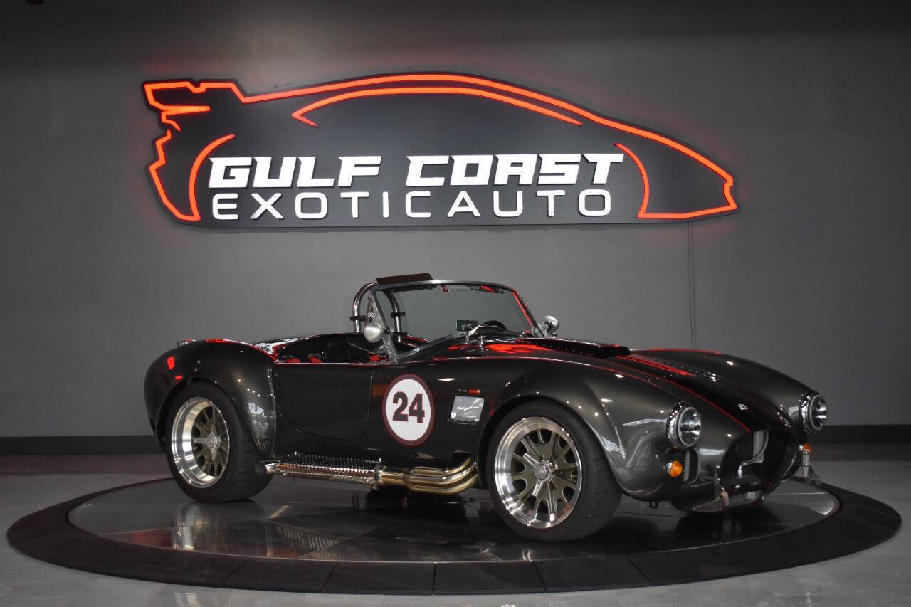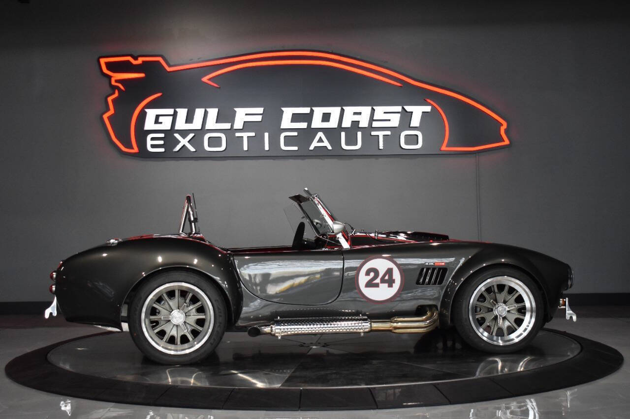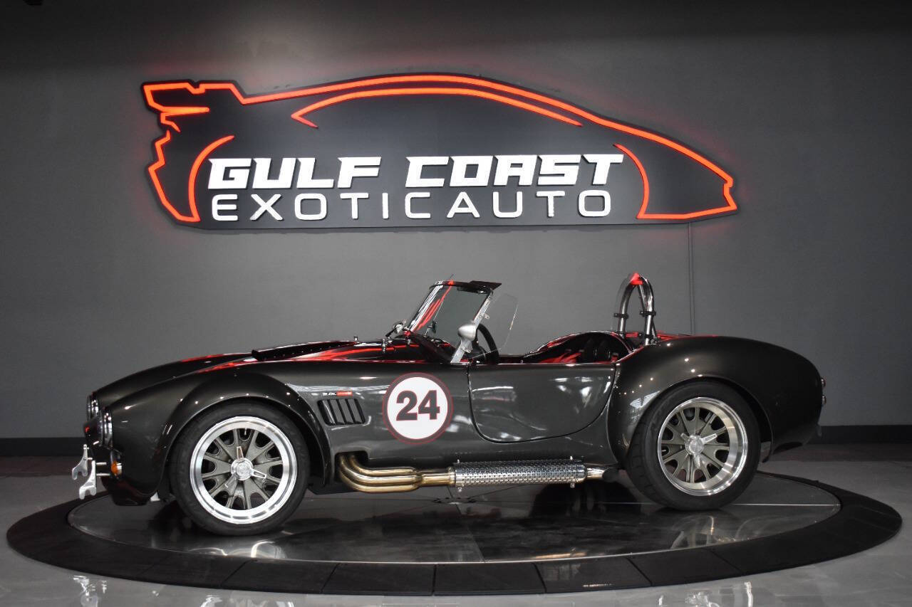 1965 Backdraft Racing Roadster now available with Gulf Coast Exotic Auto – Coyote 5.0L V8 – Only 2,799 Miles -- Now available at Gulf Coast Exotic Auto is this stunning 1965 Backdraft Racing Roadster, a high-performance tribute to the classic Shelby Cobra. This hand-crafted roadster is powered by a Coyote 5.0-liter V8 paired with a 4R70W four-speed automatic transmission and a limited-slip differential, delivering an exhilarating driving experience. Exterior & Wheels Finished in gray with black stripes and sporting #24 roundels, this Backdraft Racing Roadster exudes timeless aggression. Key exterior features include: * Hood scoop * Chrome roll hoop * Windshield frame-mounted side mirrors & wind wings * Quick-jack bumperettes * LeMans-style fuel filler cap *Side-exit exhaust pipes with perforated heat shields * 18 Halibrand-style knock-off wheels wrapped in Falken Azenis tires (245/40 front, 295/40 rear) Interior & Comfort The cabin is a blend of race-ready performance and modern refinement, featuring low-back bucket seats trimmed in red leather with matching door inserts. Additional interior highlights include: * Carbon fiber dashboard fascia * Black diamond-stitched transmission tunnel & kick panels * Sparco Ford Racing steering wheel wrapped in microsuede * AutoMeter carbon-fiber gauges (160-mph speedometer, 8k-rpm tachometer, coolant temp, battery voltage, and fuel level) * Red racing harnesses * Dash-mounted rearview mirror * Air conditioning for added comfort * Aftermarket speakers & Kenwood marine-style digital receiver * Push-button ignition Performance & Braking Built for spirited driving, this Backdraft Racing Roadster features: * Coyote 5.0L V8 Engine * 4R70W four-speed automatic transmission * Limited-slip differential for optimal traction * Four-wheel disc brakes for confident stopping power With only 2,799 miles, this Backdraft Racing Roadster is a turn-key, high-performance machine that delivers the ultimate roadster experience. For more information please call Chris228-220-0298. We Offer Finance Options, Trade-Ins, Extended Warranties, and World Wide Shipping. Although every reasonable effort has been made to ensure the accuracy of the information contained on this site, absolute accuracy cannot be guaranteed.