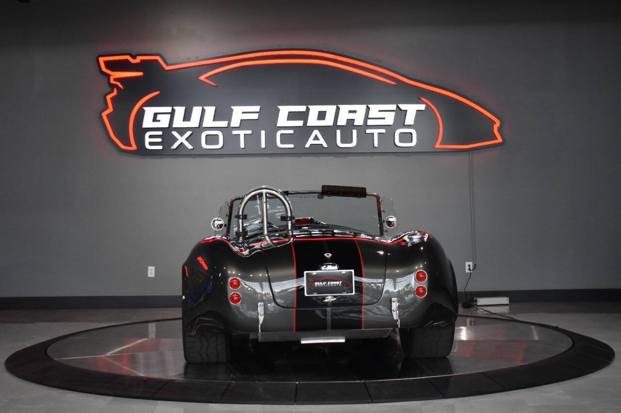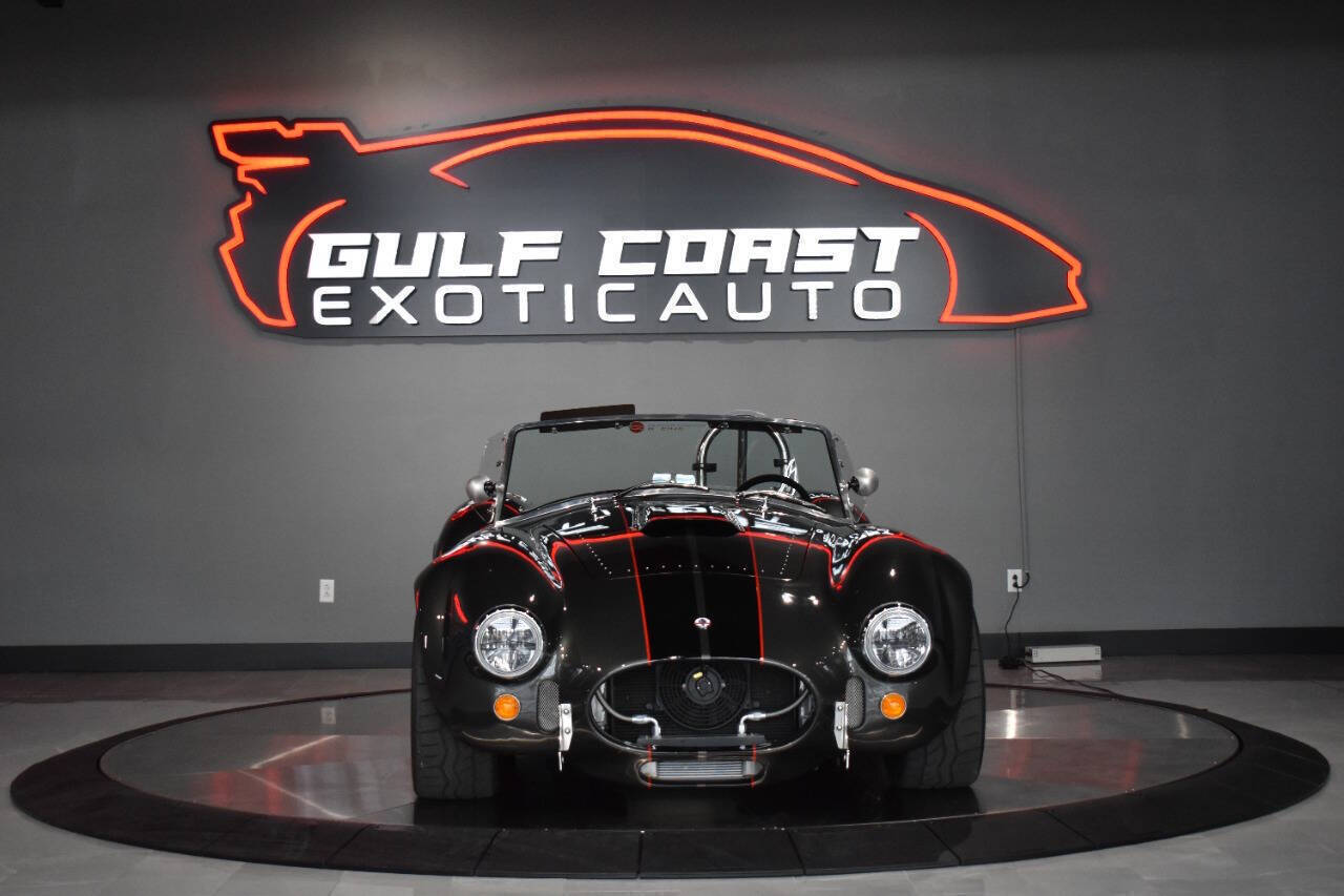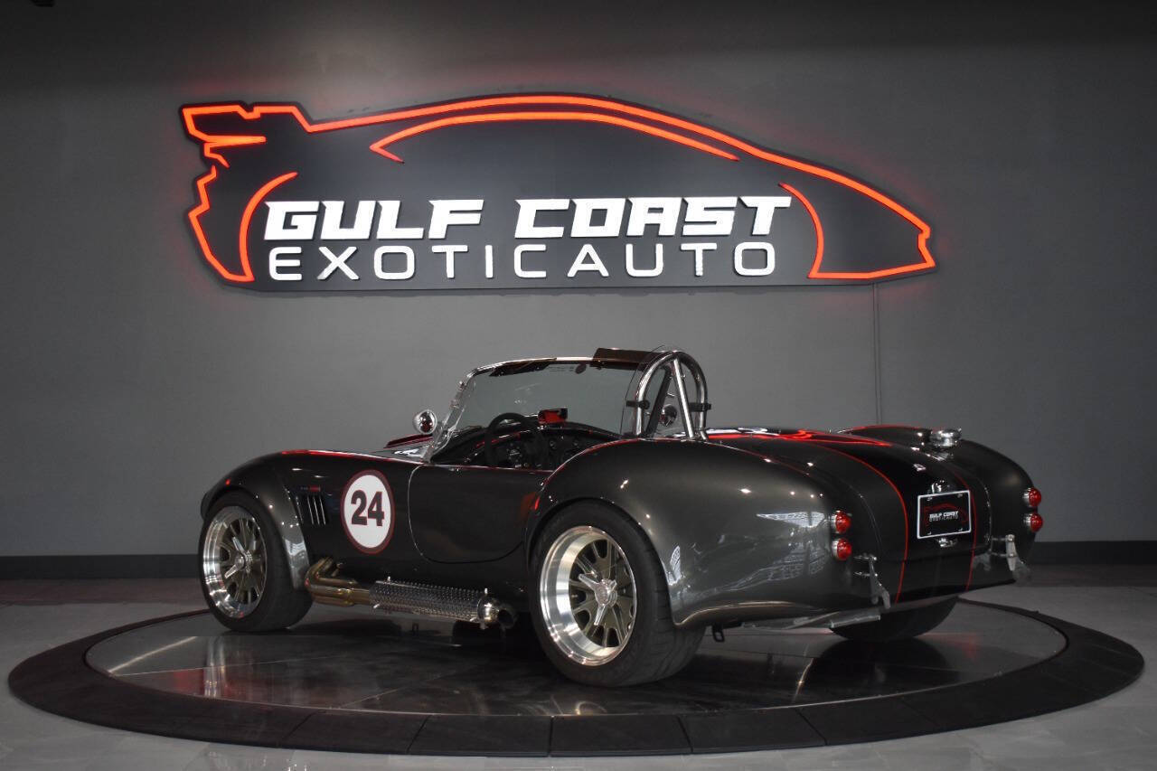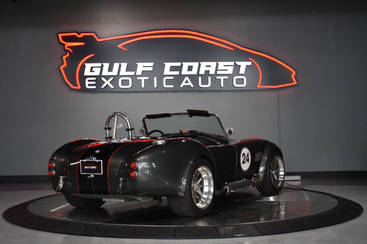 1965 Backdraft Racing Roadster now available with Gulf Coast Exotic Auto – Coyote 5.0L V8 – Only 2,799 Miles -- Now available at Gulf Coast Exotic Auto is this stunning 1965 Backdraft Racing Roadster, a high-performance tribute to the classic Shelby Cobra. This hand-crafted roadster is powered by a Coyote 5.0-liter V8 paired with a 4R70W four-speed automatic transmission and a limited-slip differential, delivering an exhilarating driving experience. Exterior & Wheels Finished in gray with black stripes and sporting #24 roundels, this Backdraft Racing Roadster exudes timeless aggression. Key exterior features include: * Hood scoop * Chrome roll hoop * Windshield frame-mounted side mirrors & wind wings * Quick-jack bumperettes * LeMans-style fuel filler cap *Side-exit exhaust pipes with perforated heat shields * 18 Halibrand-style knock-off wheels wrapped in Falken Azenis tires (245/40 front, 295/40 rear) Interior & Comfort The cabin is a blend of race-ready performance and modern refinement, featuring low-back bucket seats trimmed in red leather with matching door inserts. Additional interior highlights include: * Carbon fiber dashboard fascia * Black diamond-stitched transmission tunnel & kick panels * Sparco Ford Racing steering wheel wrapped in microsuede * AutoMeter carbon-fiber gauges (160-mph speedometer, 8k-rpm tachometer, coolant temp, battery voltage, and fuel level) * Red racing harnesses * Dash-mounted rearview mirror * Air conditioning for added comfort * Aftermarket speakers & Kenwood marine-style digital receiver * Push-button ignition Performance & Braking Built for spirited driving, this Backdraft Racing Roadster features: * Coyote 5.0L V8 Engine * 4R70W four-speed automatic transmission * Limited-slip differential for optimal traction * Four-wheel disc brakes for confident stopping power With only 2,799 miles, this Backdraft Racing Roadster is a turn-key, high-performance machine that delivers the ultimate roadster experience. For more information please call Chris228-220-0298. We Offer Finance Options, Trade-Ins, Extended Warranties, and World Wide Shipping. Although every reasonable effort has been made to ensure the accuracy of the information contained on this site, absolute accuracy cannot be guaranteed.