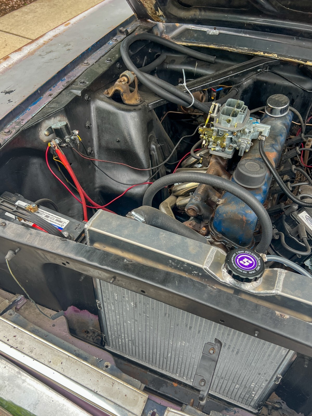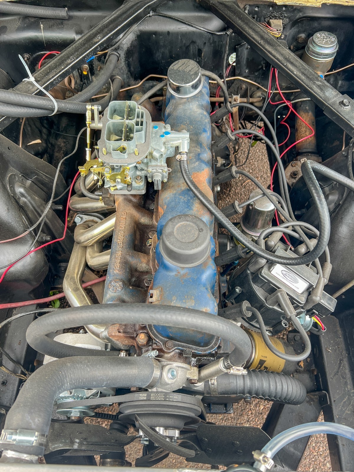 Frame is straight, body is dry, and there is no rust. It has a solid drivetrain and a ton of work already done including a Weber 32/36 (with Clifford adapter), HEI distributor, new fuel pump, battery, radiator, starter, and more. Engine bay and interior floors have been stripped, treated, and sealed with rust preventative. Interior is gutted, cleaned, sound deadened, and ready for carpet and a headliner. Includes front and rear seats in good shape, plus boxes of extra parts and new hardware to help button it up or build it further. The only issue currently is the brake system needing to be looked at. I replaced almost everything less than 100 miles ago (lines, master, drums, hardware, cylinders), but it now feels spongy possibly a line or wheel cylinder leak. The e-brake was never fully replaced and only partially engages. That said the car rolls freely and runs, and mostly stops. When it was road legal it drove both in CA and here before winter, I’d recommend a carb tune and checking the brakes before putting it back on the road. New tires all around, good bones, and tons of the hard work already done.