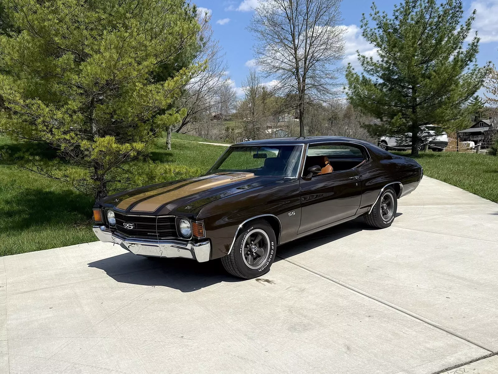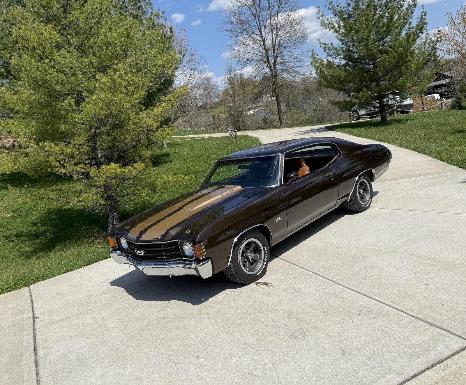 GORGEOUS HIGH QUALITY WELL DONE & WELL KEPT NUMBERS MATCHING 1972 CHEVELLE SS 402 4SPD 12 BOLT F41 ICE COLD VINTAGE AC PS PDB TILT WHEEL FUNCTIONAL COWL FLAPPER PERFECT SOLID & STRAIGHT ORIGINAL METAL SUPER RARE FACTORY CORRECT COLOR COMBO BEAUTIFUL QUALITY MIDNIGHT BRONZE WITH CORRECT FACTORY ANTIQUE MEDIUM TAN BUCKETS & NON-CONSOLE INTERIOR