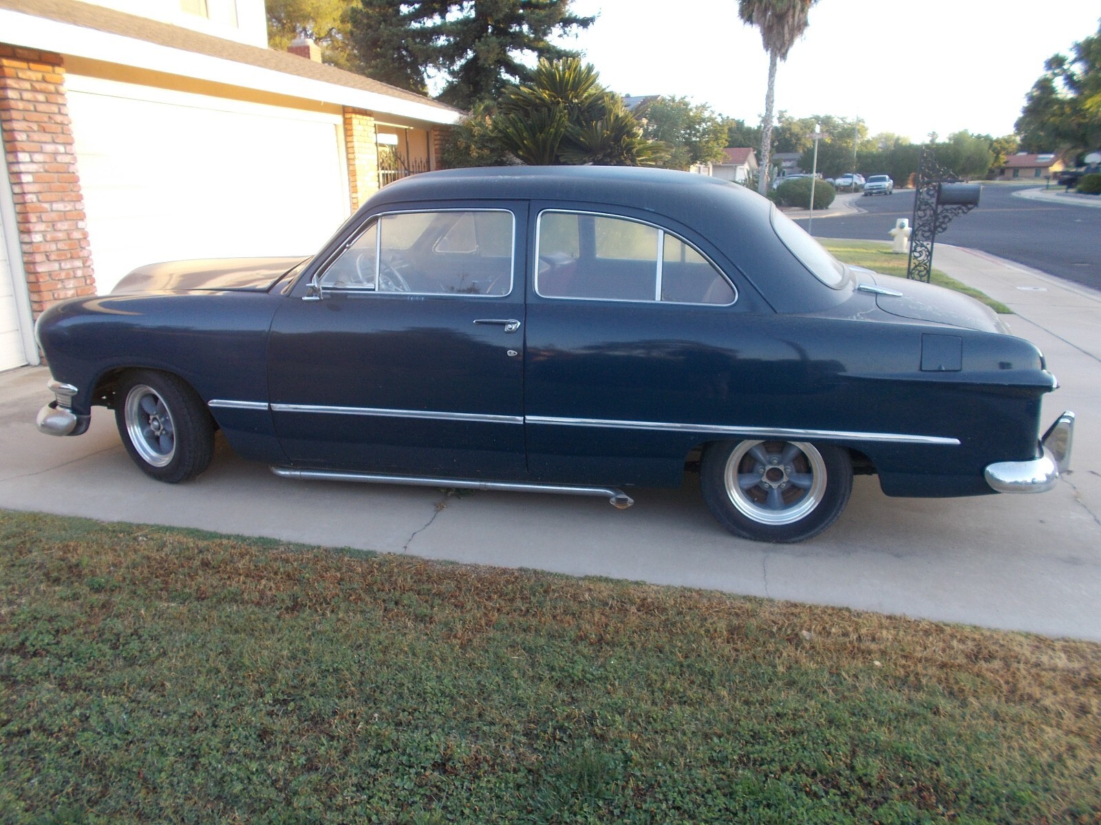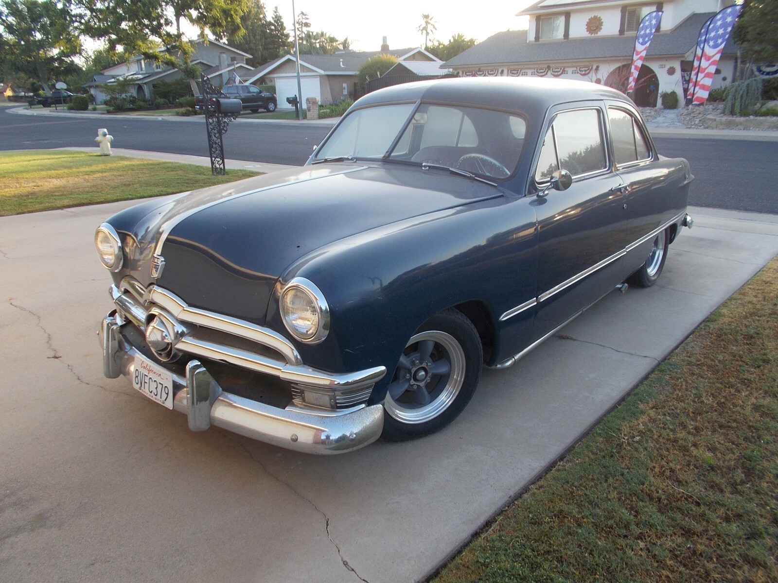1950 Ford 2-Door Sedan, Street Rod. 383 Engine AT, PS, Air Conditioning, Runs Good, Good Driver, Nice Interior. Needs minor body work and paint. body panels and hood are not perfectly straight . New tires and Aluminum Mag Wheels, Mustang II Front End. Late model Ford rear end. This is an older restoration. Trunk lock is broken. Fire wall has been moved back to accommodate 350 engine block. Payment in cash, No trades. Contact Dan Cox (559) 577-0308. Clovis, CA. It is encouraged that you inspect the car before you bid.