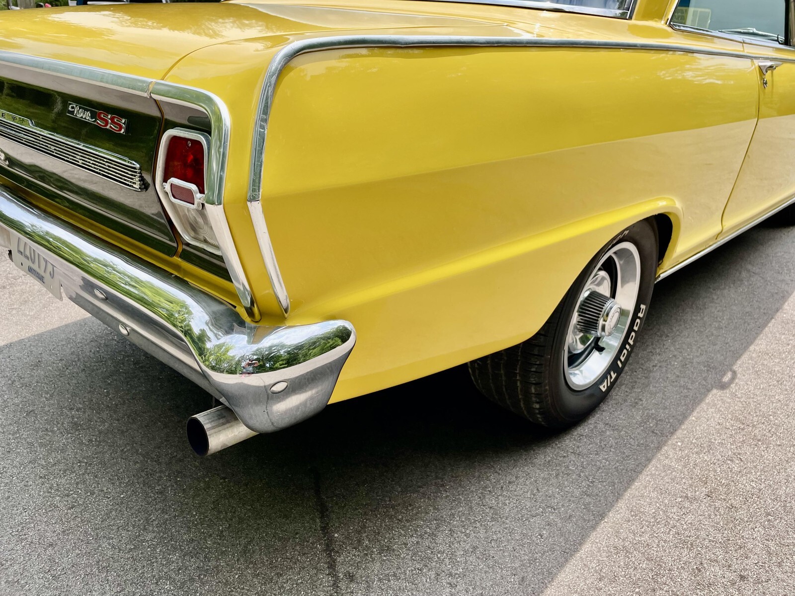 The car presents as a solid and honest driver with clean, straight body panels and solid structure. Some blemishes and wear are present, consistent with an older build — nothing that detracts from the overall presence. The upgraded stance, headers, and aggressive exhaust note give this Nova a mean, no-nonsense street attitude. The factory SS trim remains in place and the car rides on period-correct wheels that fit the look perfectly. All exterior lights including headlights, taillights, and brake lights are functional.