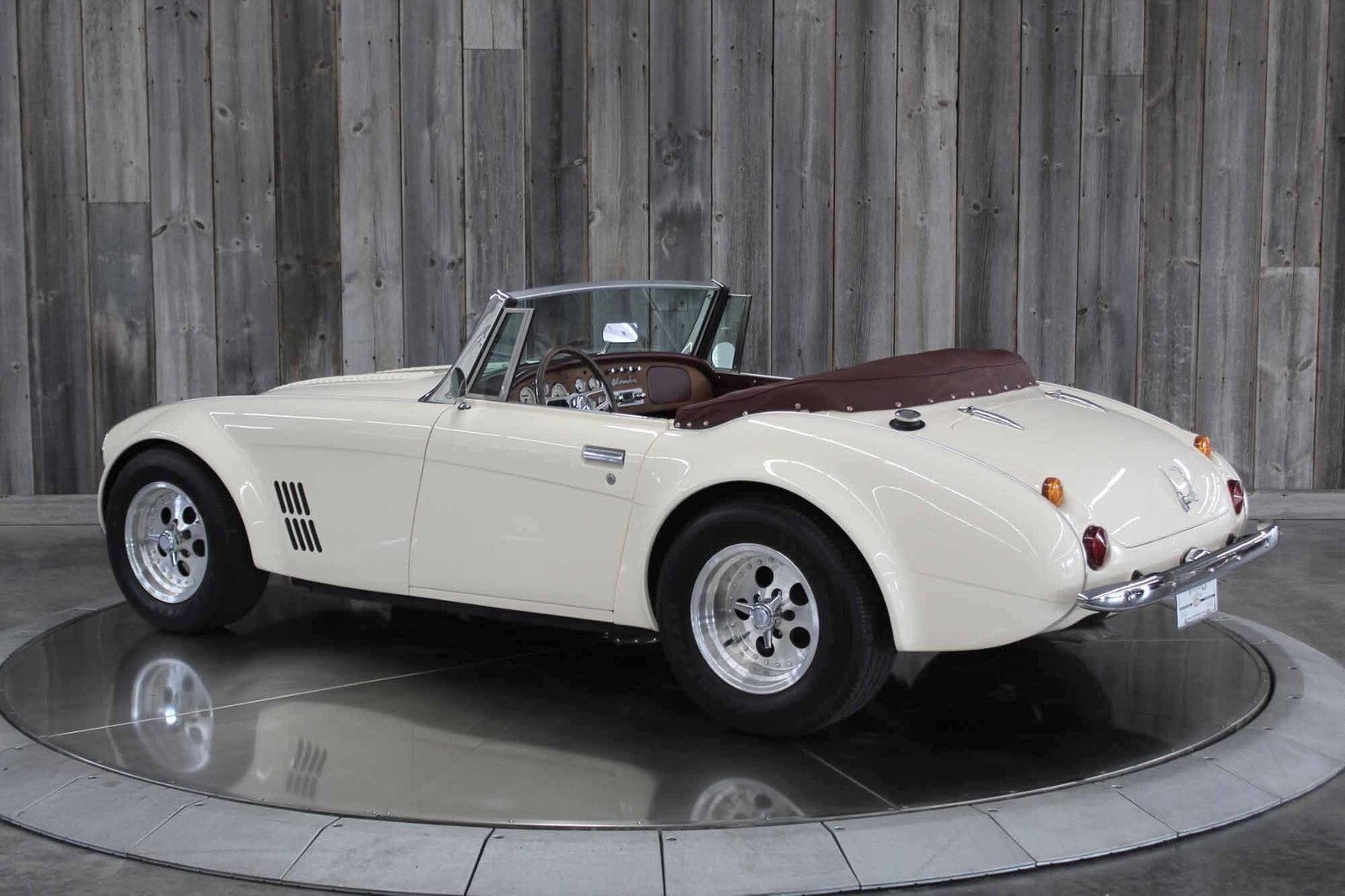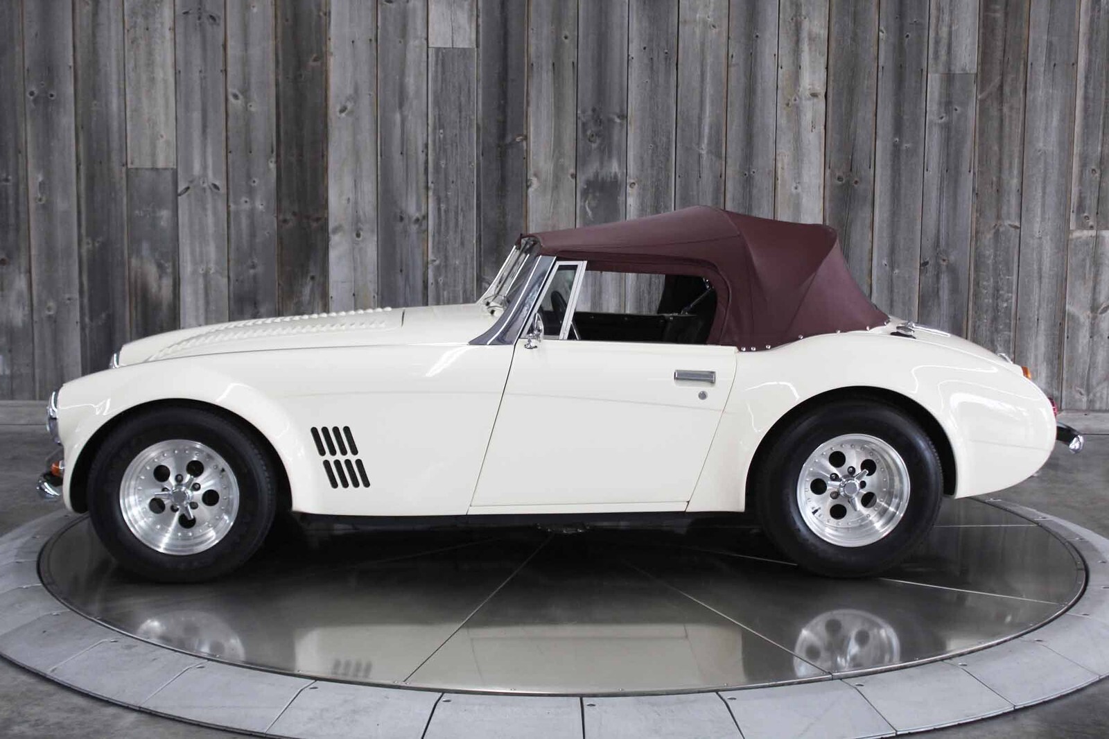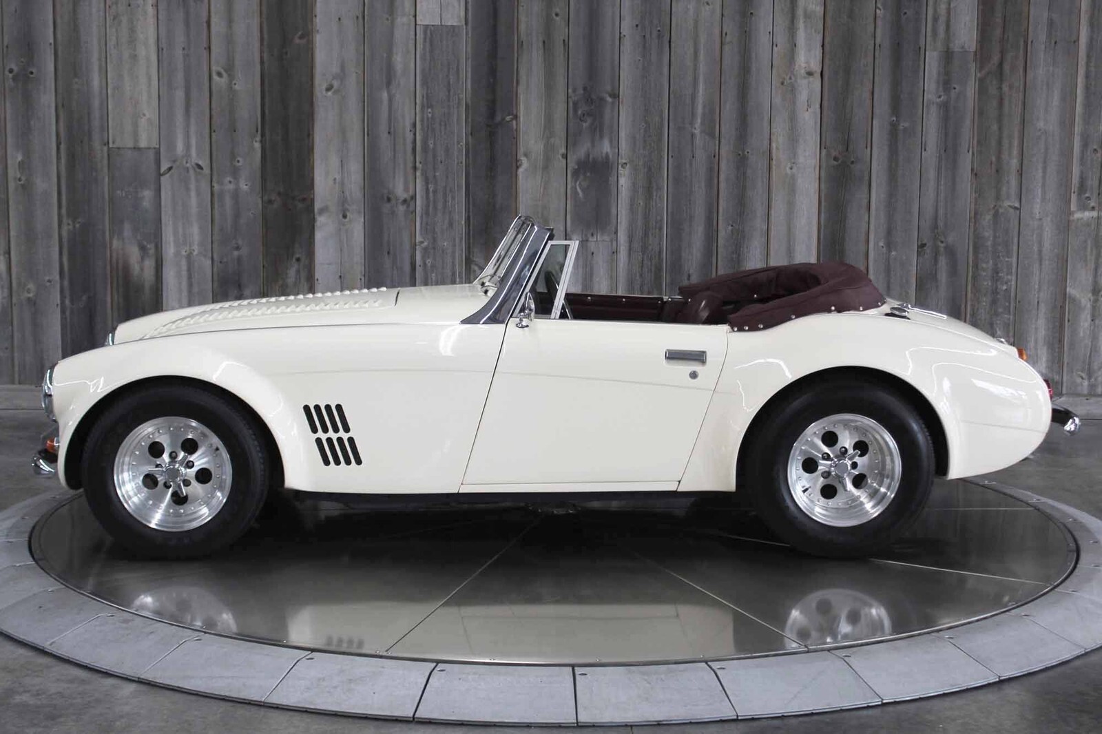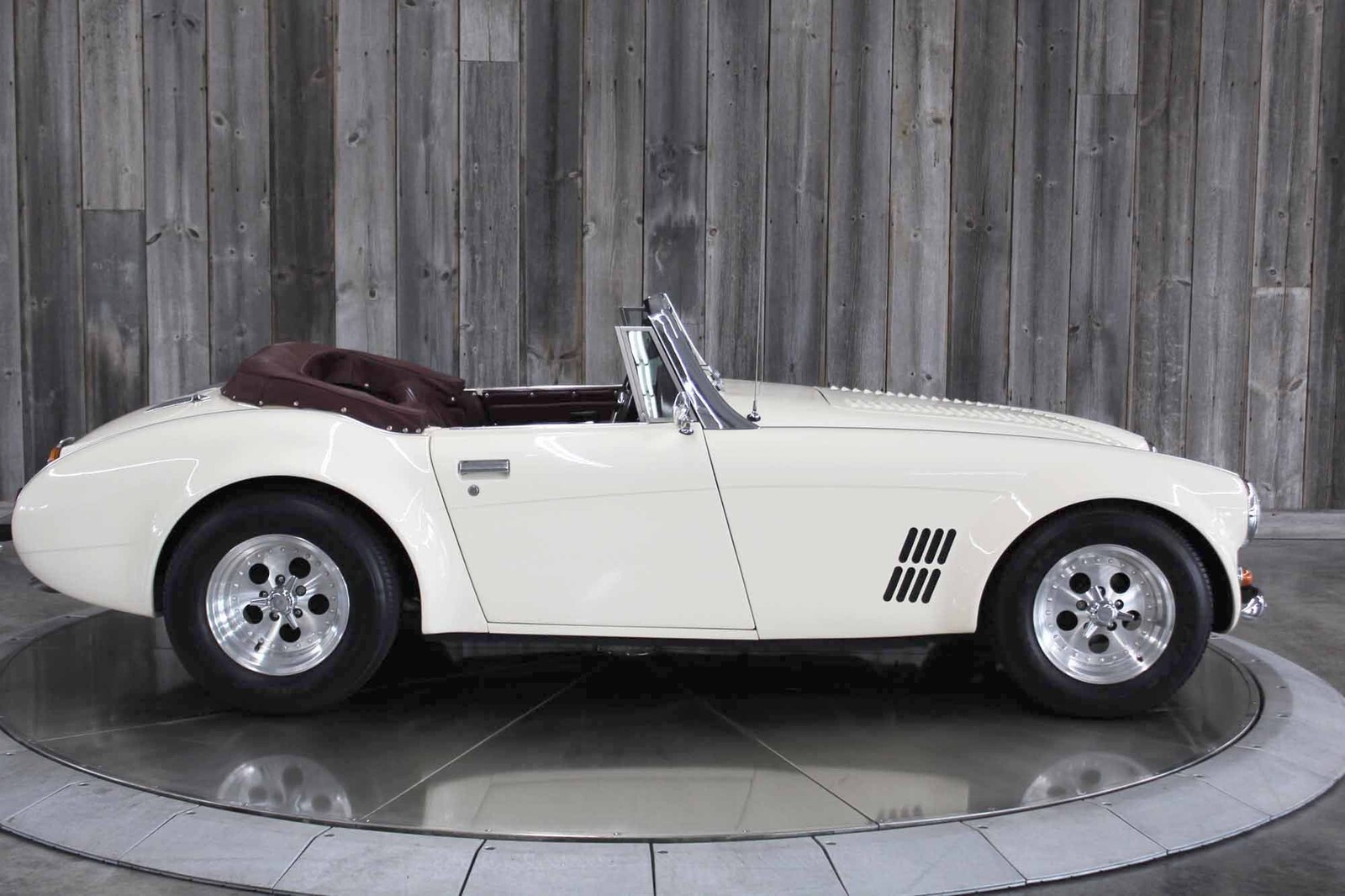Replica of 1962 Austin Healey 3000 (Classic Roadsters Sebring MX) Kit from Classic Roadsters in Fargo ND. Chevy 350ci V8. ChevyTH350 AT Trans with HD shift kit. Hurst Pro-Matic ratchet shifter, Dual exhaust w/ wrapped Blackjack headers, H-connector pipe, and hi-Flow Exhaust, Edelbrock Carb, Cam, and Intake Manifold. Allison Electronic Ignition, Promaster Coil & Sidewinder Wires. Griffin Aluminum Racing Radiator, Goodyear Eagle GT tires w/Aluminum Centerline Champ 500 wheels and spinners. Custom 2x4 steel frame. Mustang II suspension. Factory Vanilla gelcoat fiberglass body. Custom Burgundy Leather upholstery and carpet by Quality Upholstery Moline. VDO gauges (Speed, Tach, Oil Pressure, Oil Temp, Amp, Volts, & Clock) Retro Sound stereo, Kenwood Amp, 2 speakers + center sub. Roll up vinyl Soft top with snap-on boot. Classic Roadsters' story was it was modeled after one of the very cars that the Healey brothers brought to race at the 12 hours of Sebring in the early 60s. Company legend is that they pounded the fenders out with a hammer to accommodate the wider wheels and tires. Then, with a chisel, they cut in the louvers in the hood to mitigate overheating. That is where the styling differences derived from the factory Austin Healy 3000 Classic Roadsters claim was, paired with a small block engine, it would stick and pull over 1.1 lateral G’s while cornering. Id take that at face value. but who knows? The previous owner weighed the car a few years ago, and with a full tank of fuel, it was around 2200 lbs. Wipers not working. Miles on odometer 15,172. (Validate entire description for accuracy before bidding/purchasing)