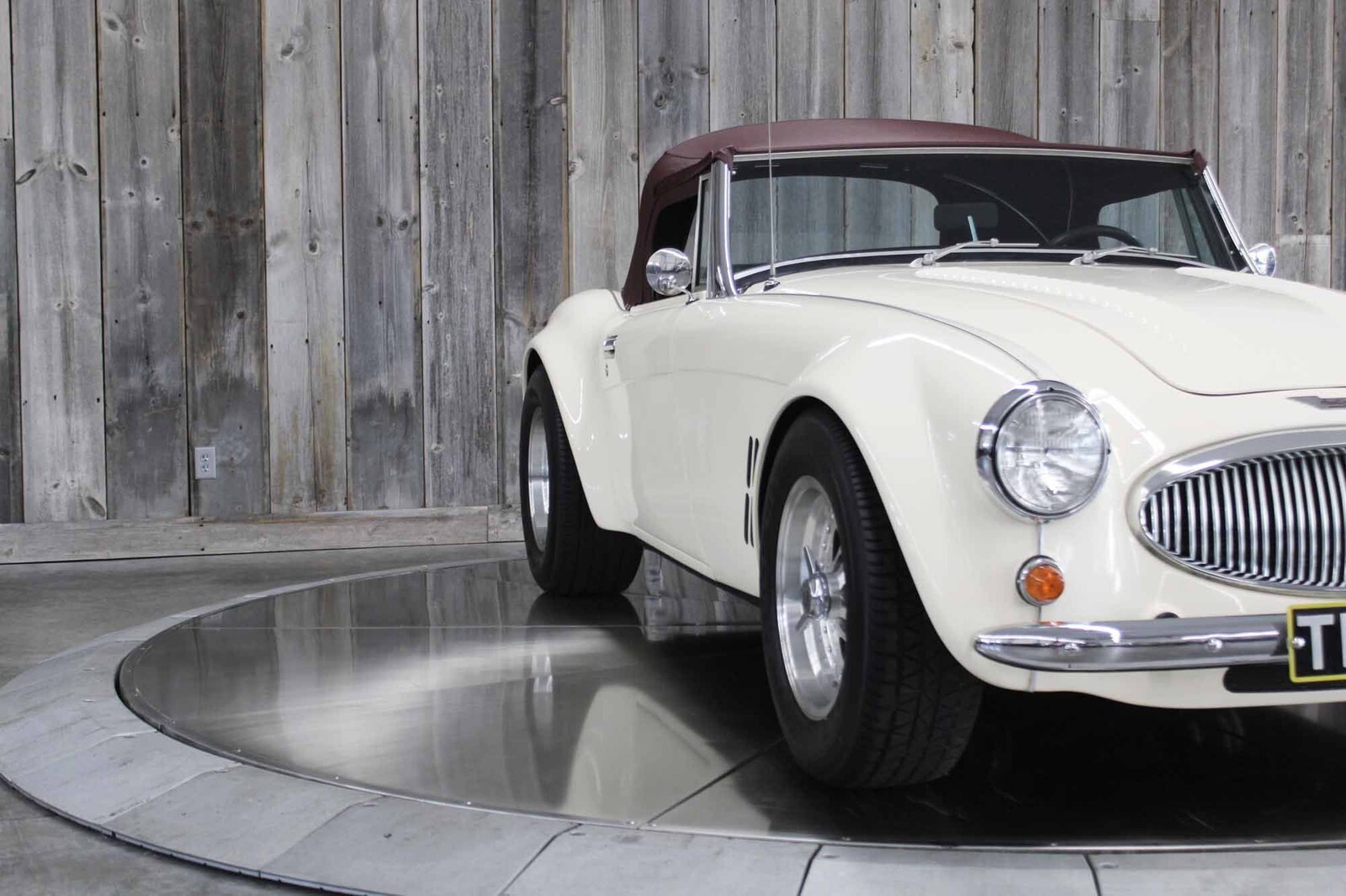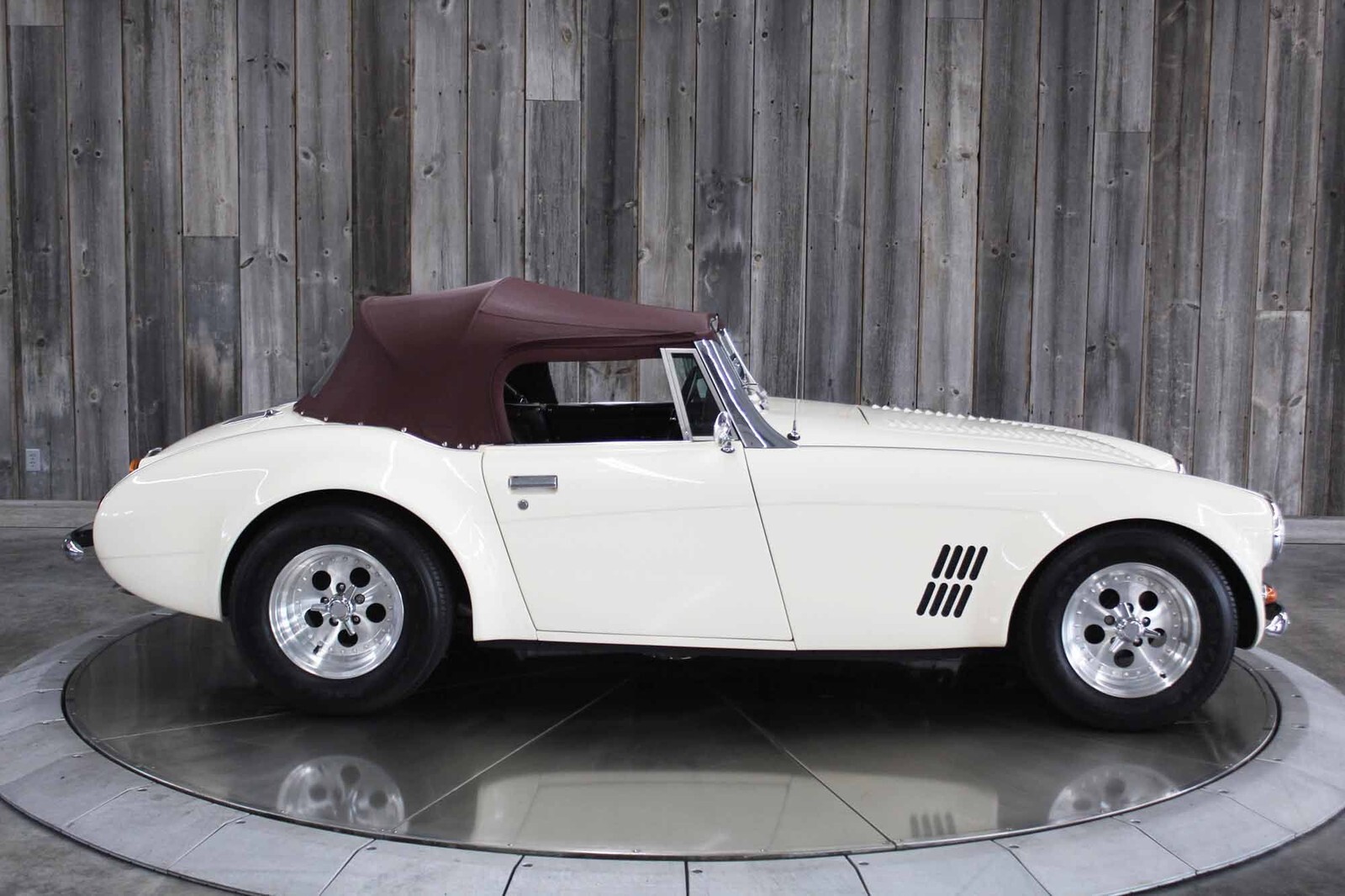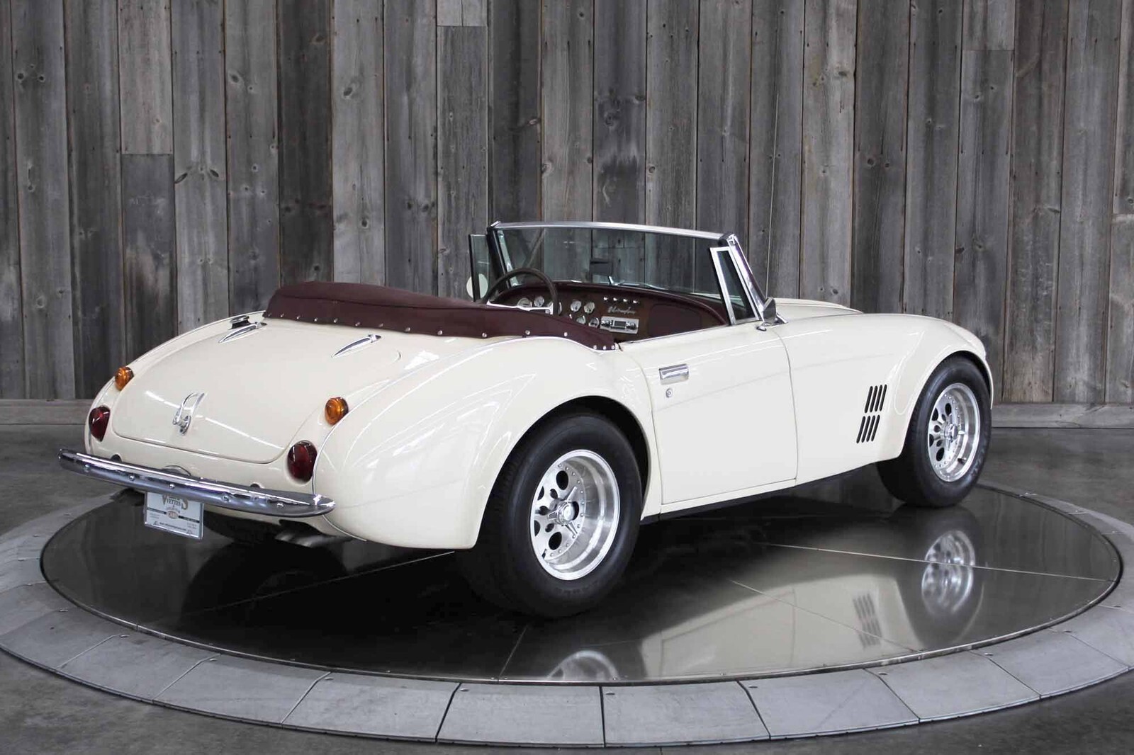 Replica of 1962 Austin Healey 3000 (Classic Roadsters Sebring MX) Kit from Classic Roadsters in Fargo ND. Chevy 350ci V8. ChevyTH350 AT Trans with HD shift kit. Hurst Pro-Matic ratchet shifter, Dual exhaust w/ wrapped Blackjack headers, H-connector pipe, and hi-Flow Exhaust, Edelbrock Carb, Cam, and Intake Manifold. Allison Electronic Ignition, Promaster Coil & Sidewinder Wires. Griffin Aluminum Racing Radiator, Goodyear Eagle GT tires w/Aluminum Centerline Champ 500 wheels and spinners. Custom 2x4 steel frame. Mustang II suspension. Factory Vanilla gelcoat fiberglass body. Custom Burgundy Leather upholstery and carpet by Quality Upholstery Moline. VDO gauges (Speed, Tach, Oil Pressure, Oil Temp, Amp, Volts, & Clock) Retro Sound stereo, Kenwood Amp, 2 speakers + center sub. Roll up vinyl Soft top with snap-on boot. Classic Roadsters' story was it was modeled after one of the very cars that the Healey brothers brought to race at the 12 hours of Sebring in the early 60s. Company legend is that they pounded the fenders out with a hammer to accommodate the wider wheels and tires. Then, with a chisel, they cut in the louvers in the hood to mitigate overheating. That is where the styling differences derived from the factory Austin Healy 3000 Classic Roadsters claim was, paired with a small block engine, it would stick and pull over 1.1 lateral G’s while cornering. Id take that at face value. but who knows? The previous owner weighed the car a few years ago, and with a full tank of fuel, it was around 2200 lbs. Wipers not working. Miles on odometer 15,172. (Validate entire description for accuracy before bidding/purchasing)