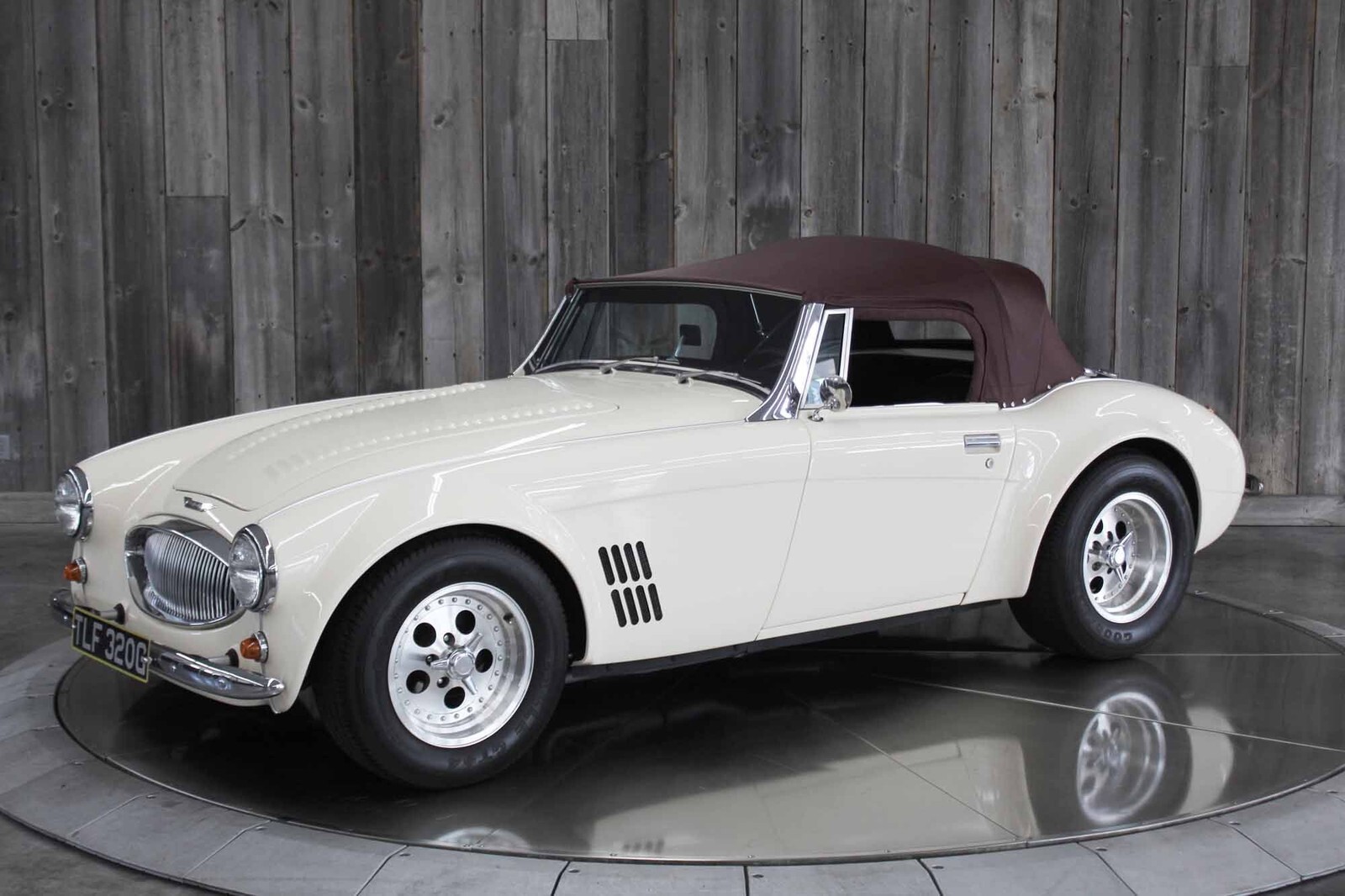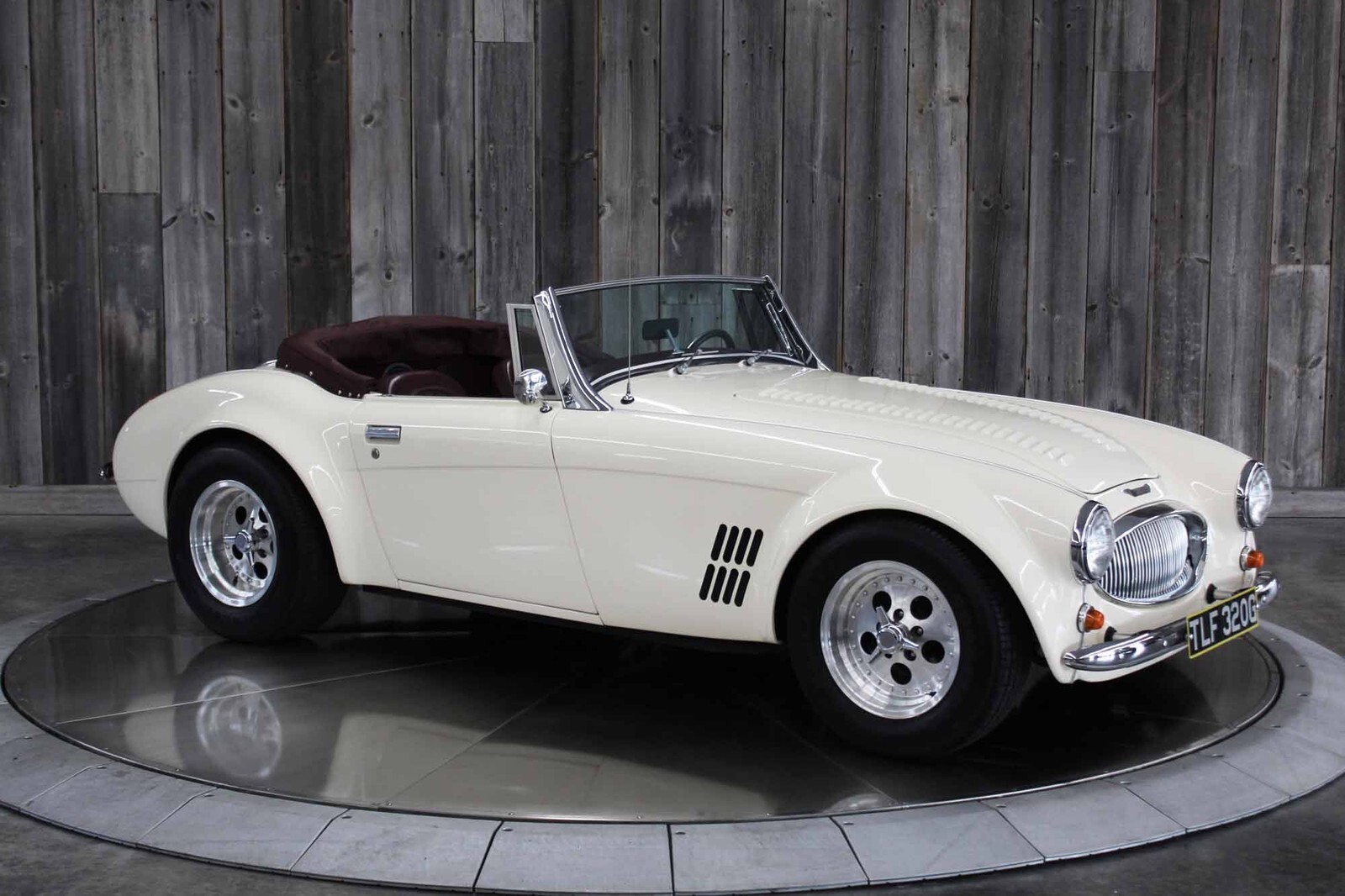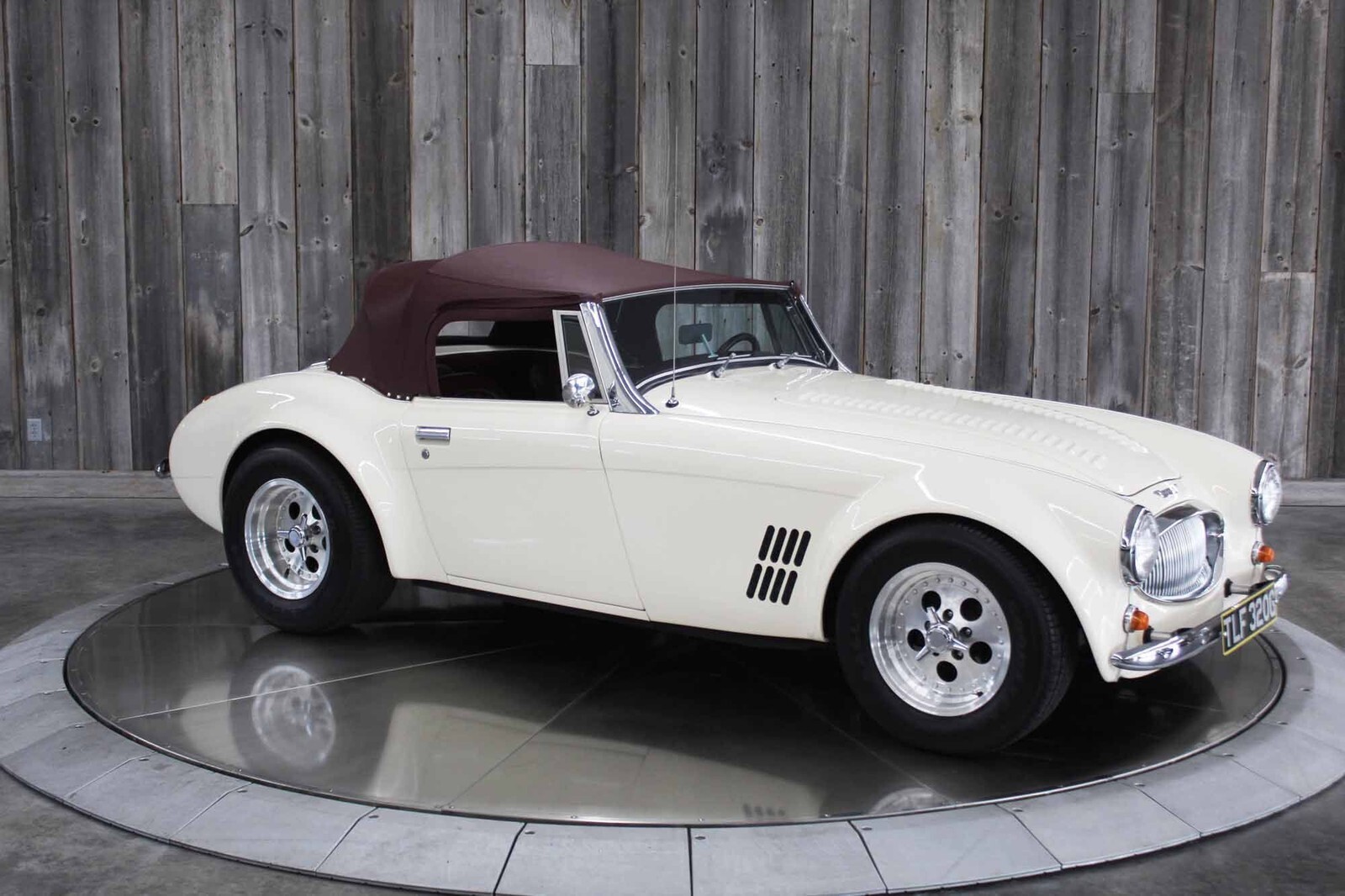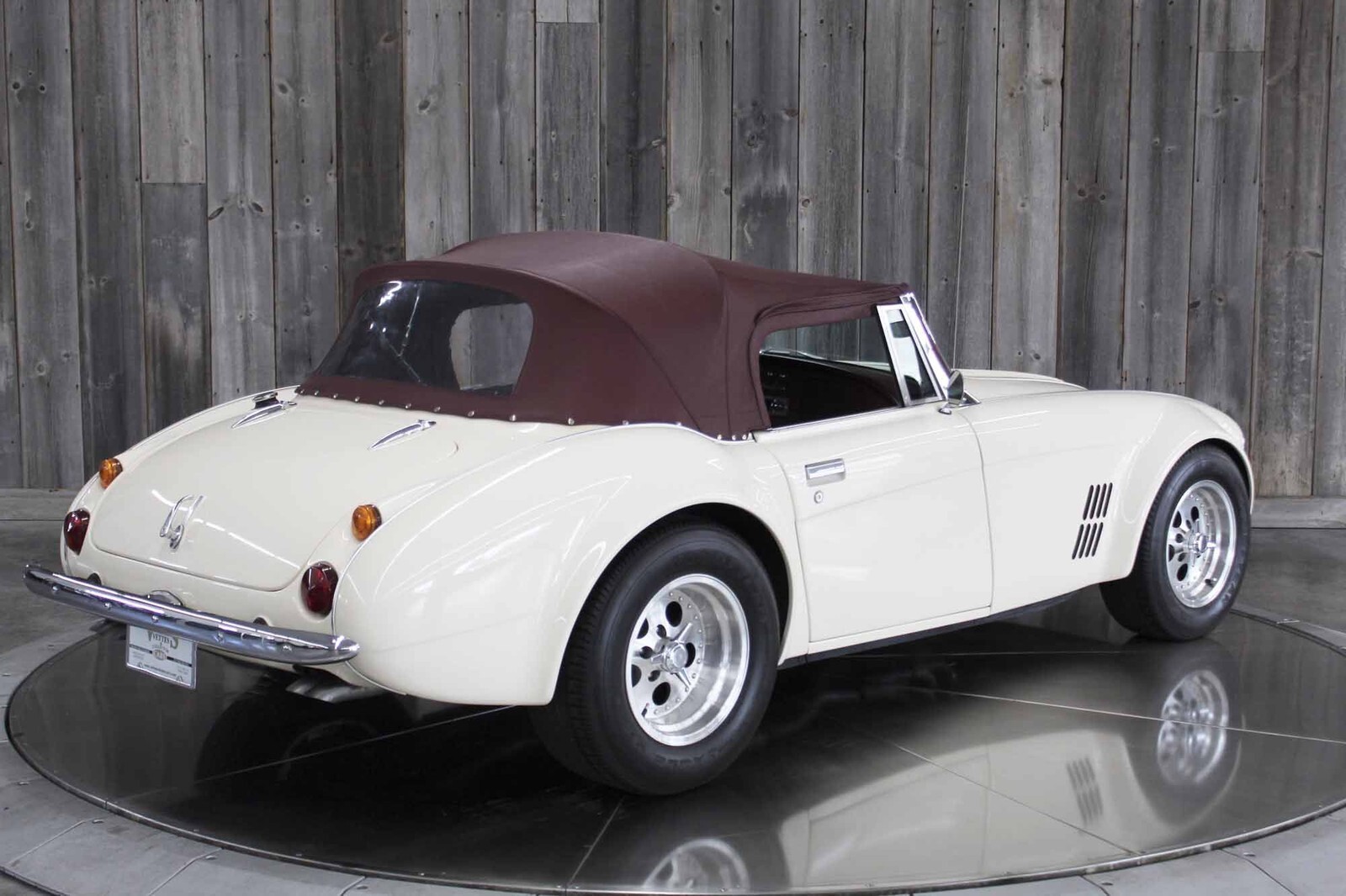 Replica of 1962 Austin Healey 3000 (Classic Roadsters Sebring MX) Kit from Classic Roadsters in Fargo ND. Chevy 350ci V8. ChevyTH350 AT Trans with HD shift kit. Hurst Pro-Matic ratchet shifter, Dual exhaust w/ wrapped Blackjack headers, H-connector pipe, and hi-Flow Exhaust, Edelbrock Carb, Cam, and Intake Manifold. Allison Electronic Ignition, Promaster Coil & Sidewinder Wires. Griffin Aluminum Racing Radiator, Goodyear Eagle GT tires w/Aluminum Centerline Champ 500 wheels and spinners. Custom 2x4 steel frame. Mustang II suspension. Factory Vanilla gelcoat fiberglass body. Custom Burgundy Leather upholstery and carpet by Quality Upholstery Moline. VDO gauges (Speed, Tach, Oil Pressure, Oil Temp, Amp, Volts, & Clock) Retro Sound stereo, Kenwood Amp, 2 speakers + center sub. Roll up vinyl Soft top with snap-on boot. Classic Roadsters' story was it was modeled after one of the very cars that the Healey brothers brought to race at the 12 hours of Sebring in the early 60s. Company legend is that they pounded the fenders out with a hammer to accommodate the wider wheels and tires. Then, with a chisel, they cut in the louvers in the hood to mitigate overheating. That is where the styling differences derived from the factory Austin Healy 3000 Classic Roadsters claim was, paired with a small block engine, it would stick and pull over 1.1 lateral G’s while cornering. Id take that at face value. but who knows? The previous owner weighed the car a few years ago, and with a full tank of fuel, it was around 2200 lbs. Wipers not working. Miles on odometer 15,172. (Validate entire description for accuracy before bidding/purchasing)