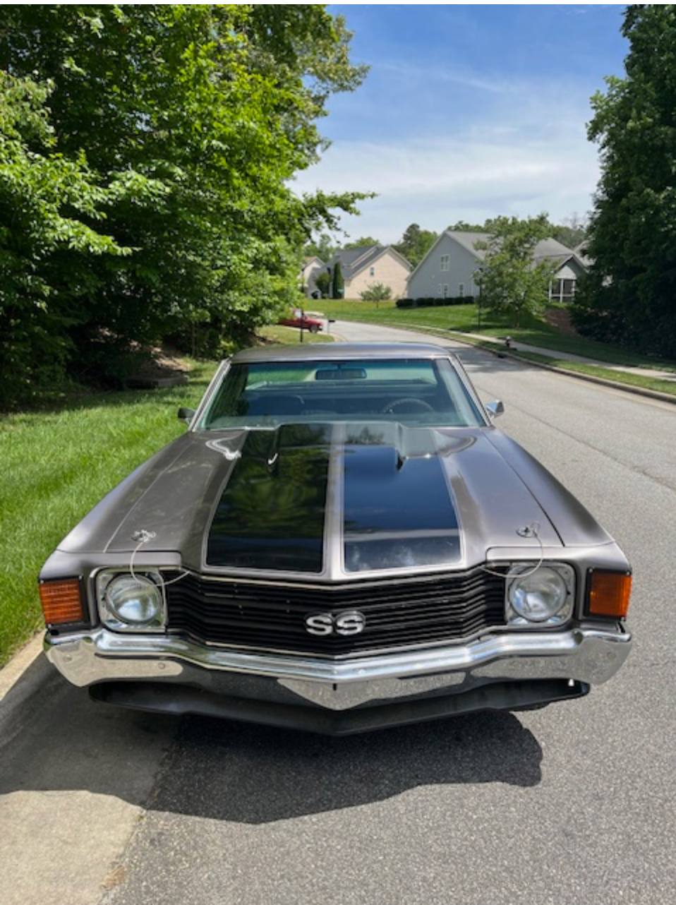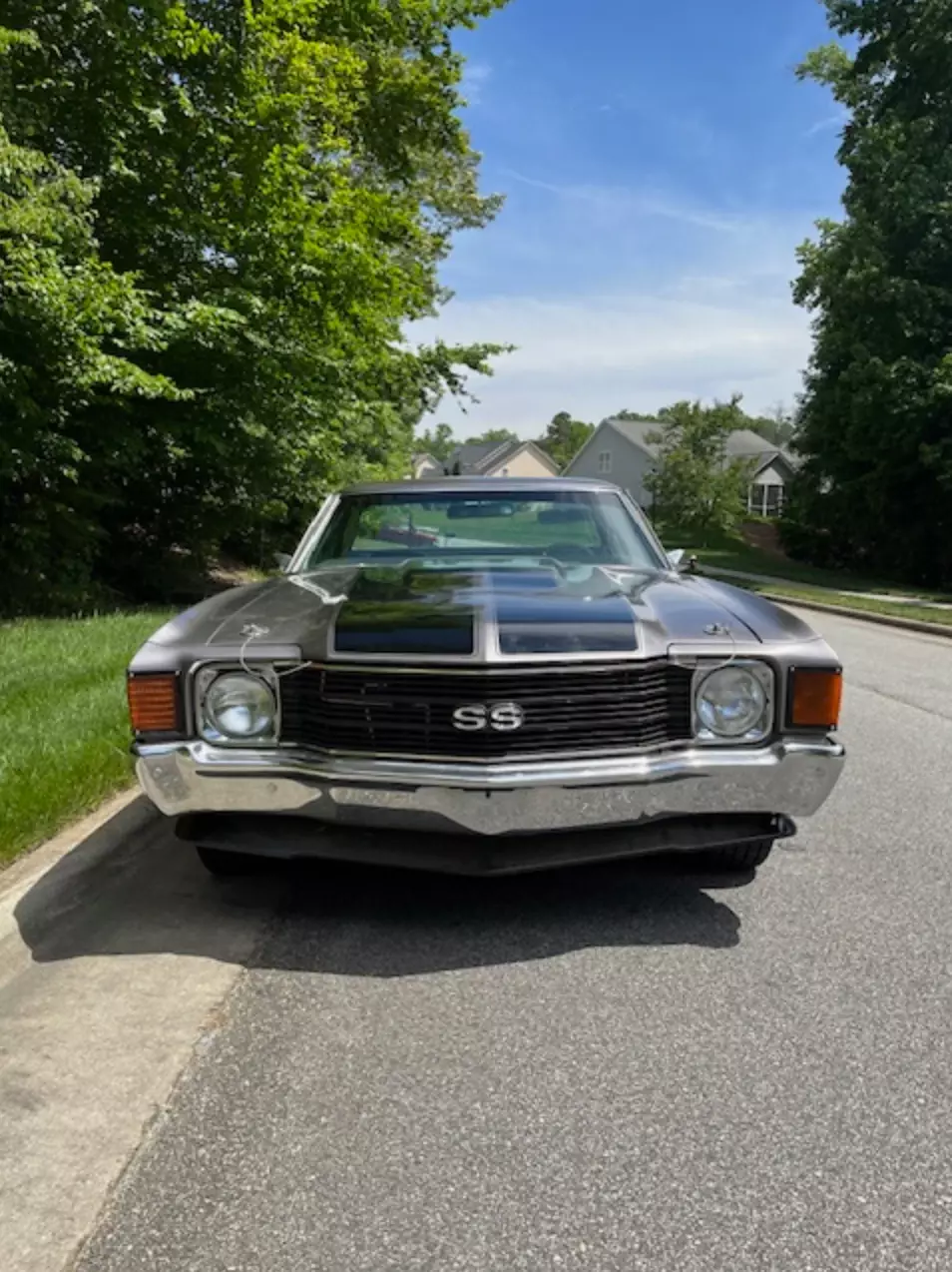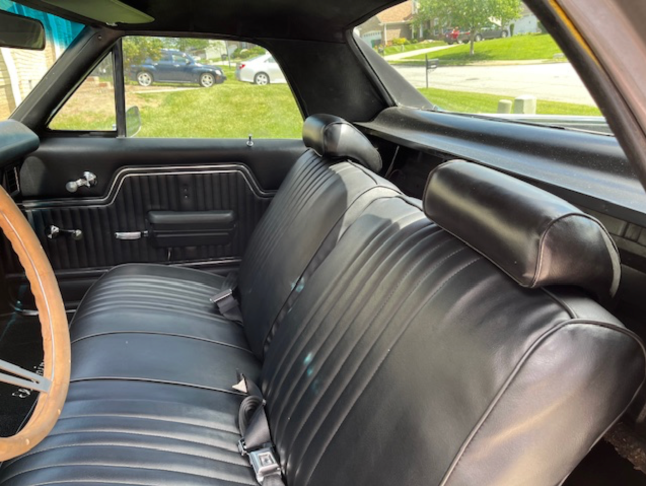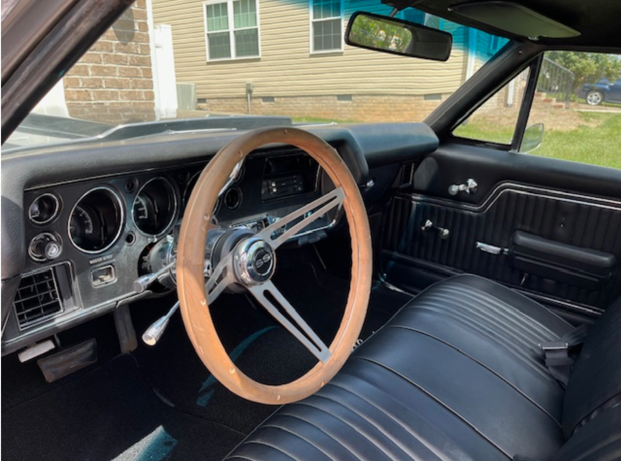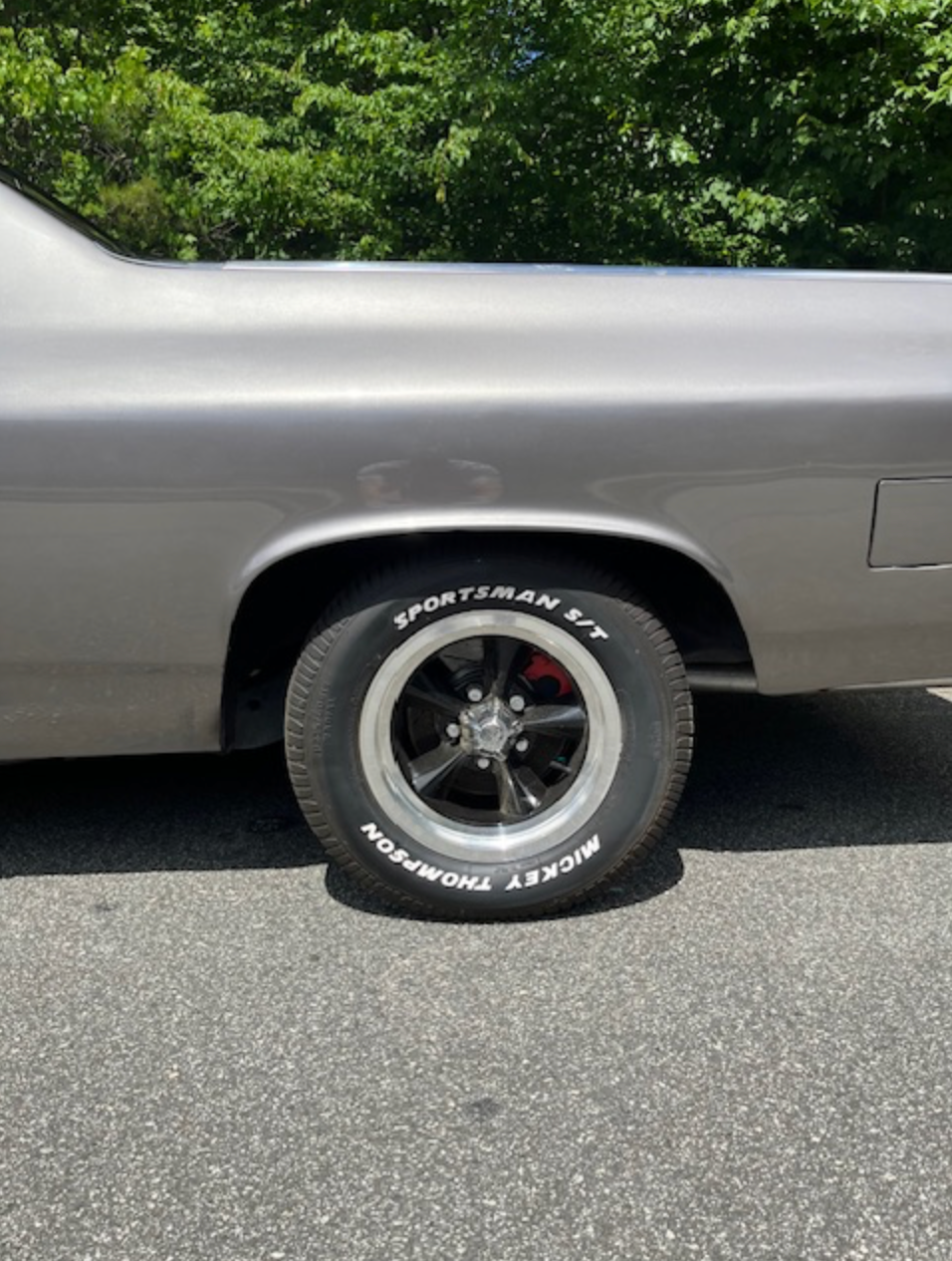 This classic El Camino has been restored to its classic beauty with a modern twist. You definitely won't see anything like this on your way to the grocery store. This car has kept its classic styling, but has modern upgrades, such as Vintage Air, four-wheel disc brakes with red calipers, and Bluetooth stereo.BODY OVERVIEW: The body of this El Camino is in good condition with a few minor areas under the paint that need rust repair. The "John Wick" inspired paint job showcases a gunmetal gray with black racing stripes. All chrome trim for the exterior is brand new: front and rear bumper, door handles, truck bed trim, windshield wipers, and badges. The front features a spoiler below the bumper to give a more aggressive look. The brakes have all been upgraded to four-wheel disc with red brake calipers that really pop against the gunmetal gray paint job. This is definitely not your dad's El Camino.UNDER THE HOOD: The engine is a small block Chevy 400 that has been upgraded with all new spider intake, 750 carb, duel fan radiator with cooling regulator, chrome headers, chrome valve covers, serpentine pulley system, brand new battery, brand new alternator, brand new fuse box, and brand new inner fenders.The transmission is automatic with overdrive that is perfect for cruising!INTERIOR: Everything in the interior is brand new with an all back color scheme that fits this car perfectly. It features a brand new bench seat, brand new carpet, chrome steering wheel with tilt, power steering, walnut steering wheel, brand new rear view mirror, brand new door locks, door handles, and door panels, Dakota digital SS style gauges, Vintage Air, and a classic car stereo with Bluetooth capability. This El Camino is perfect for someone seeking a classic muscle car with modern conveniences. It's ideal for cruising, going to car shows, or just enjoying the weekend. It's going to be next to impossible to find an El Camino in this good of condition with these upgrades for this price. It does need some minor paint and body improvements, but that has been reflected in the price.