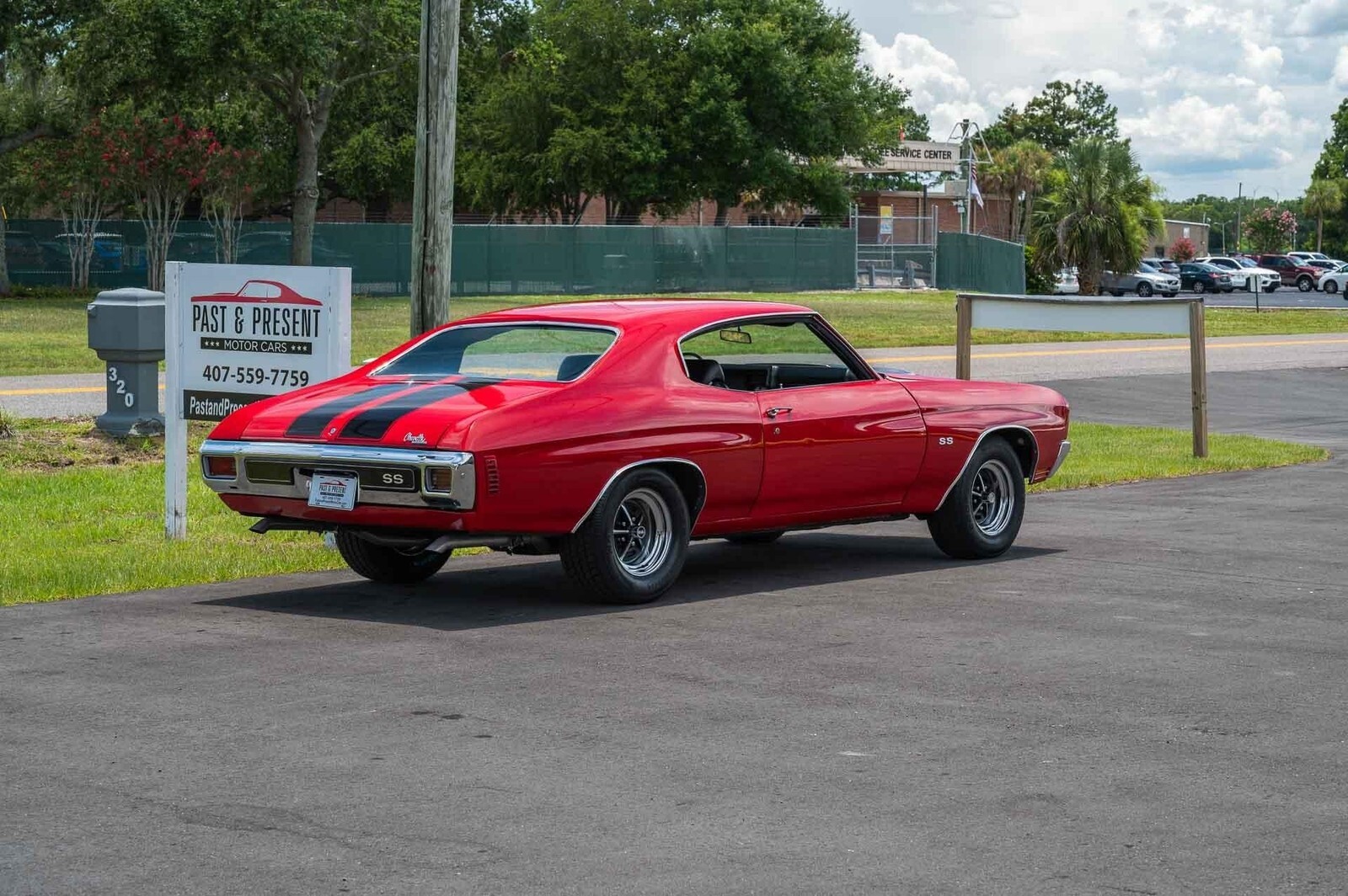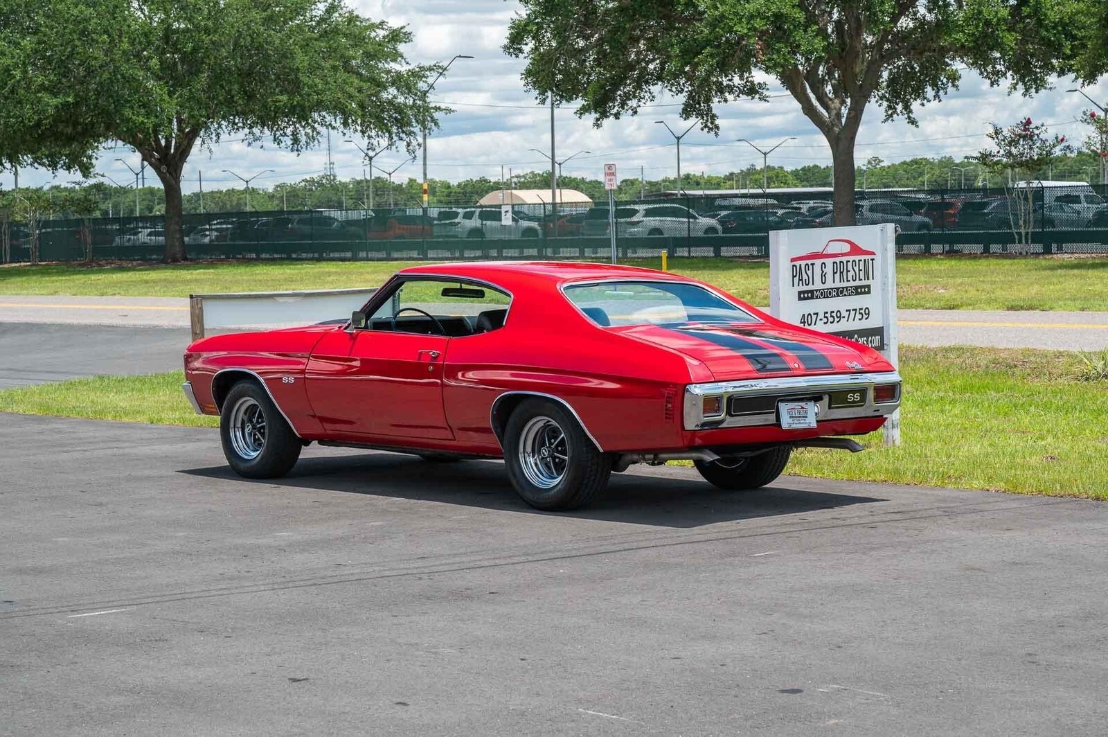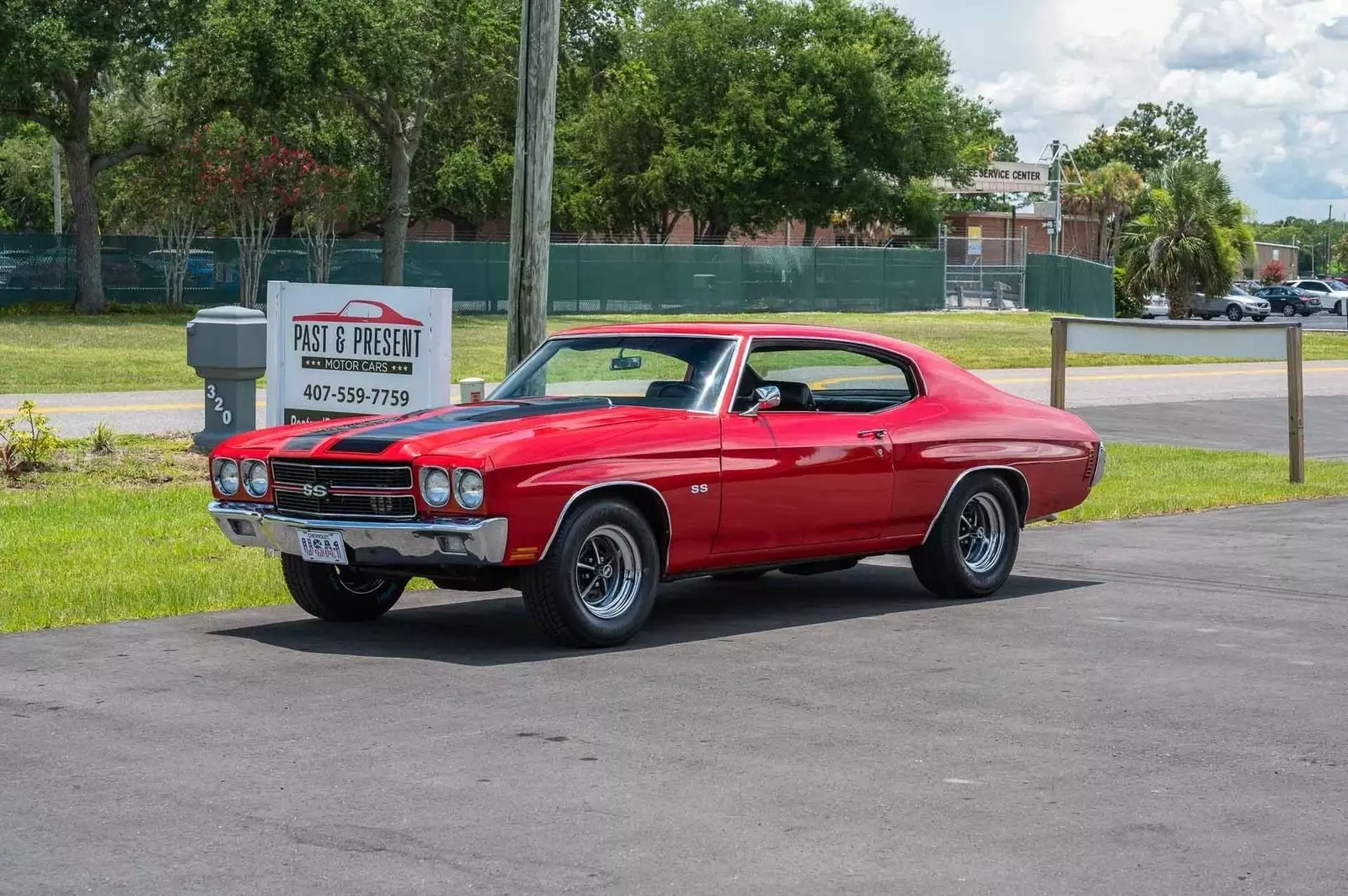 1970 Chevrolet Chevelle SS Tribute started life as a Malibu and has been tastefully upgraded with classic muscle car performance in mind. Under the hood is a strong-running 383 Stroker V8 engine paired to a 700R4 automatic transmission with overdrive for highway cruising. The car features power steering, power front disc brakes, and a tilt steering column for comfort and drivability. Finished in Cranberry Red with a black bucket seat interior, this Chevelle has the look of a true SS. It also features dual exhaust with headers that produce an aggressive, muscle car sound. A great driver-quality car with standout presence and classic style, ready to be enjoyed. While we do our best to provide the highest quality muscle cars with an honest and reliable description and realize the importance of transparency when selling vehicles. That being said, we have not built, modified, changed or personally owned this vehicle. Whether this vehicle is consigned or owned by Past & Present Motor Cars we do not know the vehicles complete history since new. We want to be clear and try to answer any questions our customers might have prior to purchasing. Additionally, we not only welcome but we encourage 3rd party independent inspections. Please inquire prior to purchase to make sure the advertised vehicle has not already been sold. We list our vehicles on multiple websites and a vehicle can sell at any time. If a customer chooses to purchase sight unseen (many of our customers choose this option) the customer accepts the vehicle AS IS and WHERE IS and understands we cannot address concerns after purchase. For this reason, it's important all concerns are addressed prior to purchase. We make every effort to present accurate and reliable information, but use of this information is voluntary, and should only be deemed reliable after an independent review of its accuracy, completeness, and timeliness. It is the sole responsibility of the customer to verify the existence of options, accessories and the vehicle condition before time of sale. Financing is Available with low rates and Vehicle Shipping is available from our Showroom to your Garage. A Classic Car Warranty is Available for Purchase from a 3rd Party. Please speak to our Sales Associate or Company Representative for more information. Our team is working and available anytime by Phone or Text for your convenience at 407-559-7759. Thank you for your interest!