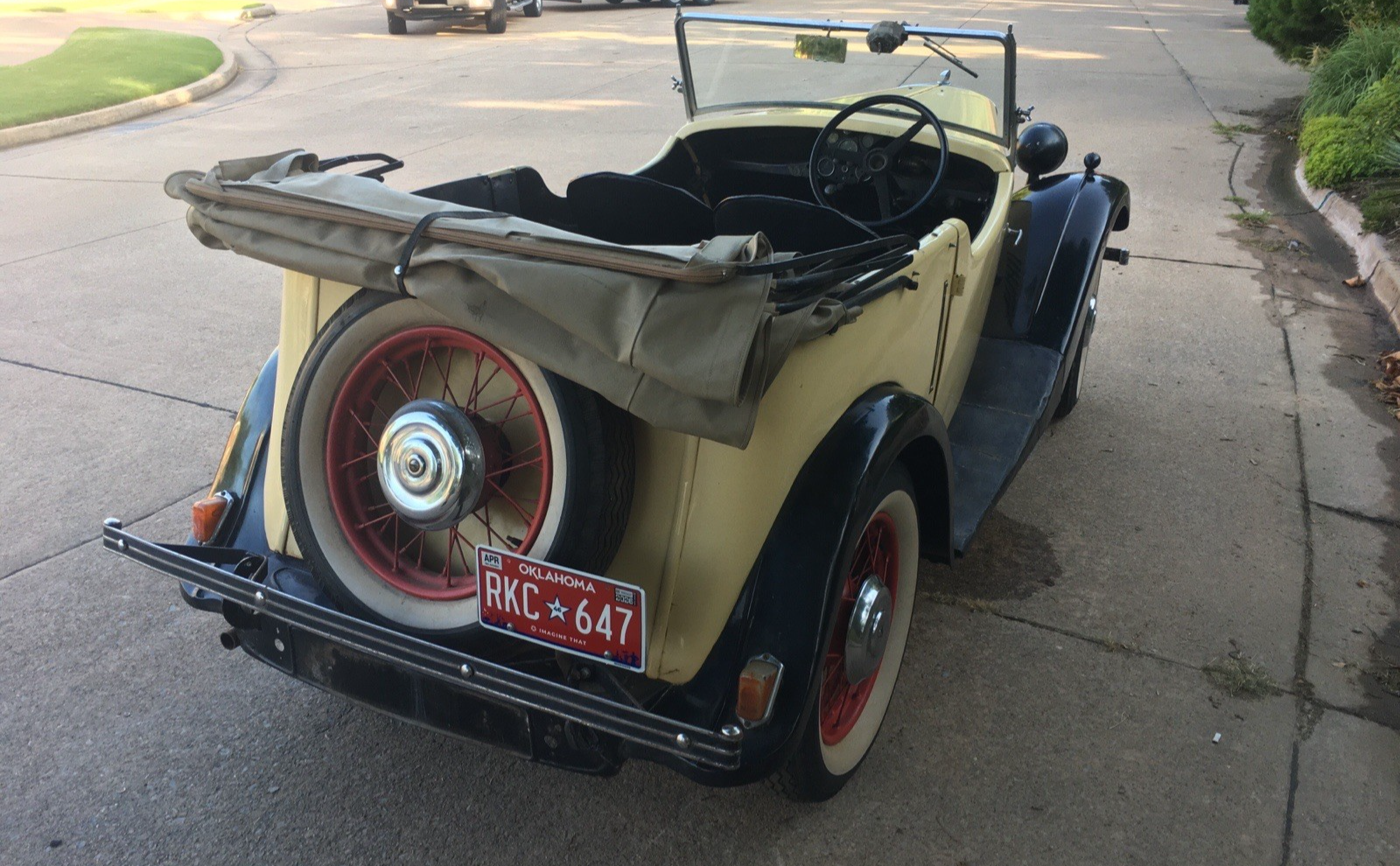 Right front drivers side top bow metal bracket is broken loose from the front bow. (It still latches) but needs repair. With vehicle is a complete set of window frames, with what looks like all the old original material. Great for patterns. Also a set of factory hard steel wheels come with car.
