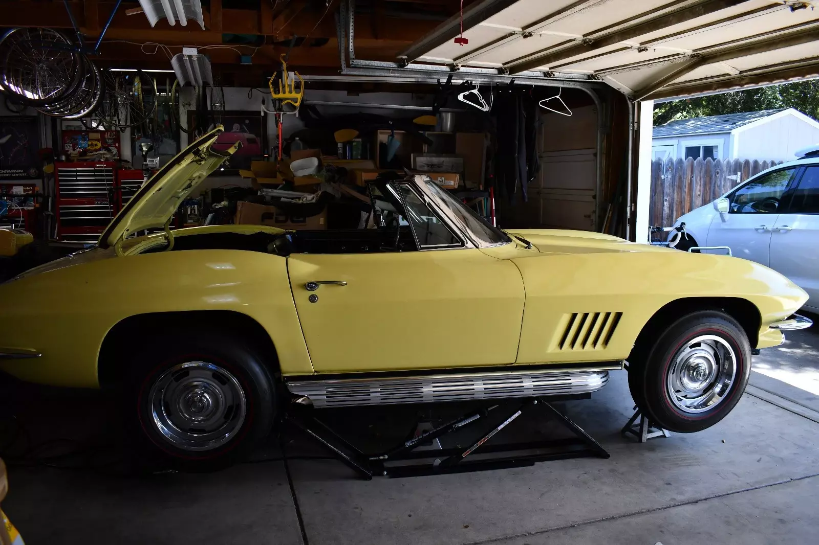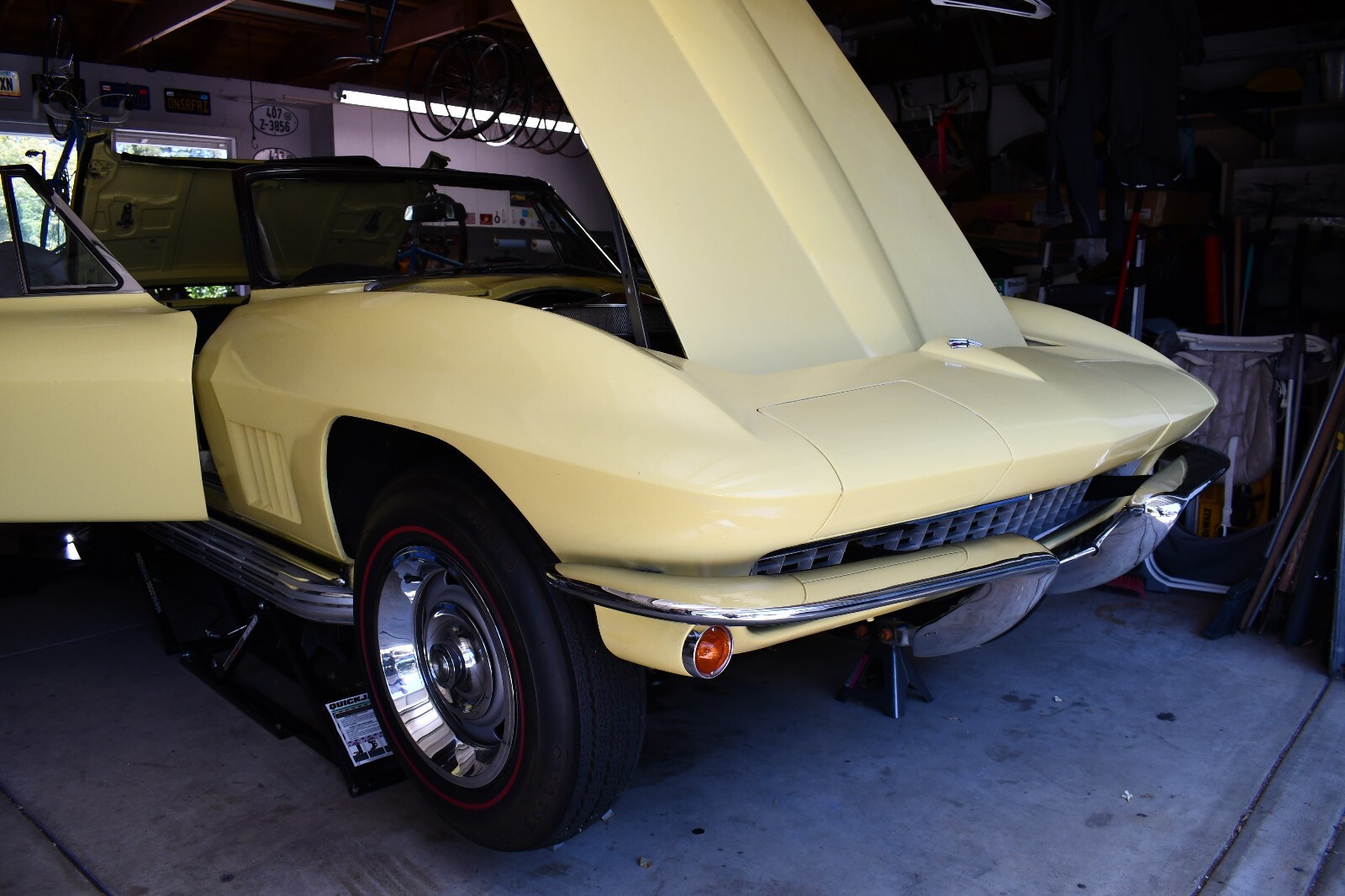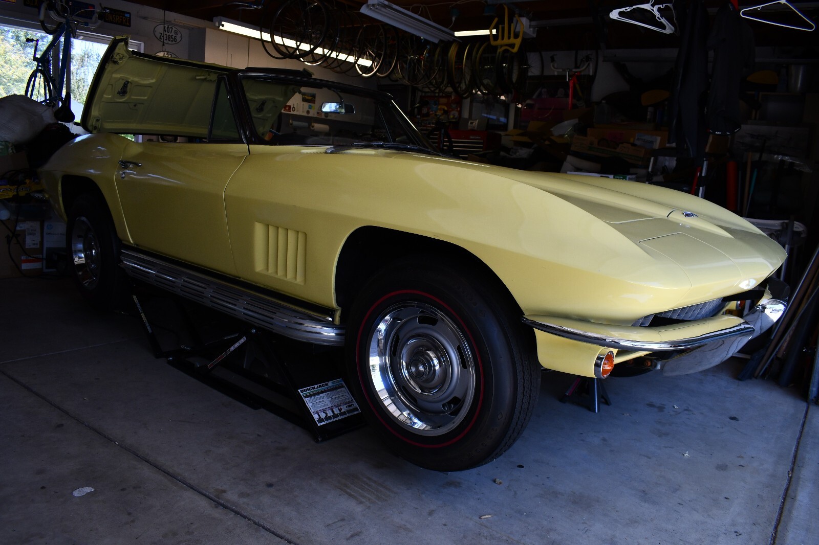 This 1967 Chevrolet Corvette roadster retains its handsome factory color scheme of Sunfire