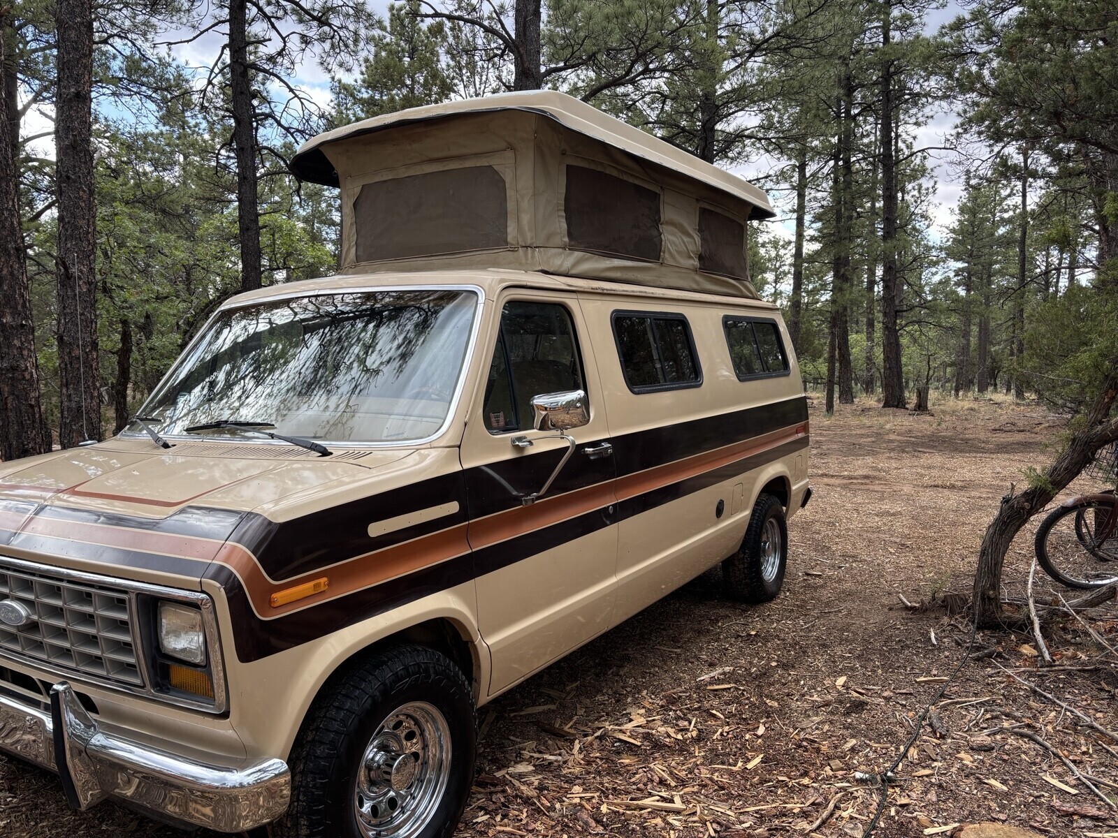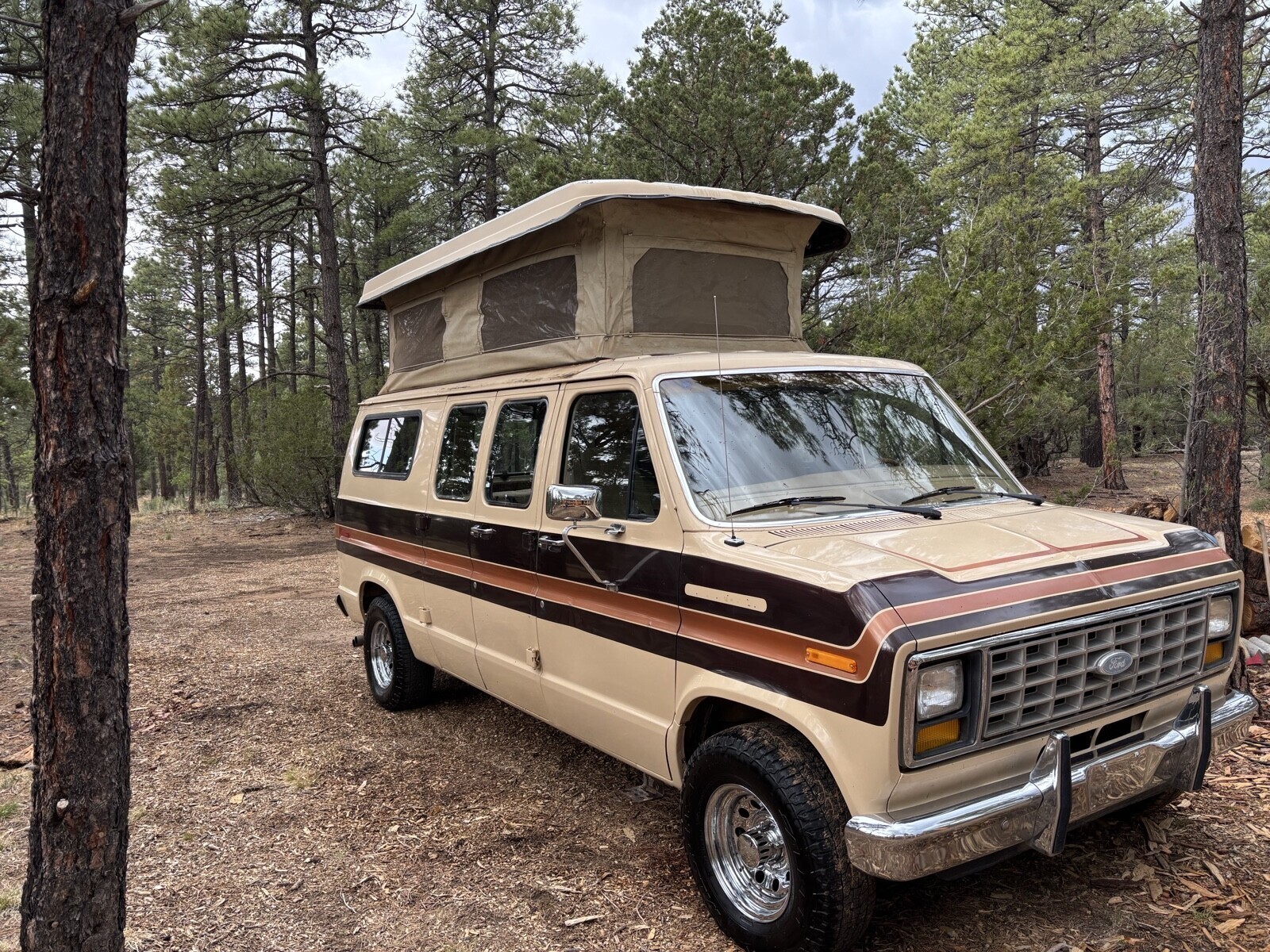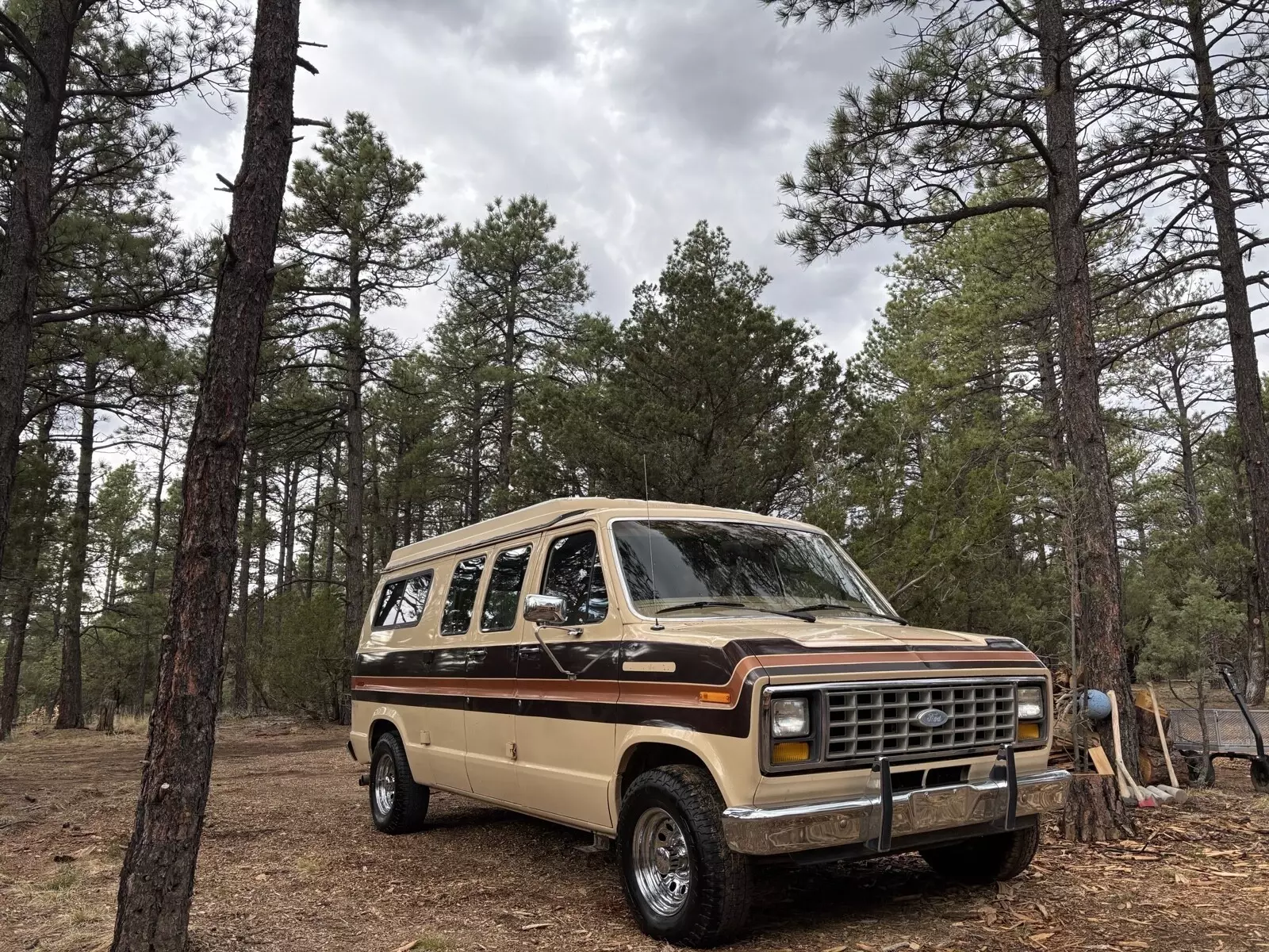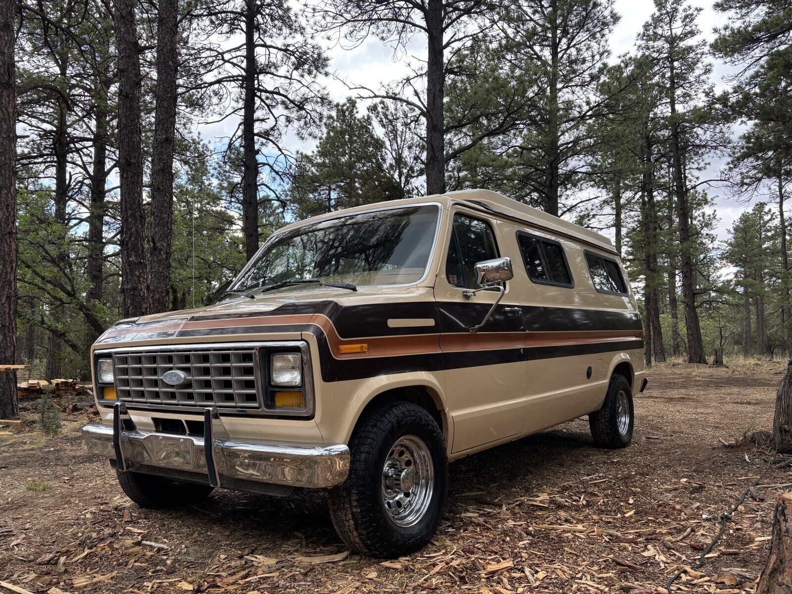 1984 ford E150, 351 Windsor V8 and a C-6 automatic transmission, 2 wheel drive. 3rd owner, extremely well maintained and in great condition for its age.