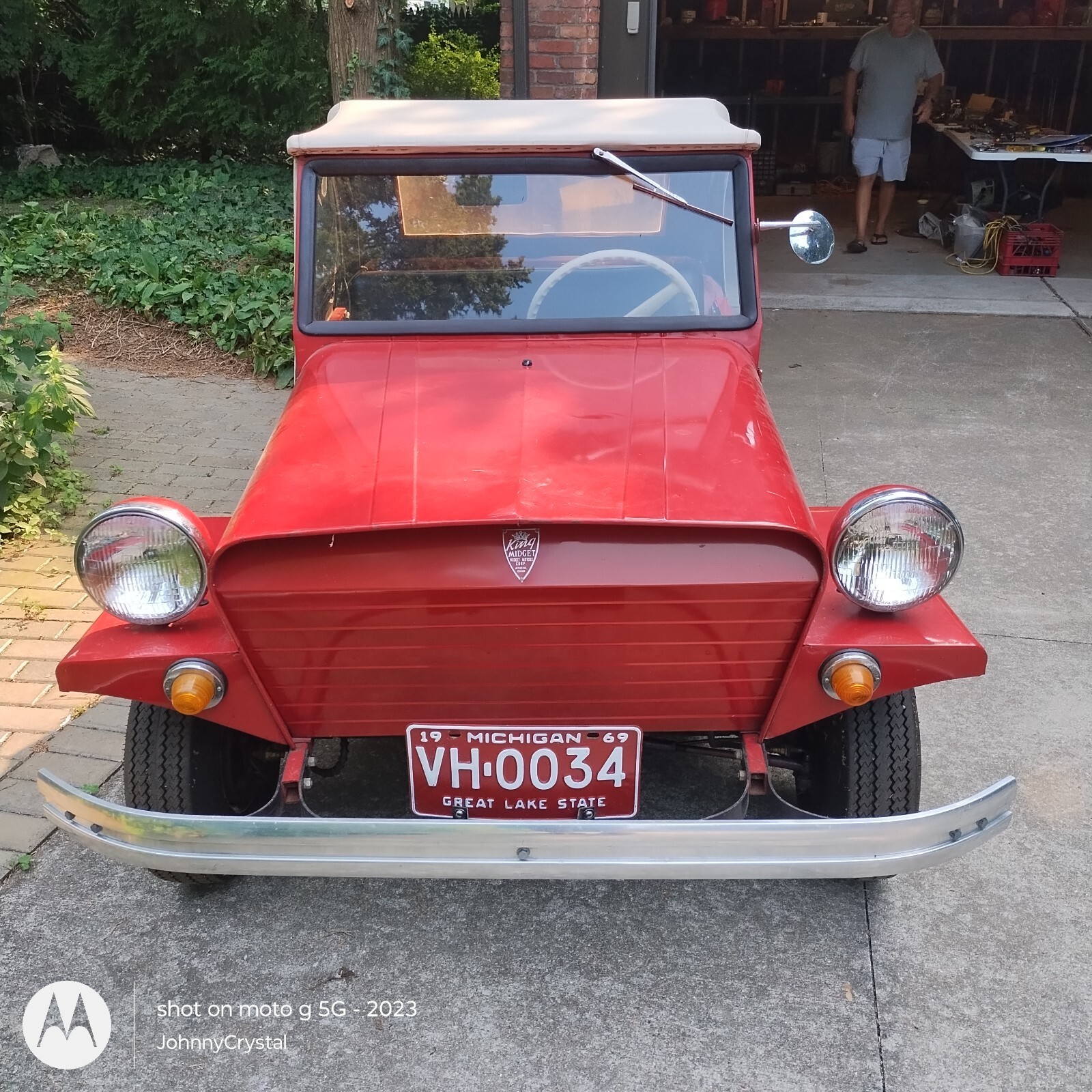 The 1969 King Midget Model 3 is a vintage two-door car with a clean vehicle title and only 749 miles on the odometer. This model, manufactured by King Midget, is a classic piece of automotive history that would make a great addition to any vintage car collection or for those looking for a unique and nostalgic driving experience. With its low mileage and timeless design, this car offers a rare opportunity to own a piece of automotive history from the late 1960s. Please note the car has been garage stored for decades and is in very good original condition....The new clutch system and chain needs to be installed before use. There is some minor scuffs here and there with a few minor flakes of paint but for the most part it is in pretty good condition. It fits on a regular car hauler trailer. It is not very heavy and can easily be moved around. It's just good old car.Buyer pays shipping. ..If you have any questions or something to share please let me know...