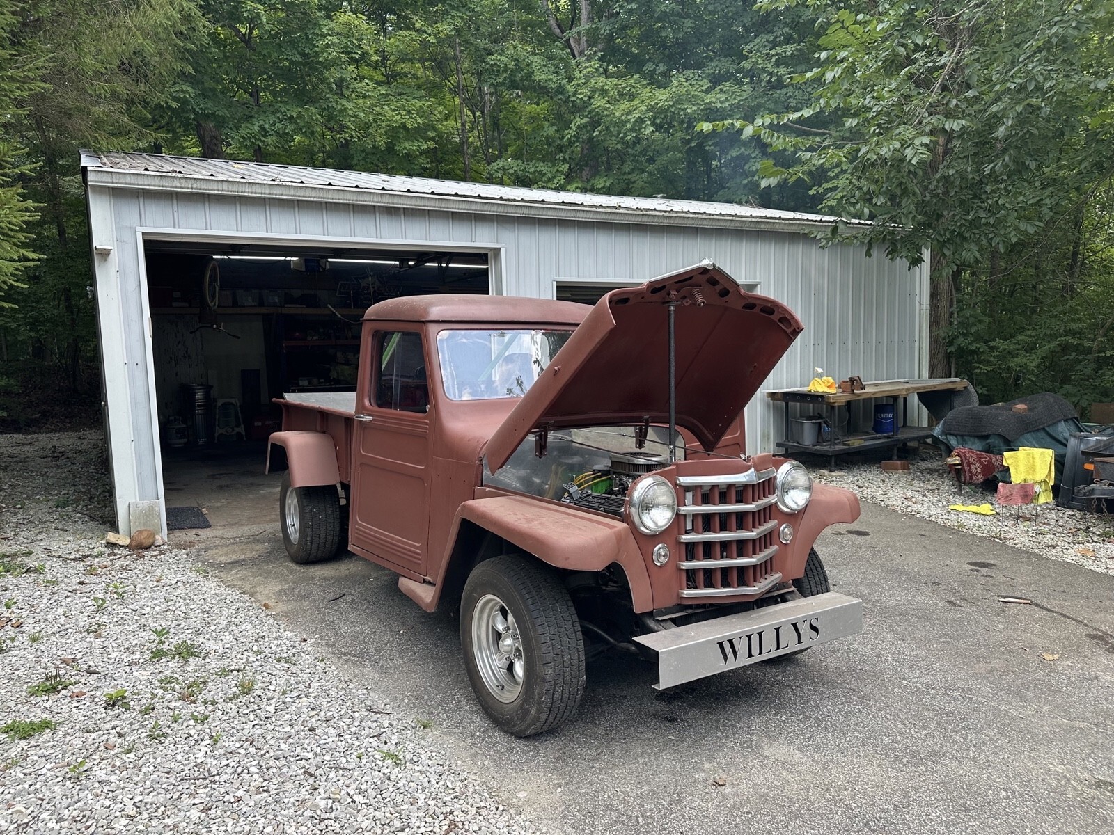 Built on a Chevy S10 truck chassis, cleaned and painted, new shocks, front brakes, traction bars. Willys body is from the better condition I could find. The tailgate is a rare 1950’s stamped Willys tailgate. Body has some rusted out areas that are small and small dents. The 383 Chevy Strokerhas around 430 hp, automatic transmission and rear end are all professionally built. The truck has a full roll cage, and racing harness plus new Corbeau racing seats. It drives and handles great.New American Racing wheels with new BF Goodrich tires. I have a new set of Hoosier Racing Slicks mounted on American Racins wheels, never used and stored in a climate controlled garage. The Willys has been a 20 year plus project that I built to drag race. It has not been drag raced. I drive it on the interstates a couple of times a year. I just changed the oil, Mobile 15W 50 Synthetic and filter. I have new rubber body seals still in the box.