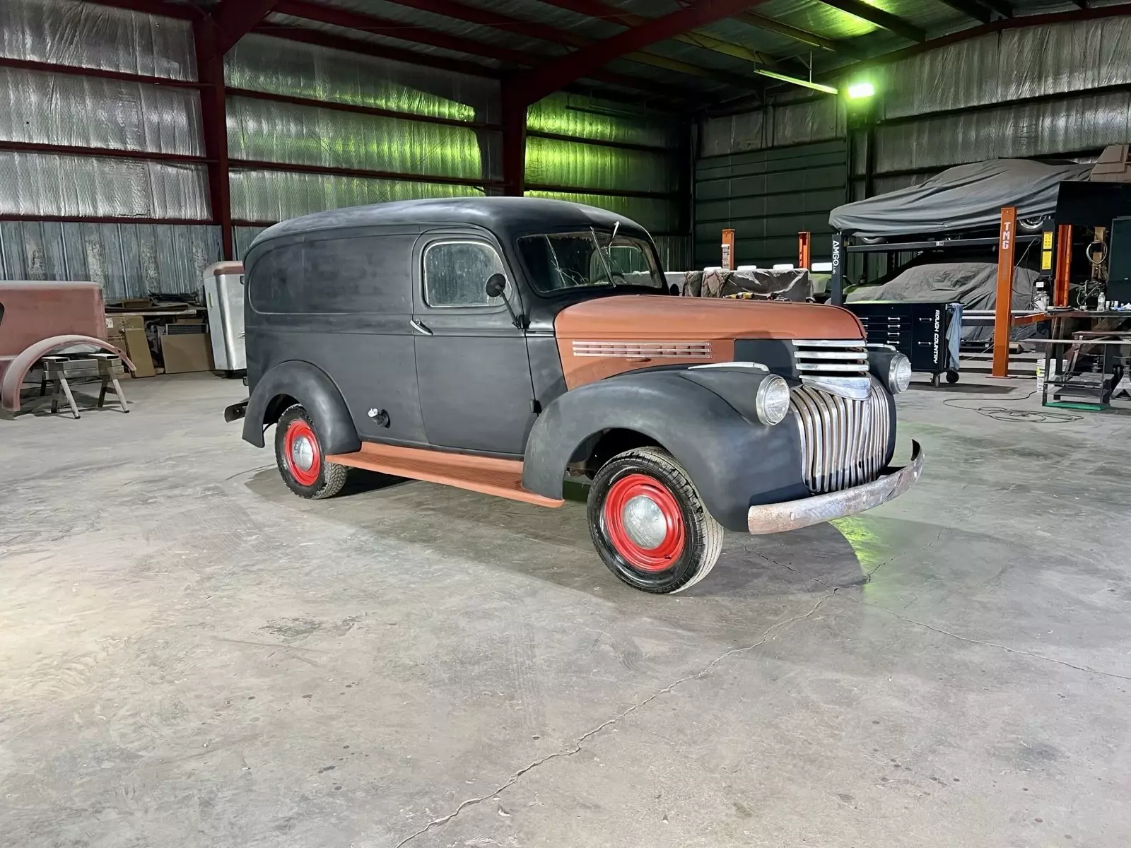 The 1941 Chevrolet Panel is a project vehicle that the owner has had for 1 year. This classic black truck needs work and is not regularly driven, making it a perfect candidate for a restoration project. This Chevrolet Panel offers a unique opportunity for a car enthusiast to bring new life to a vintage vehicle.