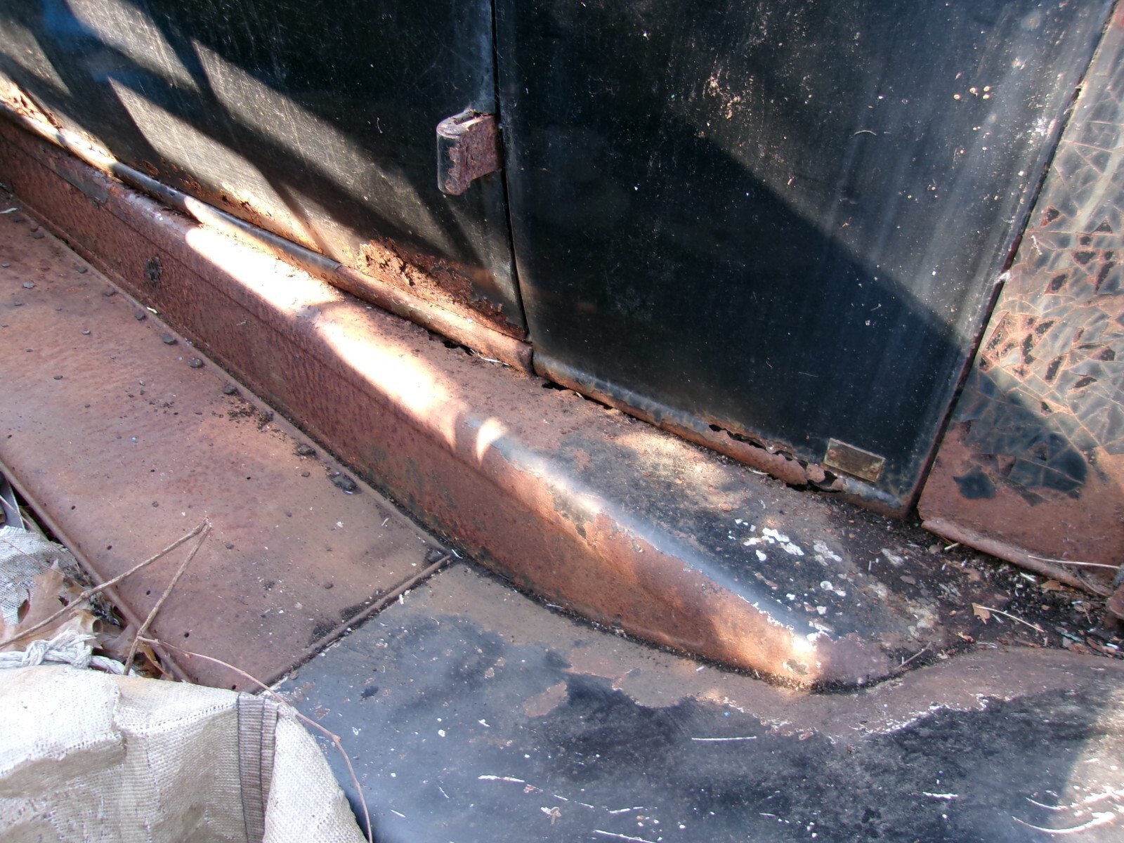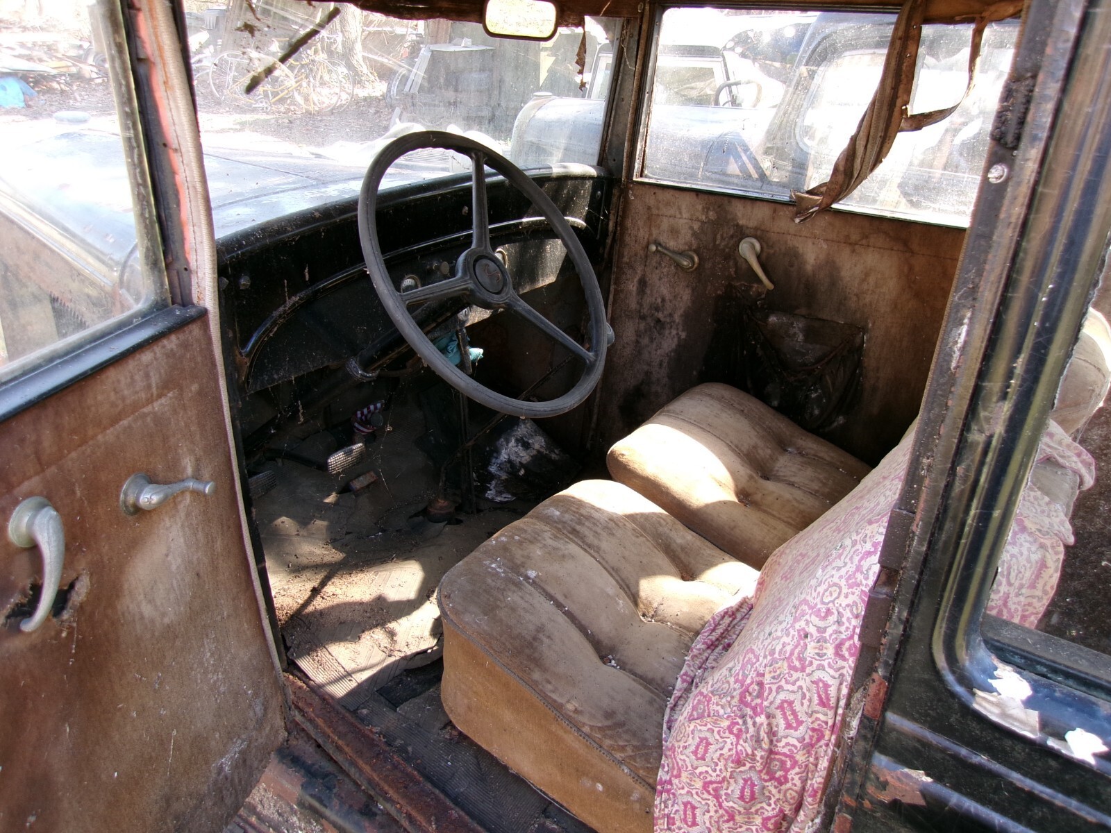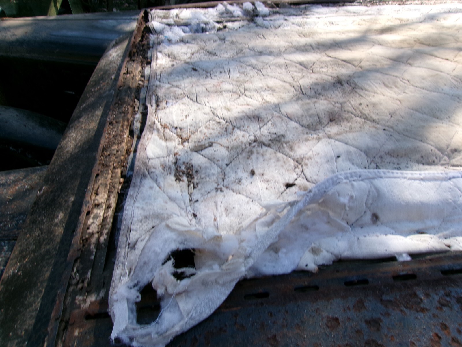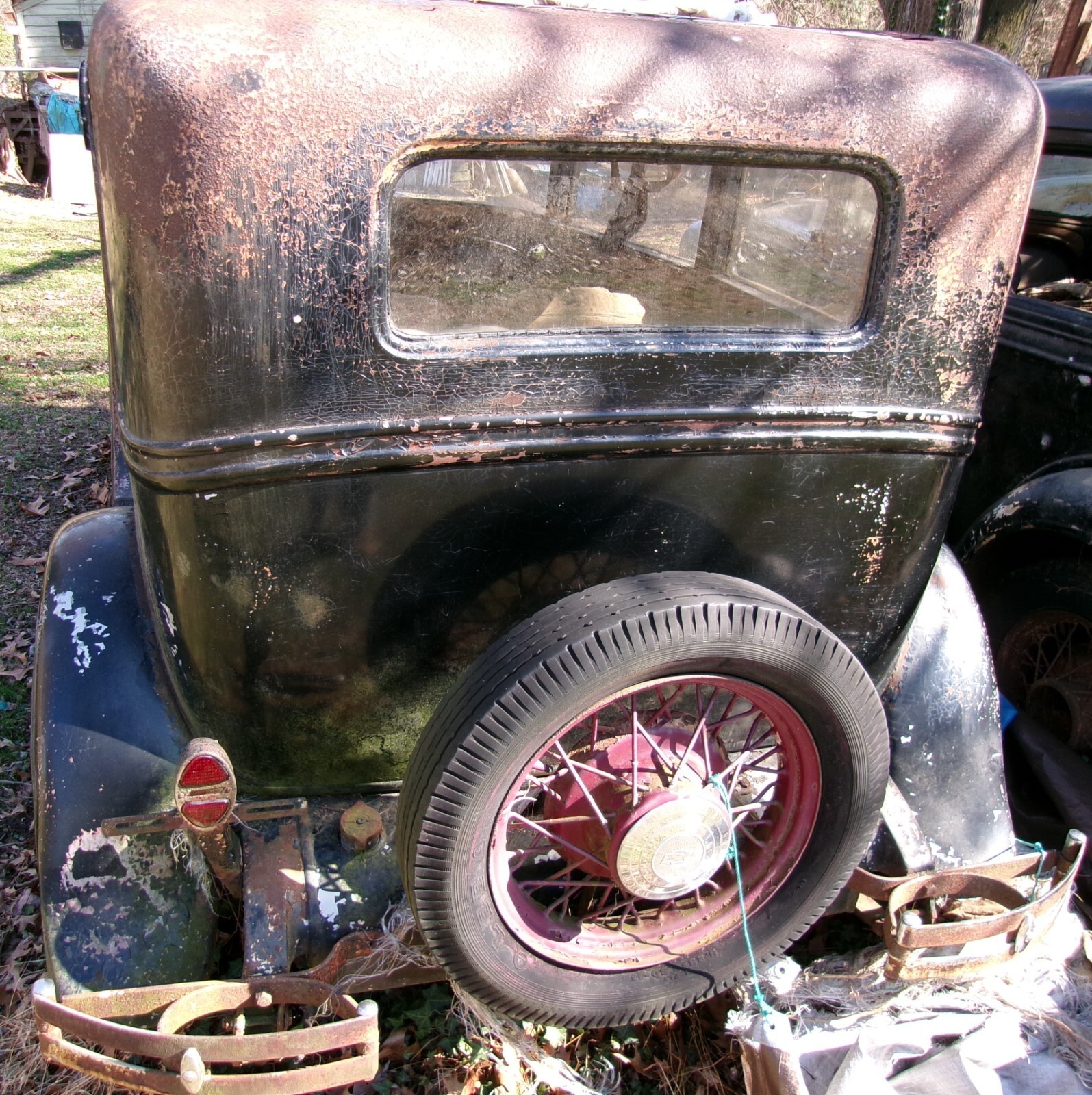 The roof is heavily pitted, and the rear section (above the rear window) is rusted through from the tarp that was on it. The hood is seized. Door bottoms, bottom of cowl, and the splash aprons/running boards are rusted through. Most, if not all, of the wood will have to be replaced.