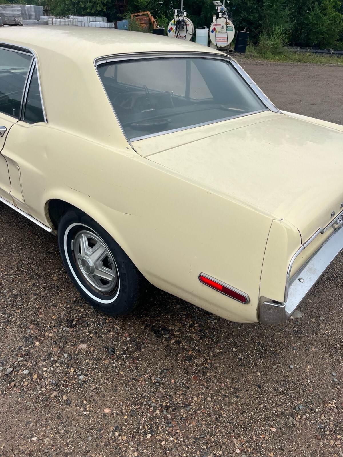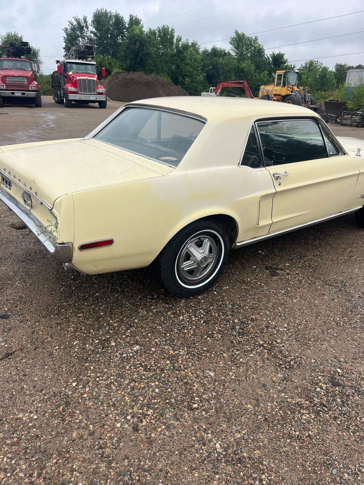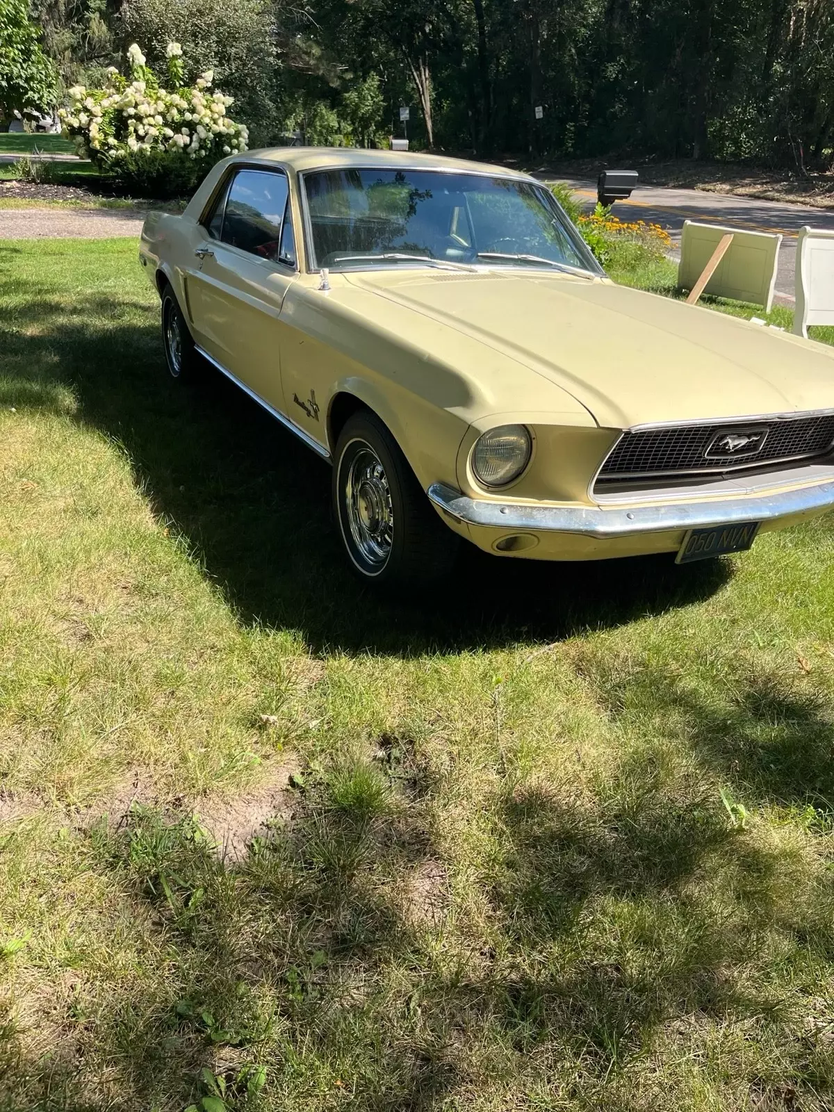 1968 Ford Mustang hardtop. C code car 302. 2 barrel automatic. The car does have power steering and that’s about it for options. It is pictured with two different sets of rims and tires. It will come with whichever one you would prefer. The ones with the hubcaps are new two years ago with very few miles on them the chrome GT rims are aftermarket the tires on nose do not appear to be very old either. Here’s the background of the car. I purchased it from what I believe to be the second owner he purchased it when he was 16 from a lady in California, where he lived. He he eventually moved to Minnesota. But the car was never driven in the winter. It’s in very nice original condition. I’m not sure what has been done with it throughout the years, but I do believe most of it is original parts. I haven’t driven it much. I believe the master cylinder is defectiv, when you use the brakes it seems to build pressure. As far as I’m aware, everything is original except for any of the normal wear items that have been replaced over the years. It looks like some paint work was done on a spot of a quarter. The car does have small dents, dings, scratches, and thin paint in spots. I believe it retains most of the original paint. It does run and drive. I have not put very many miles on it. I’m going to try to find some time and put a new Master cylinder on it to fix the brake issue but I have not had the time to do that yet, so it most likely will not be done. The original upper rear seat did have a tear in it so I did put a different one in there. The original one does come with the vehicle. The fuel gauge does not work Please take a look at the photos if there’s any other angles or photos that you would like, just let me know and I will get back to you as soon as I can.
