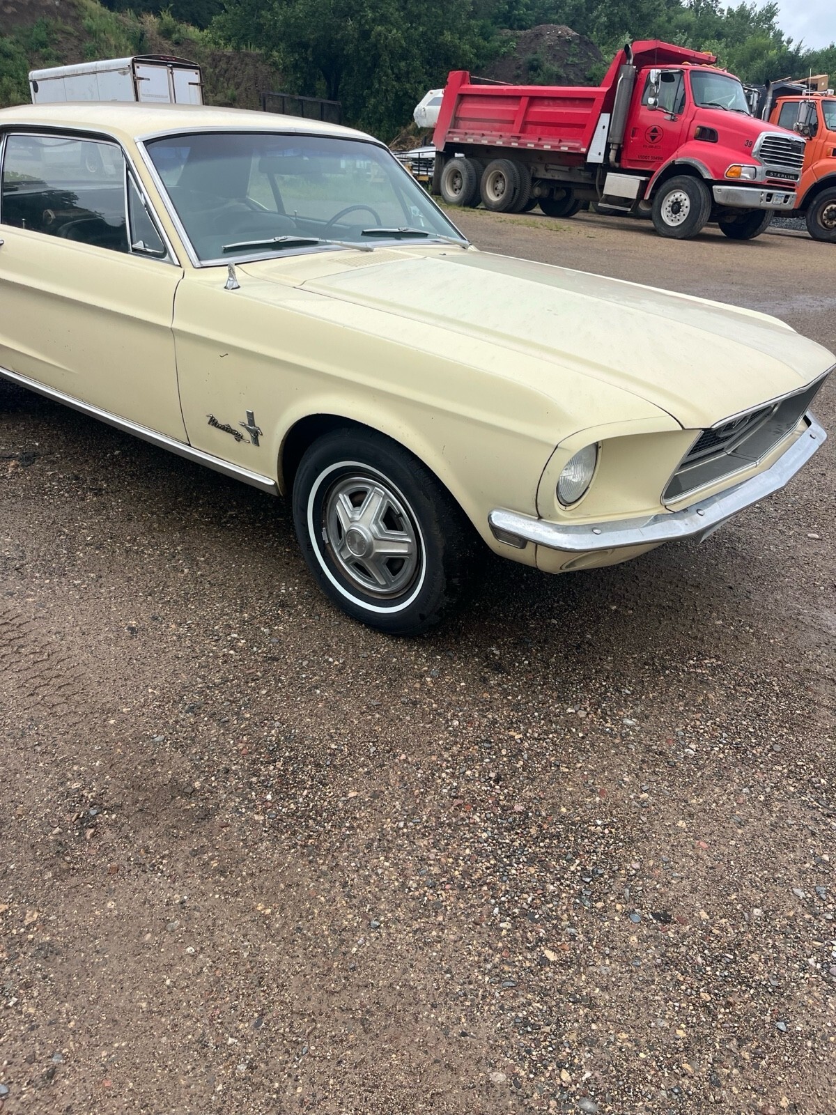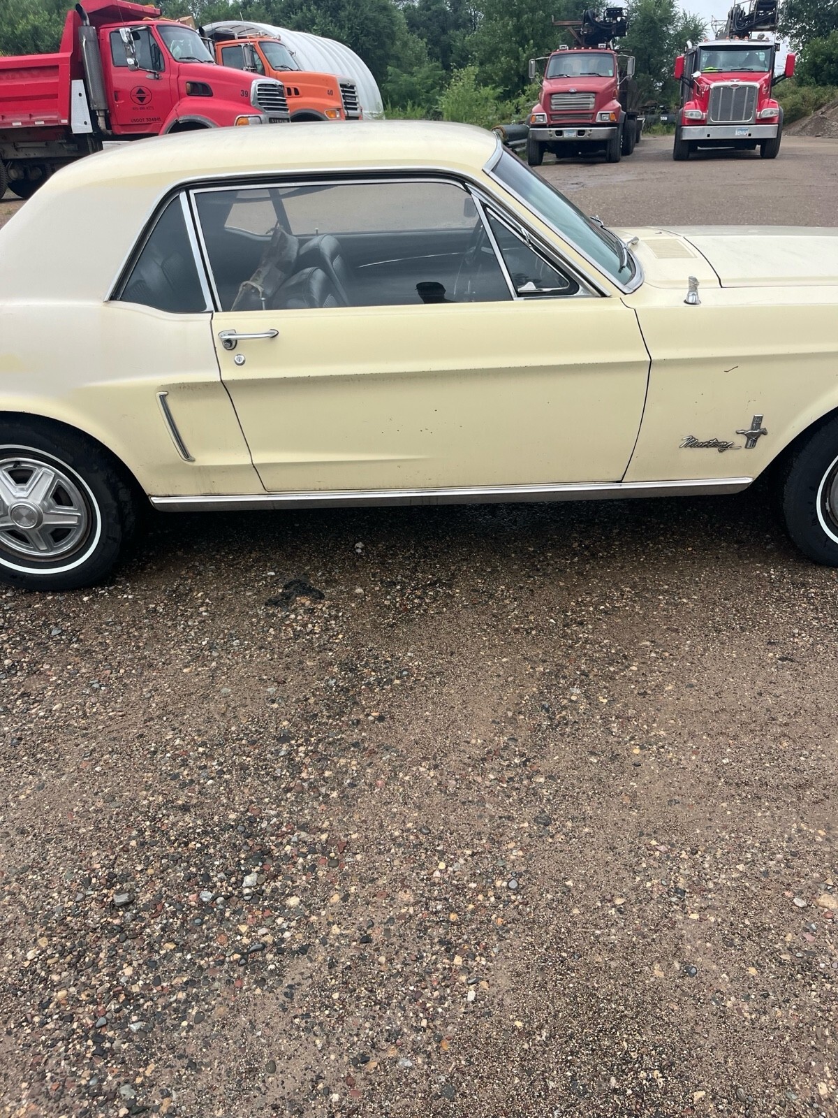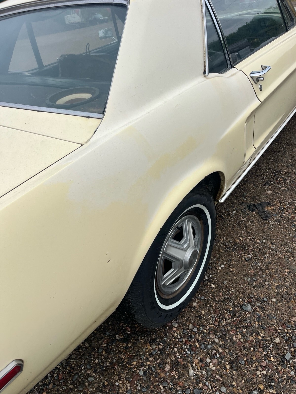 1968 Ford Mustang hardtop. C code car 302. 2 barrel automatic. The car does have power steering and that’s about it for options. It is pictured with two different sets of rims and tires. It will come with whichever one you would prefer. The ones with the hubcaps are new two years ago with very few miles on them the chrome GT rims are aftermarket the tires on nose do not appear to be very old either. Here’s the background of the car. I purchased it from what I believe to be the second owner he purchased it when he was 16 from a lady in California, where he lived. He he eventually moved to Minnesota. But the car was never driven in the winter. It’s in very nice original condition. I’m not sure what has been done with it throughout the years, but I do believe most of it is original parts. I haven’t driven it much. I believe the master cylinder is defectiv, when you use the brakes it seems to build pressure. As far as I’m aware, everything is original except for any of the normal wear items that have been replaced over the years. It looks like some paint work was done on a spot of a quarter. The car does have small dents, dings, scratches, and thin paint in spots. I believe it retains most of the original paint. It does run and drive. I have not put very many miles on it. I’m going to try to find some time and put a new Master cylinder on it to fix the brake issue but I have not had the time to do that yet, so it most likely will not be done. The original upper rear seat did have a tear in it so I did put a different one in there. The original one does come with the vehicle. The fuel gauge does not work Please take a look at the photos if there’s any other angles or photos that you would like, just let me know and I will get back to you as soon as I can.