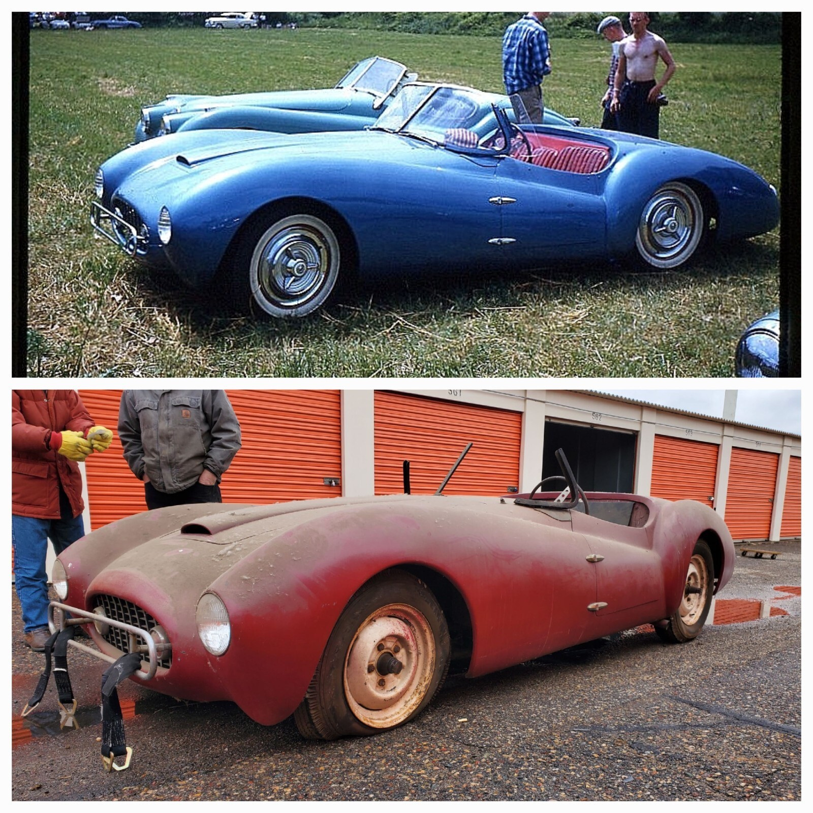 It was built by a team of engineering students out of Madison WI. The pic where the car is blue is from when it was raced at Road America briefly in the 1960's. They only put 960 miles on the car since it was built. Originally built with a manual tranny that was later swapped with an auto.