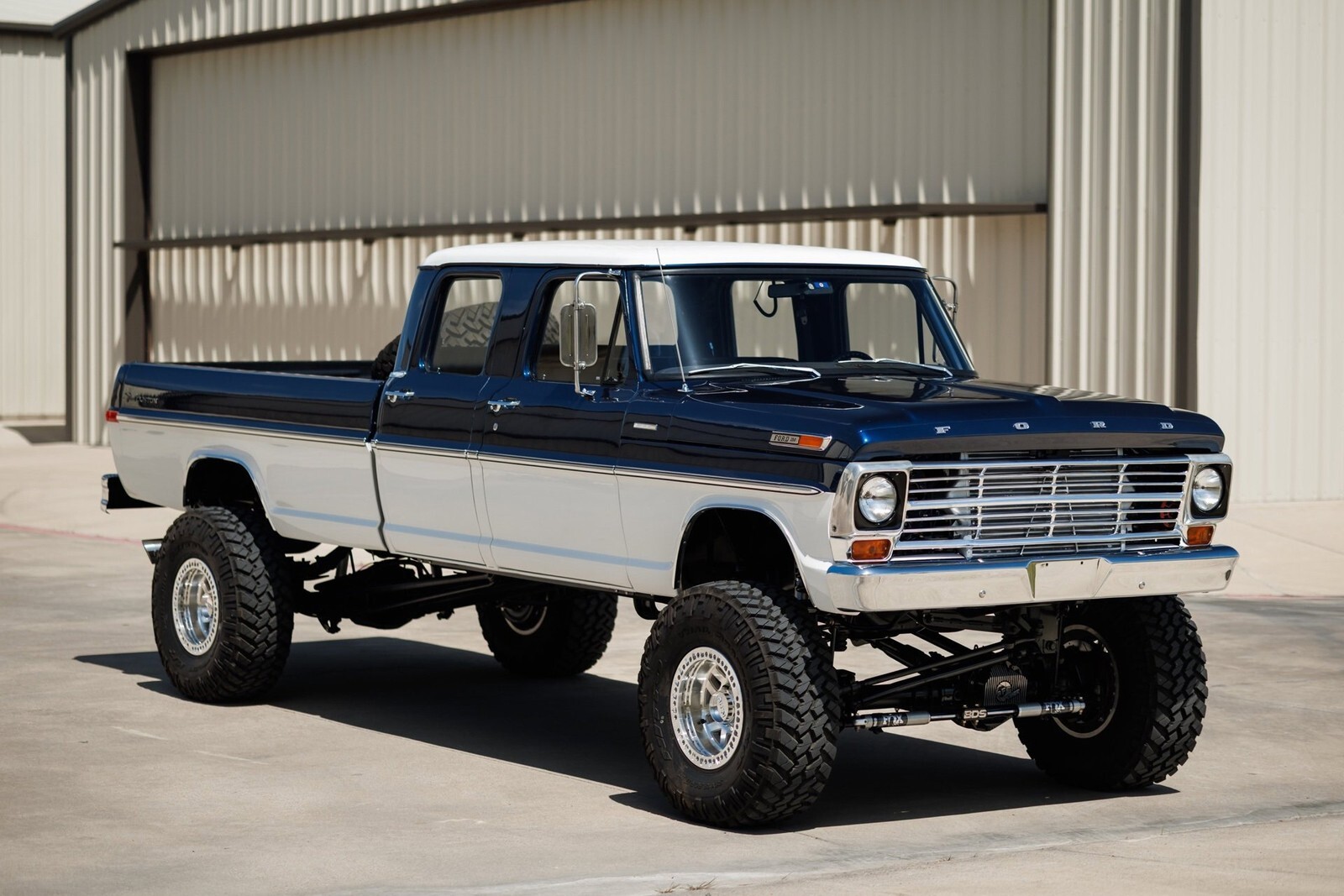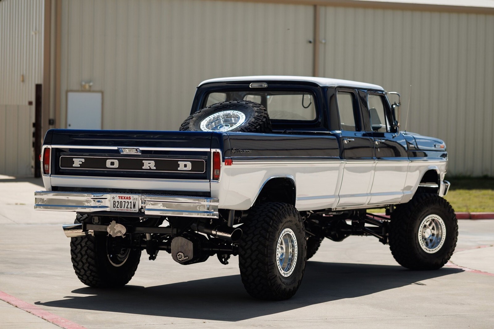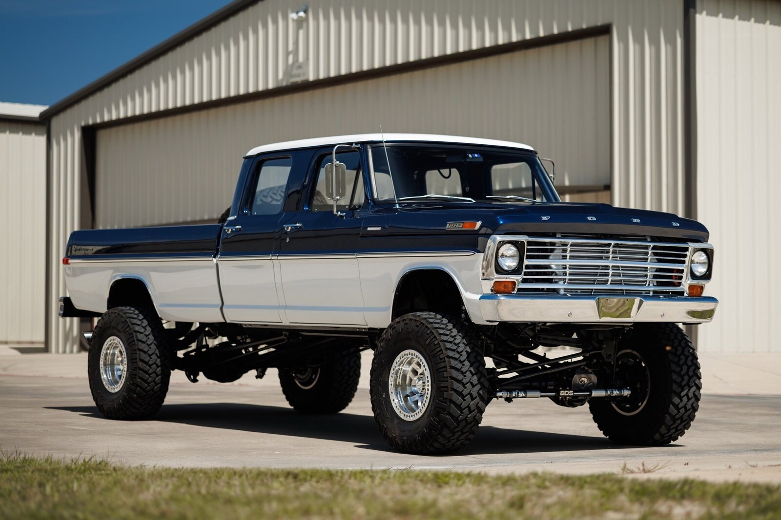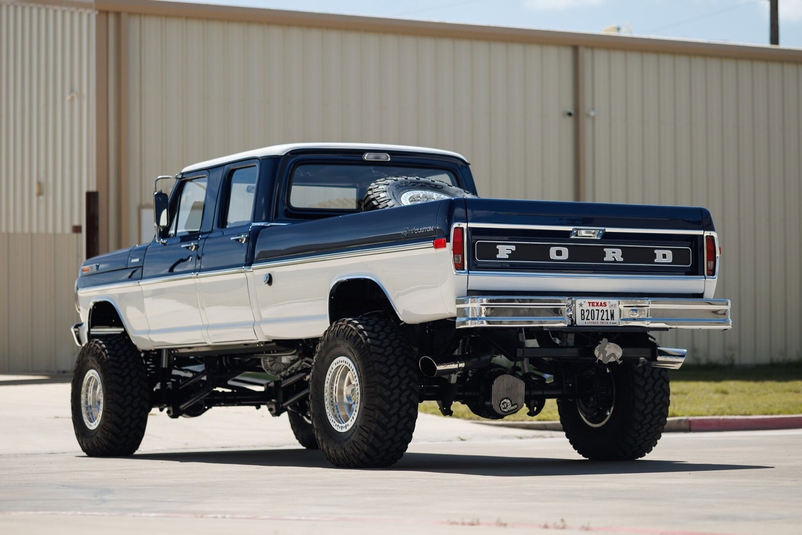 Earth Motorcars is excited to offer this amazing: 1972 Ford F-350 5.9 Cumming Diesel CUSTOM PICKUP. a 5.9-liter Cummins diesel engine mated to a 6-speed manual transmission. Frame-off restoration and rides on a 2005 Ford F-350 chassis with a 6-inch BDS suspension lift, Dakota Digital gauges, Vintage Air system and surround-sound system.This 1972 Ford F-350 custom pickup was born an original crew cab and was upgraded with a 2005 Ford F-350 chassis. This 3-year, frame-off restoration example is powered by a 5.9-liter 24-valve Cummins diesel engine turning a rebuilt 6-speed NV5600 manual transmission and rebuilt NP271 transfer case. It features a 6-inch BDS suspension lift featuring Fox Shox and new 20-inch KMC wheels wrapped in 37x12.5x20 Kanati Mud Hog tires. The cab is efficiently cooled and heated with a Vintage Air system and the custom-built Be Cool radiator keeps the engine at a comfortable operating temperature. It has an all-new, black ceramic-coated dual cat-back exhaust. The exterior is finished in base coat/clear coat Indigo Ink Blue and Wimbledon White with new brightwork and rare factory restored mirrors with AMP powered running boards. Nearly every part and piece of this truck has been replaced or restored. The interior seats are trimmed in custom plaid interior with black leather and complementing accents on the headliner and door panels. The complete surround sound comes from Focal, Rockford Fosgate, Clarion and and Kenwood components. Sound-deadening has been applied throughout the cab. It has a new Painless wiring kit and Dakota Digital gauges, along with new glass throughout and new weatherstripping and seals. Tens of thousands in parts receipts come included with the sale. One of a kind build.All of our classic cars go through our rigorous inspection and items that need repair get fixed unlike cars bought at auctions, So rest assured that you are getting a quality classic car! All classics are sold Miles Exempt regardless of what the odometer shows. This vehicle may be eligible for our EXTENDED WARRANTY that covers a wide variety of components (certain exclusions apply).....Please ask your sales representative for details. Welcome to Dallas Fort Worth's Premier Lotus, Luxury, Exotic and Classic Cars Dealership. We specialize in offering the Finest Vehicles, Providing Outstanding Customer Service, Obtaining the Best Financing Options and Stocking a Large Selection of Luxury Vehicles, Exotics, Classic Cars and More! See for Yourself what Thousands of Customers have Discovered over the Years and Make your Next Purchase from Earth MotorCars! Our Goal is to Make you a Customer for Life! Learn more about us by calling 214-483-9040 or via e-mail at . Visit us on our Website at