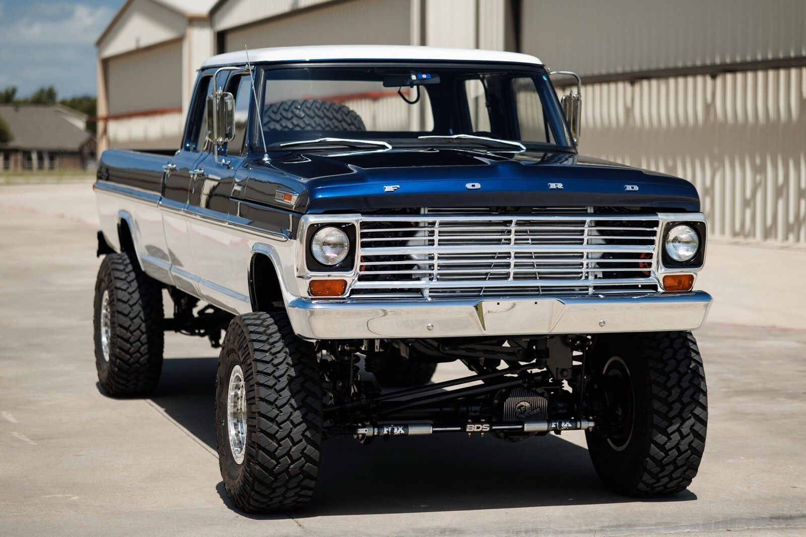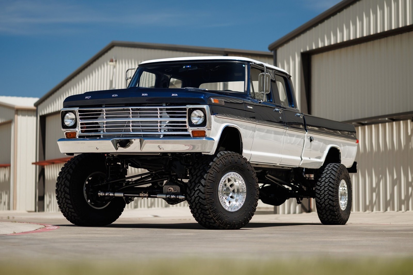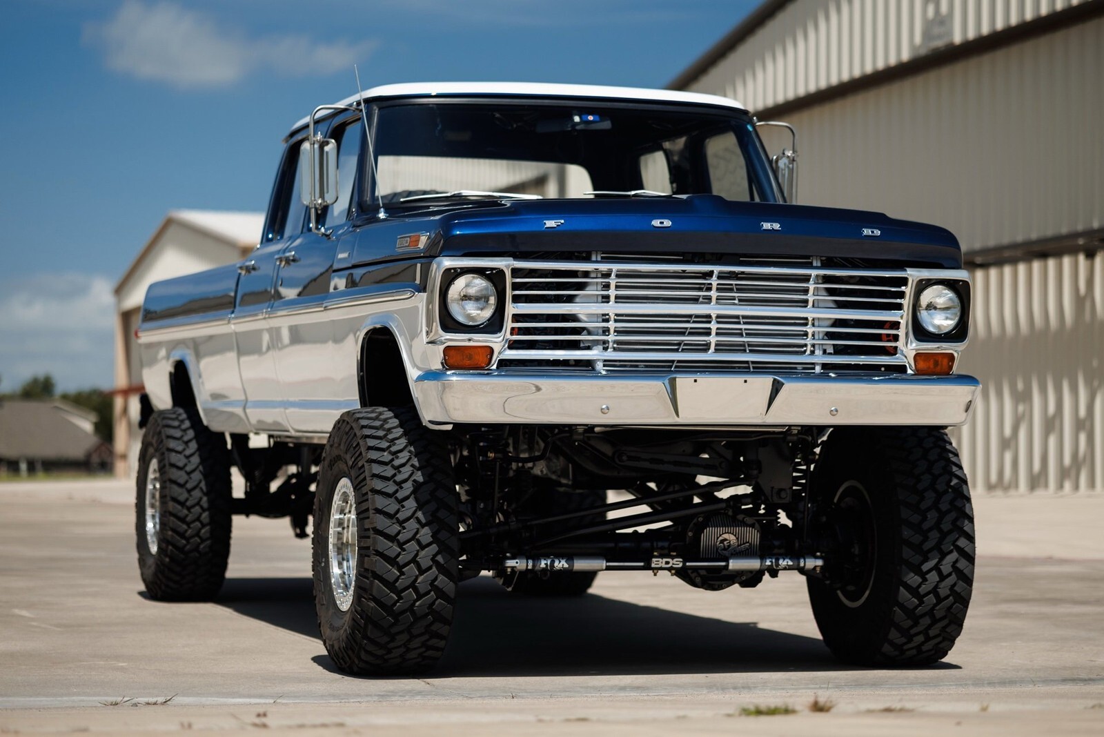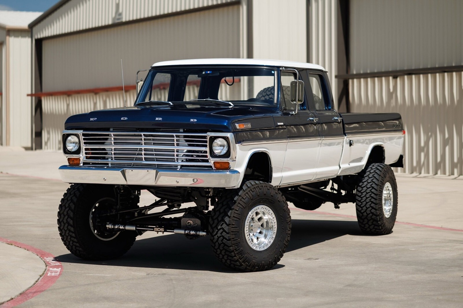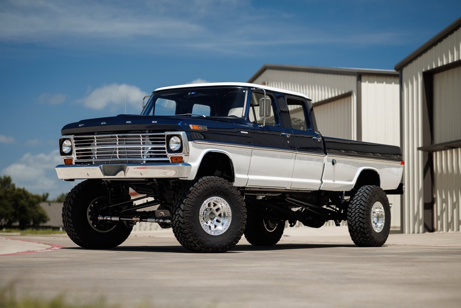 Earth Motorcars is excited to offer this amazing: 1972 Ford F-350 5.9 Cumming Diesel CUSTOM PICKUP. a 5.9-liter Cummins diesel engine mated to a 6-speed manual transmission. Frame-off restoration and rides on a 2005 Ford F-350 chassis with a 6-inch BDS suspension lift, Dakota Digital gauges, Vintage Air system and surround-sound system.This 1972 Ford F-350 custom pickup was born an original crew cab and was upgraded with a 2005 Ford F-350 chassis. This 3-year, frame-off restoration example is powered by a 5.9-liter 24-valve Cummins diesel engine turning a rebuilt 6-speed NV5600 manual transmission and rebuilt NP271 transfer case. It features a 6-inch BDS suspension lift featuring Fox Shox and new 20-inch KMC wheels wrapped in 37x12.5x20 Kanati Mud Hog tires. The cab is efficiently cooled and heated with a Vintage Air system and the custom-built Be Cool radiator keeps the engine at a comfortable operating temperature. It has an all-new, black ceramic-coated dual cat-back exhaust. The exterior is finished in base coat/clear coat Indigo Ink Blue and Wimbledon White with new brightwork and rare factory restored mirrors with AMP powered running boards. Nearly every part and piece of this truck has been replaced or restored. The interior seats are trimmed in custom plaid interior with black leather and complementing accents on the headliner and door panels. The complete surround sound comes from Focal, Rockford Fosgate, Clarion and and Kenwood components. Sound-deadening has been applied throughout the cab. It has a new Painless wiring kit and Dakota Digital gauges, along with new glass throughout and new weatherstripping and seals. Tens of thousands in parts receipts come included with the sale. One of a kind build.All of our classic cars go through our rigorous inspection and items that need repair get fixed unlike cars bought at auctions, So rest assured that you are getting a quality classic car! All classics are sold Miles Exempt regardless of what the odometer shows. This vehicle may be eligible for our EXTENDED WARRANTY that covers a wide variety of components (certain exclusions apply).....Please ask your sales representative for details. Welcome to Dallas Fort Worth's Premier Lotus, Luxury, Exotic and Classic Cars Dealership. We specialize in offering the Finest Vehicles, Providing Outstanding Customer Service, Obtaining the Best Financing Options and Stocking a Large Selection of Luxury Vehicles, Exotics, Classic Cars and More! See for Yourself what Thousands of Customers have Discovered over the Years and Make your Next Purchase from Earth MotorCars! Our Goal is to Make you a Customer for Life! Learn more about us by calling 214-483-9040 or via e-mail at . Visit us on our Website at