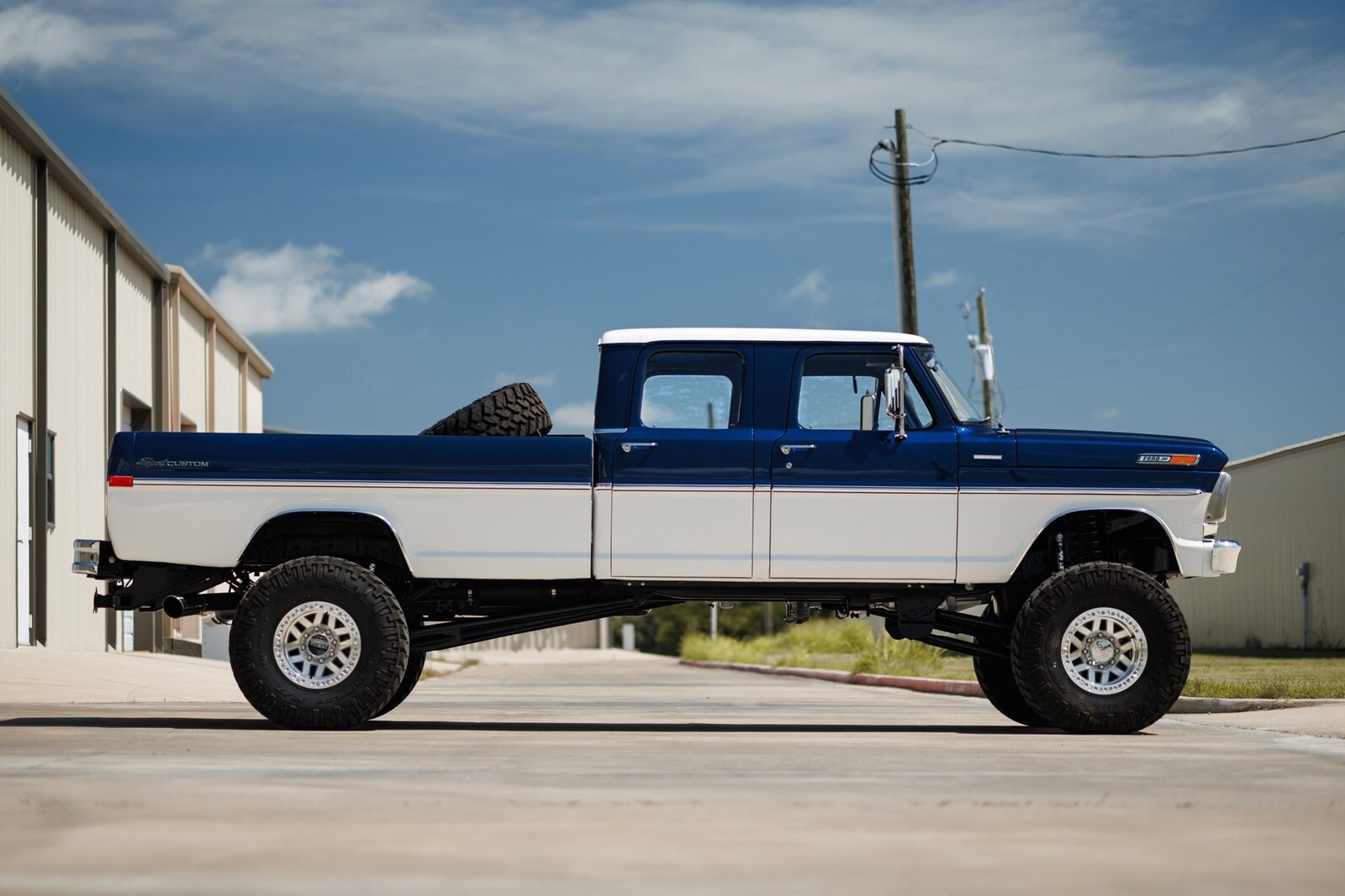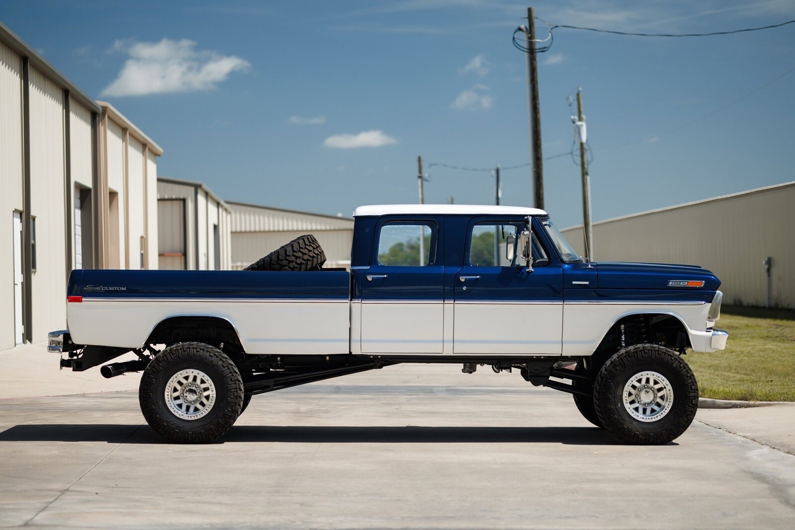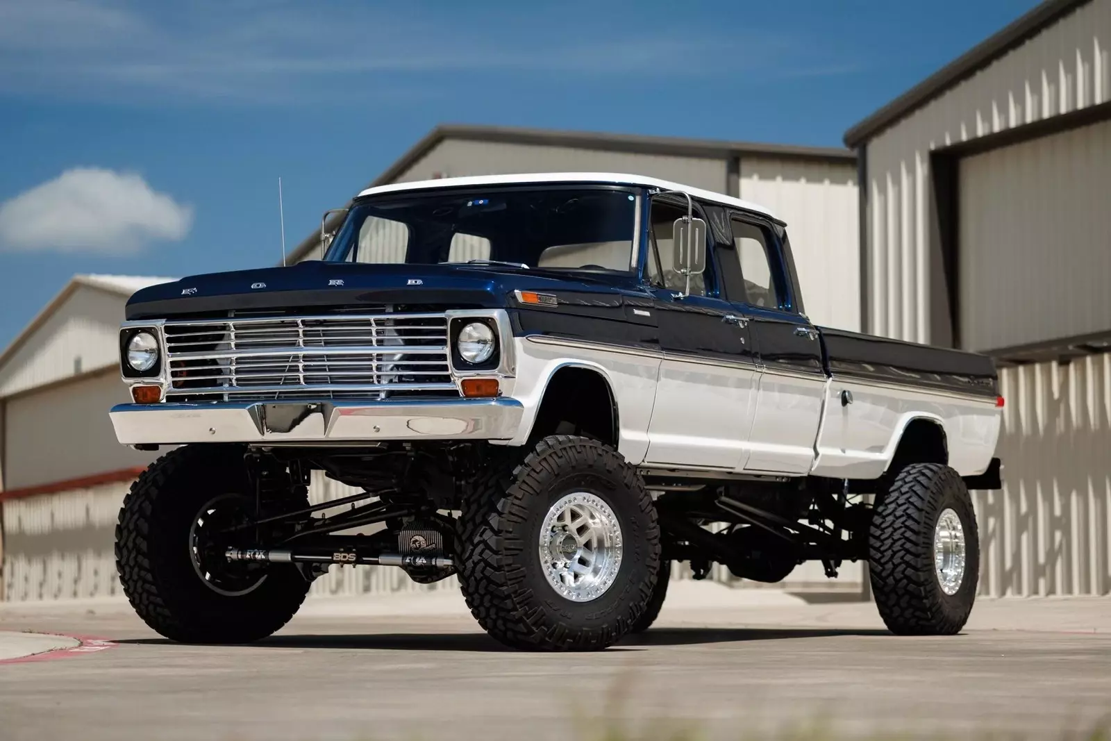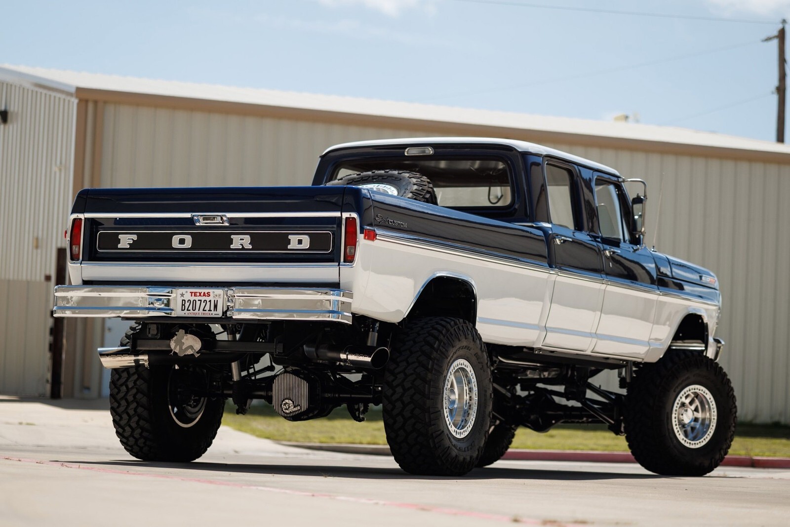 Earth Motorcars is excited to offer this amazing: 1972 Ford F-350 5.9 Cumming Diesel CUSTOM PICKUP. a 5.9-liter Cummins diesel engine mated to a 6-speed manual transmission. Frame-off restoration and rides on a 2005 Ford F-350 chassis with a 6-inch BDS suspension lift, Dakota Digital gauges, Vintage Air system and surround-sound system.This 1972 Ford F-350 custom pickup was born an original crew cab and was upgraded with a 2005 Ford F-350 chassis. This 3-year, frame-off restoration example is powered by a 5.9-liter 24-valve Cummins diesel engine turning a rebuilt 6-speed NV5600 manual transmission and rebuilt NP271 transfer case. It features a 6-inch BDS suspension lift featuring Fox Shox and new 20-inch KMC wheels wrapped in 37x12.5x20 Kanati Mud Hog tires. The cab is efficiently cooled and heated with a Vintage Air system and the custom-built Be Cool radiator keeps the engine at a comfortable operating temperature. It has an all-new, black ceramic-coated dual cat-back exhaust. The exterior is finished in base coat/clear coat Indigo Ink Blue and Wimbledon White with new brightwork and rare factory restored mirrors with AMP powered running boards. Nearly every part and piece of this truck has been replaced or restored. The interior seats are trimmed in custom plaid interior with black leather and complementing accents on the headliner and door panels. The complete surround sound comes from Focal, Rockford Fosgate, Clarion and and Kenwood components. Sound-deadening has been applied throughout the cab. It has a new Painless wiring kit and Dakota Digital gauges, along with new glass throughout and new weatherstripping and seals. Tens of thousands in parts receipts come included with the sale. One of a kind build.All of our classic cars go through our rigorous inspection and items that need repair get fixed unlike cars bought at auctions, So rest assured that you are getting a quality classic car! All classics are sold Miles Exempt regardless of what the odometer shows. This vehicle may be eligible for our EXTENDED WARRANTY that covers a wide variety of components (certain exclusions apply).....Please ask your sales representative for details. Welcome to Dallas Fort Worth's Premier Lotus, Luxury, Exotic and Classic Cars Dealership. We specialize in offering the Finest Vehicles, Providing Outstanding Customer Service, Obtaining the Best Financing Options and Stocking a Large Selection of Luxury Vehicles, Exotics, Classic Cars and More! See for Yourself what Thousands of Customers have Discovered over the Years and Make your Next Purchase from Earth MotorCars! Our Goal is to Make you a Customer for Life! Learn more about us by calling 214-483-9040 or via e-mail at . Visit us on our Website at