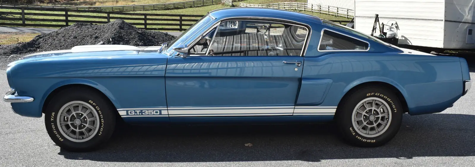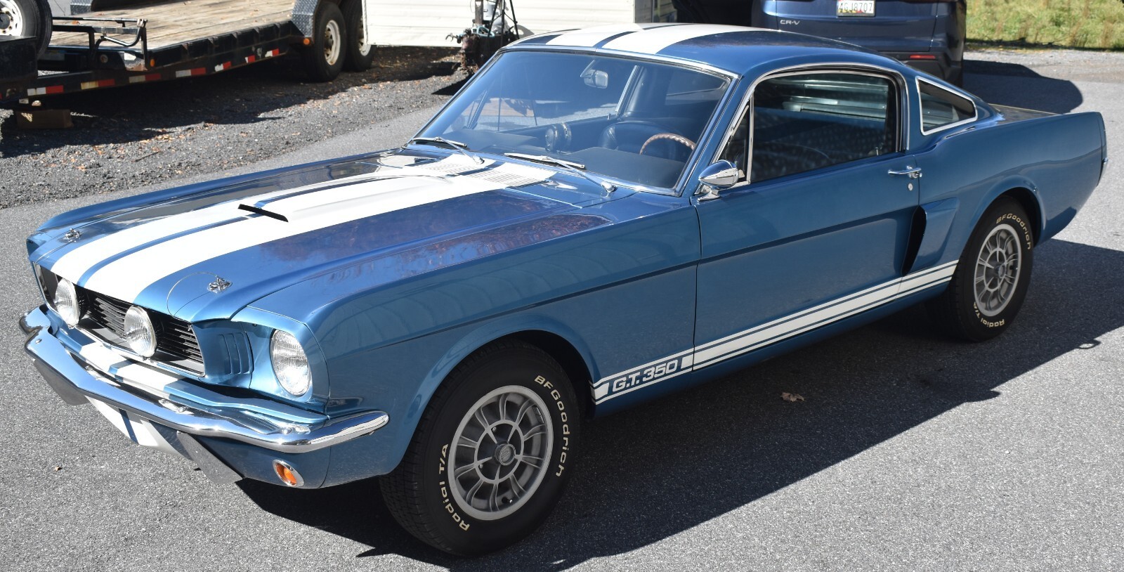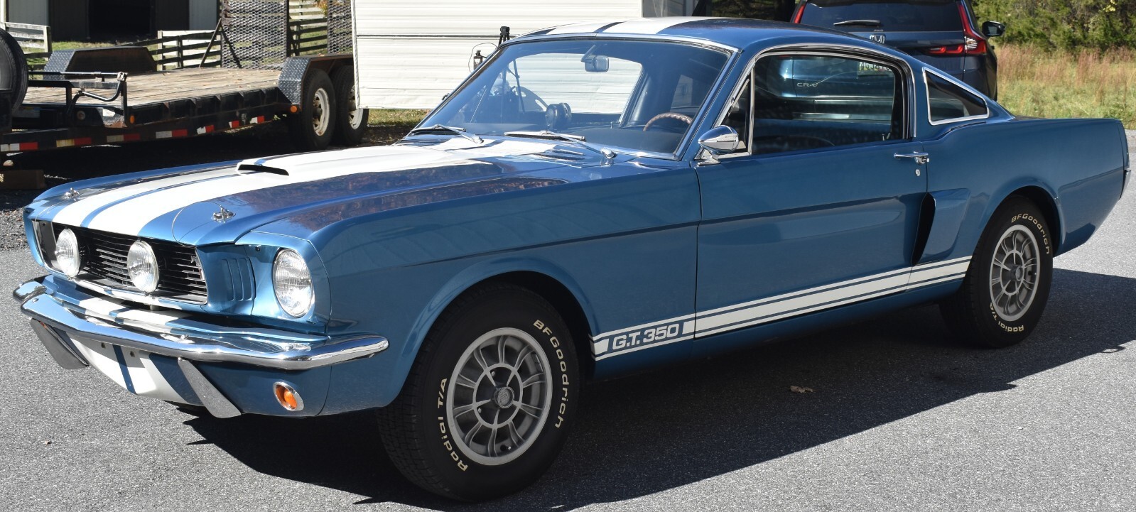 1966 Ford Shelby Mustang GT 350 (SFM6S1399) in Guardsman blue with white stripes, powered by the numbers matching 289 cu. in. Ford Windsor putting out 306 horsepower and backed by a Toploader 4-speed. This Shelby has been certified by SAAC (Shelby American Automobile Club) and includes all documentation.