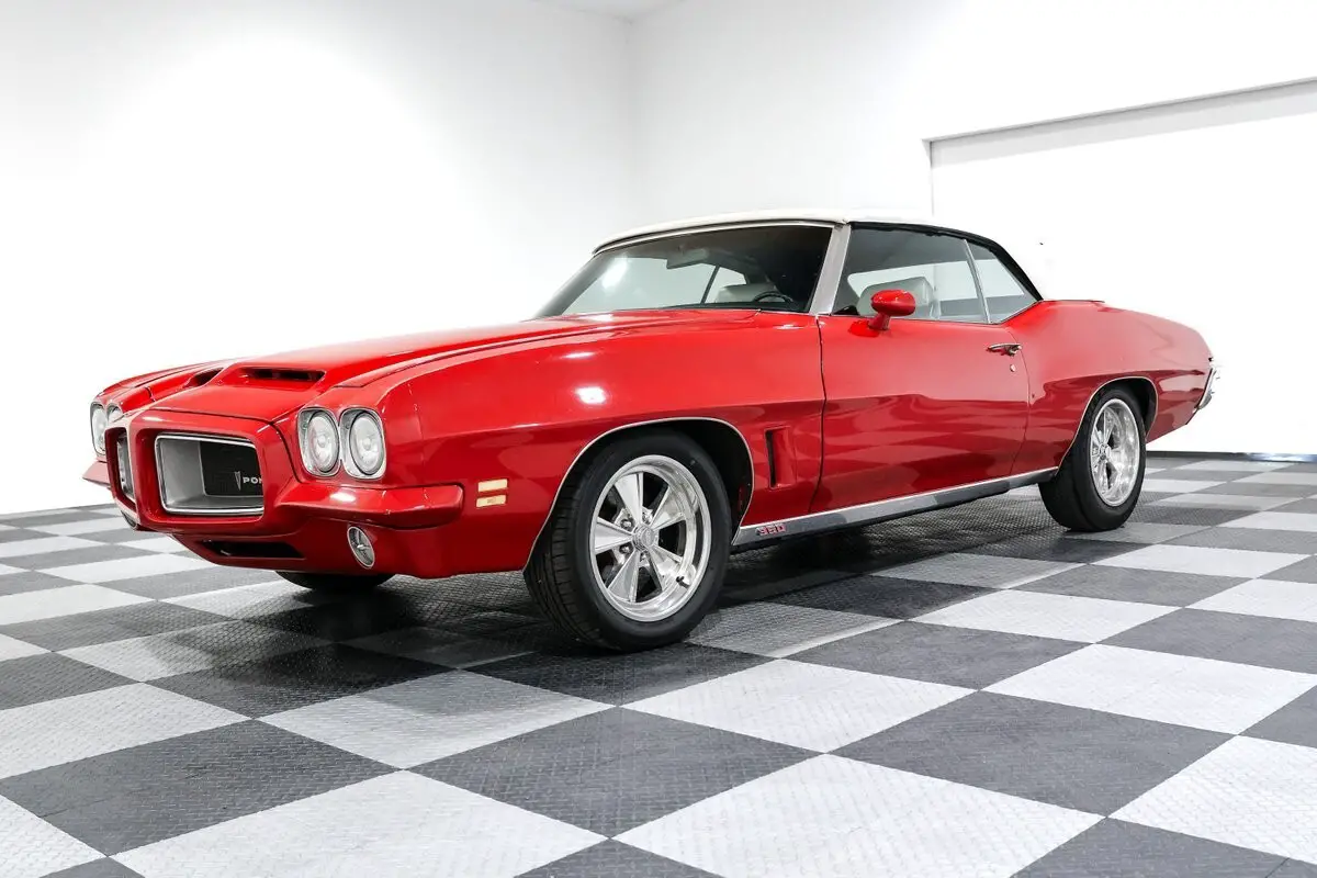 When Pontiac built the 1972 LeMans, it was the muscle car for those who wanted style, attitude, and everyday drivability. This red-on-white convertible captures the spirit of Detroit's golden age with a look that's pure street legend. Its aggressive stance, highlighted by 17-inch Cragar wheels and halo headlights, sets the tone before you even turn the key.
