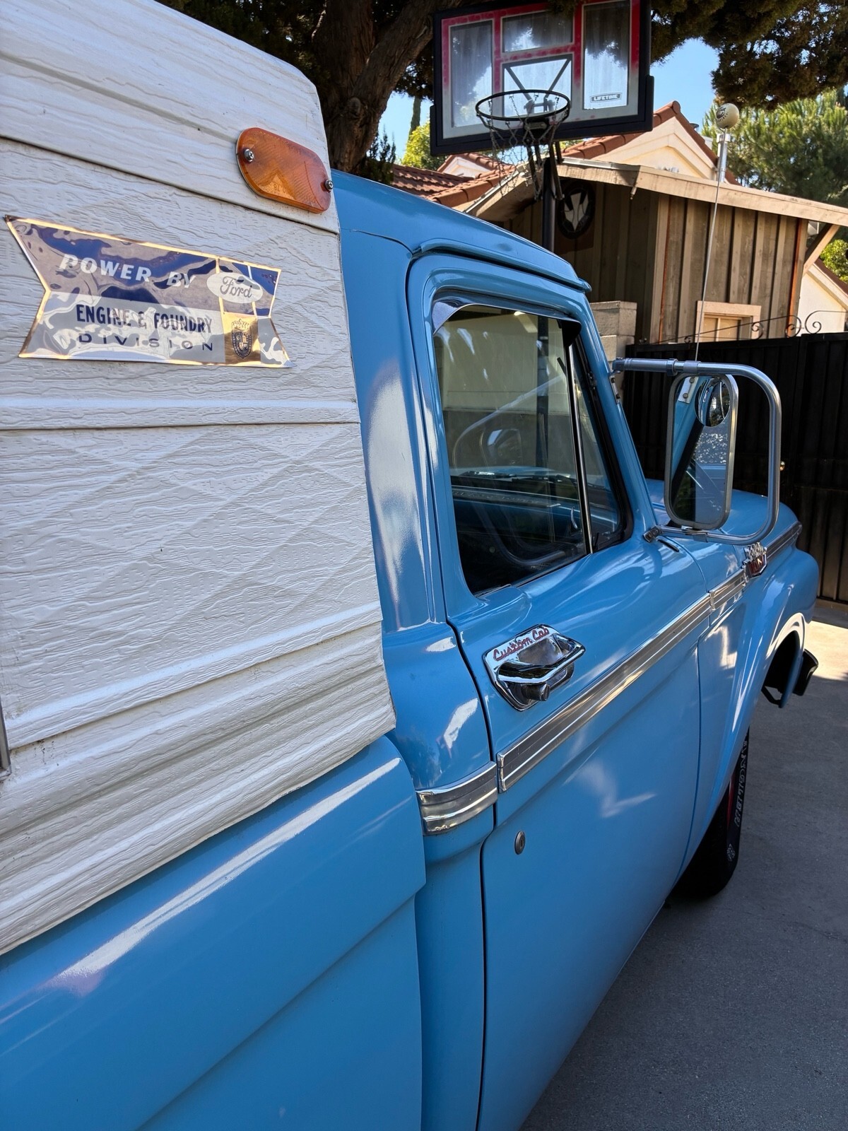 I have had this truck since 1995. The 292Y block was just rebuilt and has 1000 miles on it. Also, the Ford cruise automatic transmission has been rebuilt along with the Carburetor all original. She did get a paint job back in 2019 and I picked an original color of the Caribbean blue. She’s running fine, but I just don’t get out there as much as I used to to drive it. The truck is a short bed with a vintage camper top, which is extremely hard to find you will also receive extra parts like another set of hubcaps grill, light lenses, and such including a swamp cooler to help cool it down on the summer.