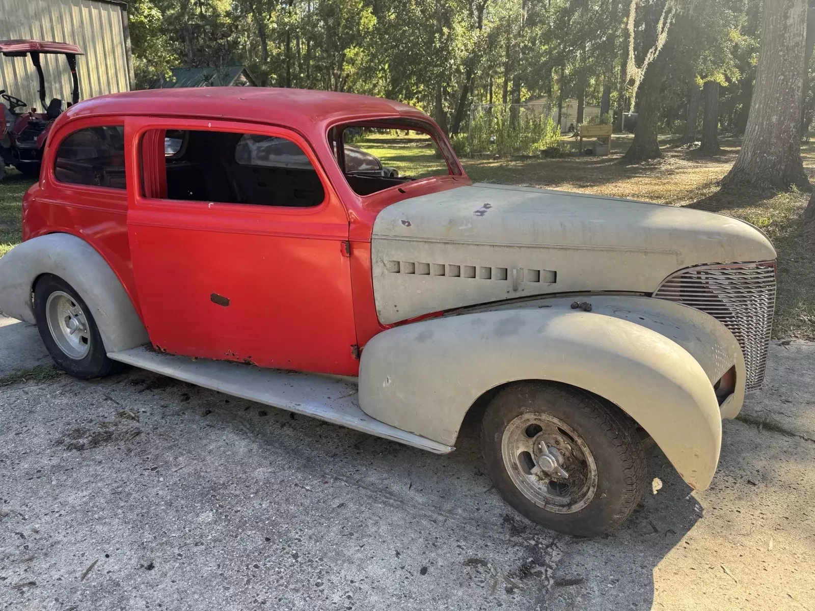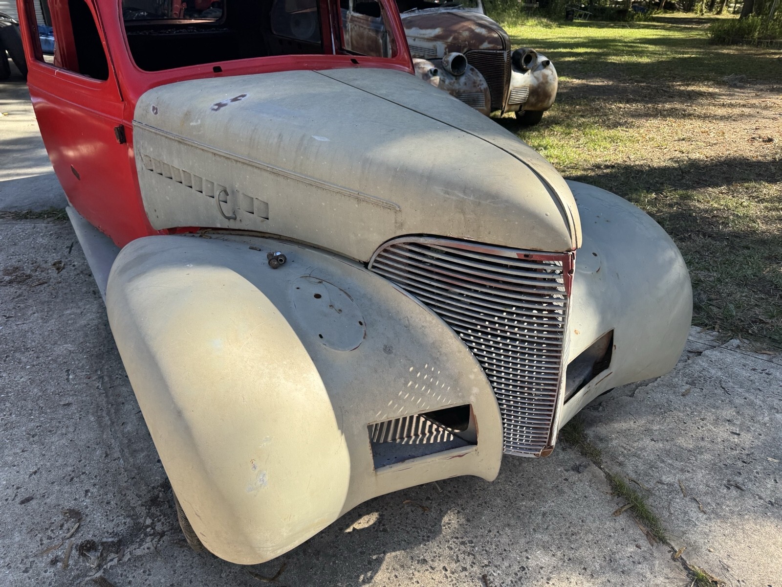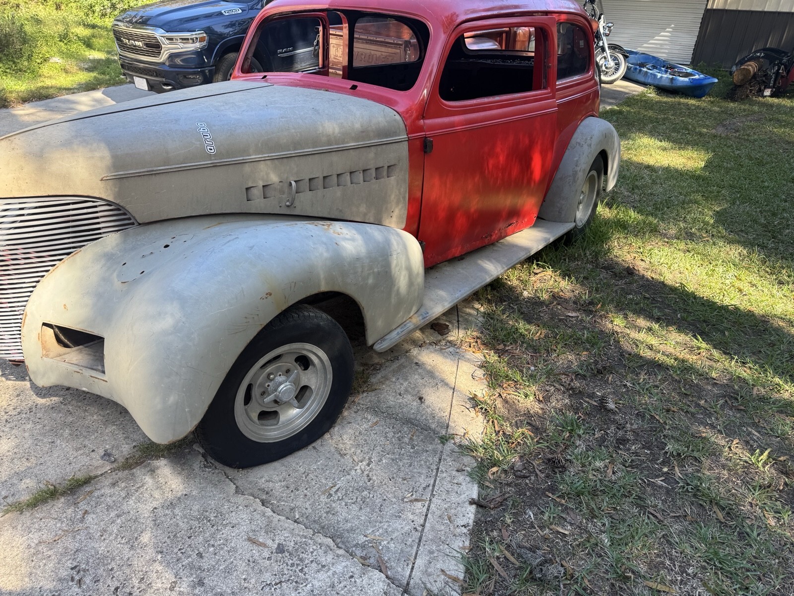 1939 Chevrolet Master Deluxe. Chevelle frame. Disc brakes. Rack and pinion was wrong type so it will need a new one. Rear fenders and running boards are fiberglass. Main body has tons of rust. Was torn down to do rust repair and life happened. Had a sb and automatic.