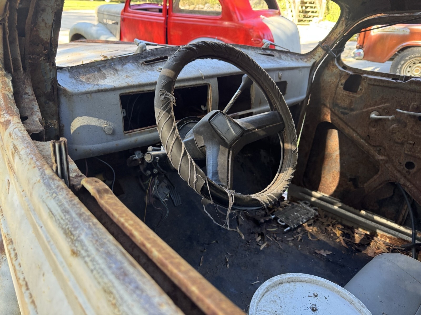 1939 Chevy Master 85. Top professionally chopped by body shop in Tampa. Suicide doors installed (needs latches) mustang II front suspension with disc brakes and rack and pinion steering. Coil over rear suspension. Currently has a six cyl from mid 70s and an automatic. Was enough for my kids to drive around yard but would need work to make road worthy. Great start for rat rod. Clean Florida title.