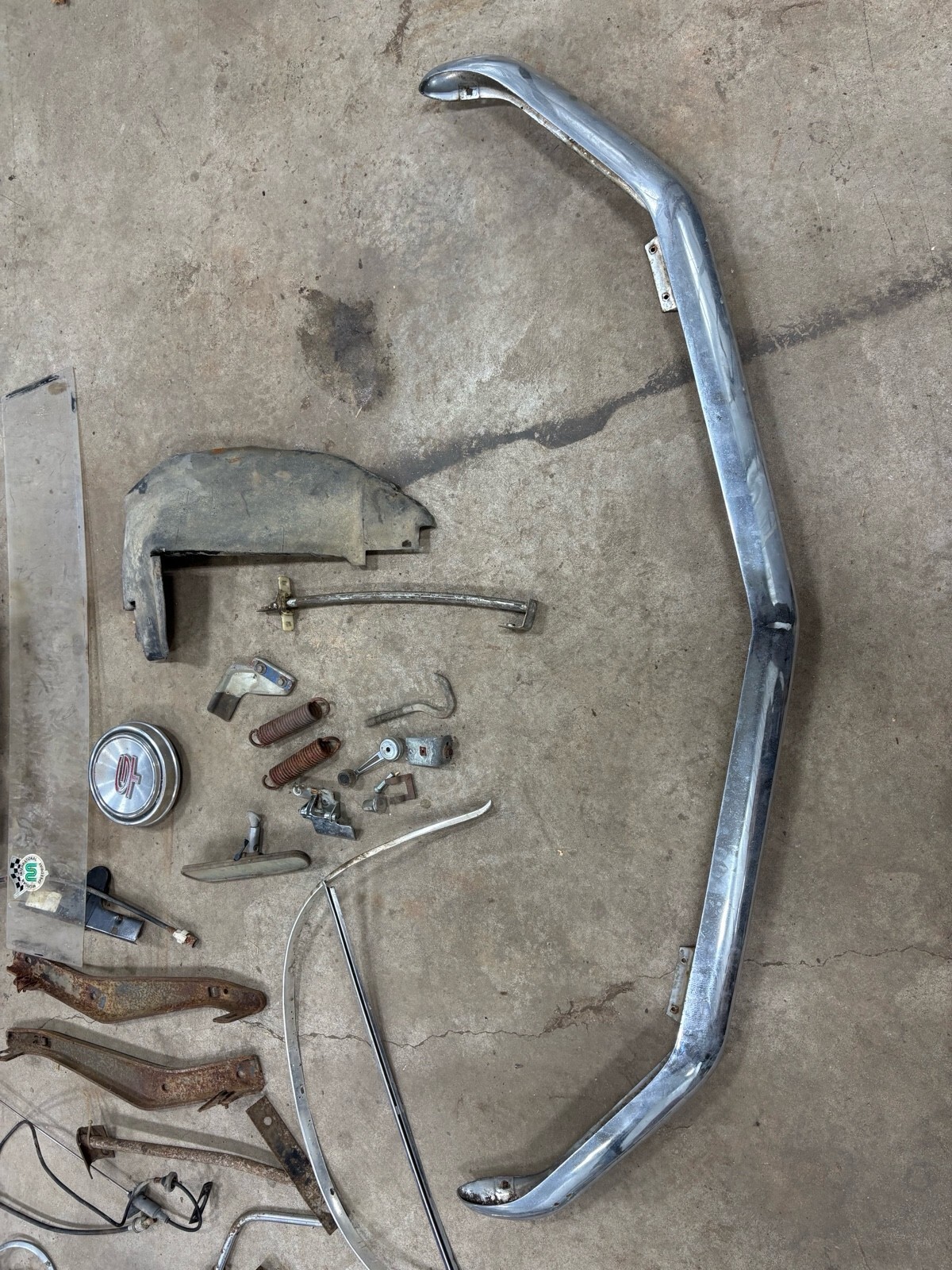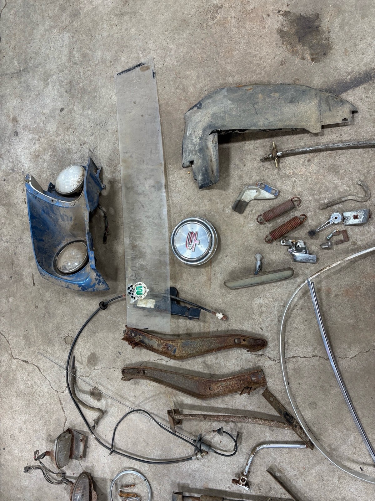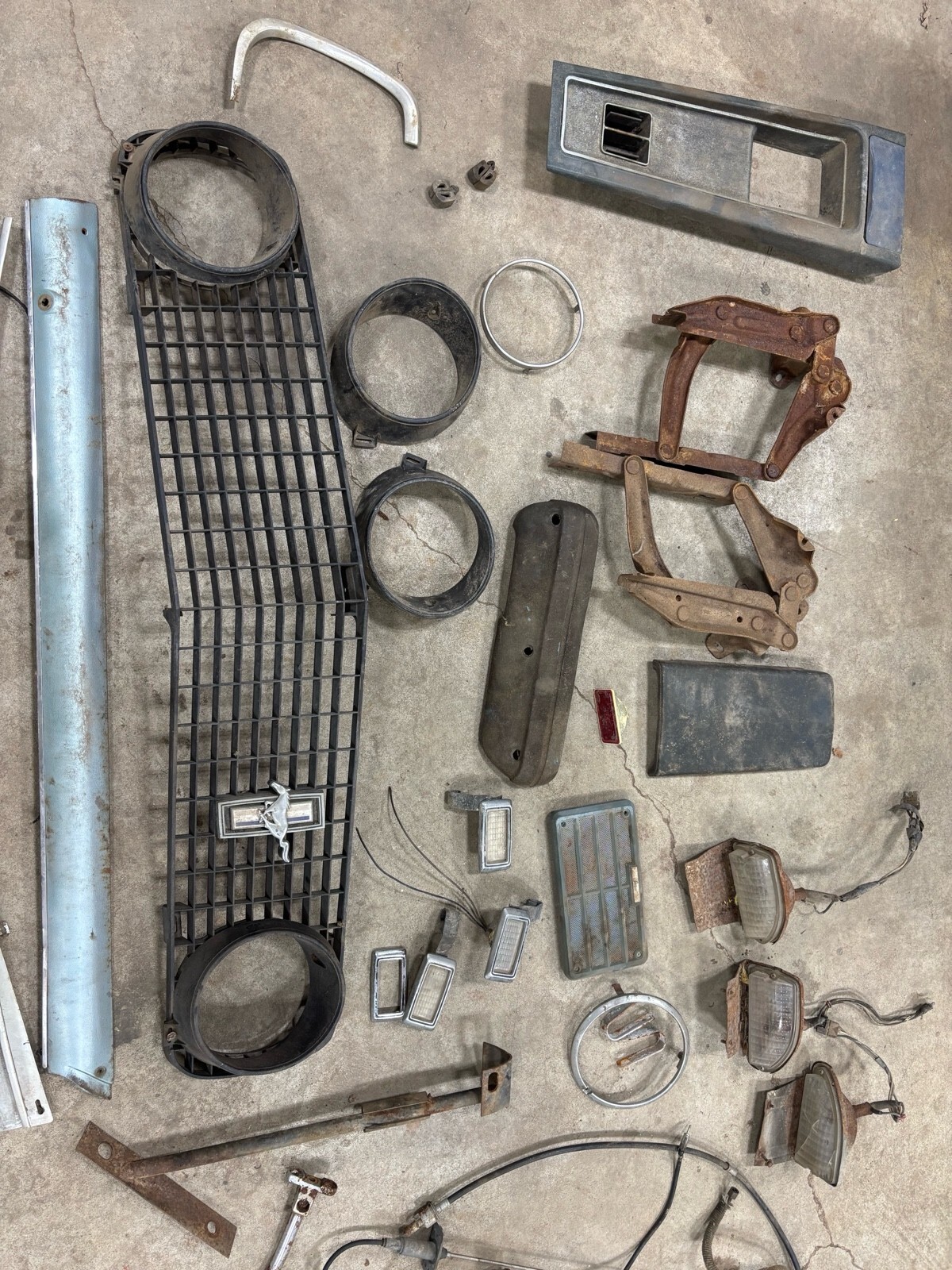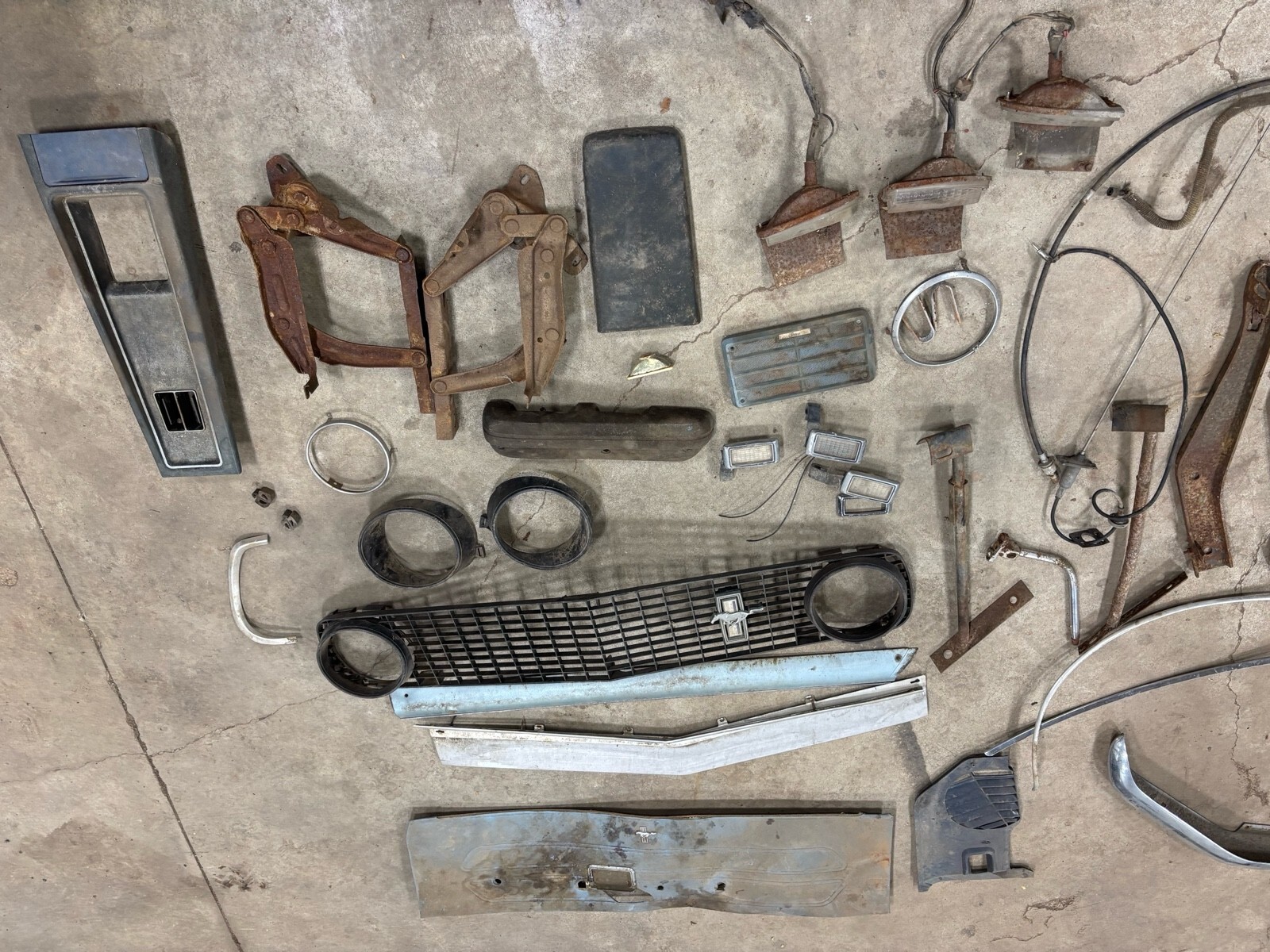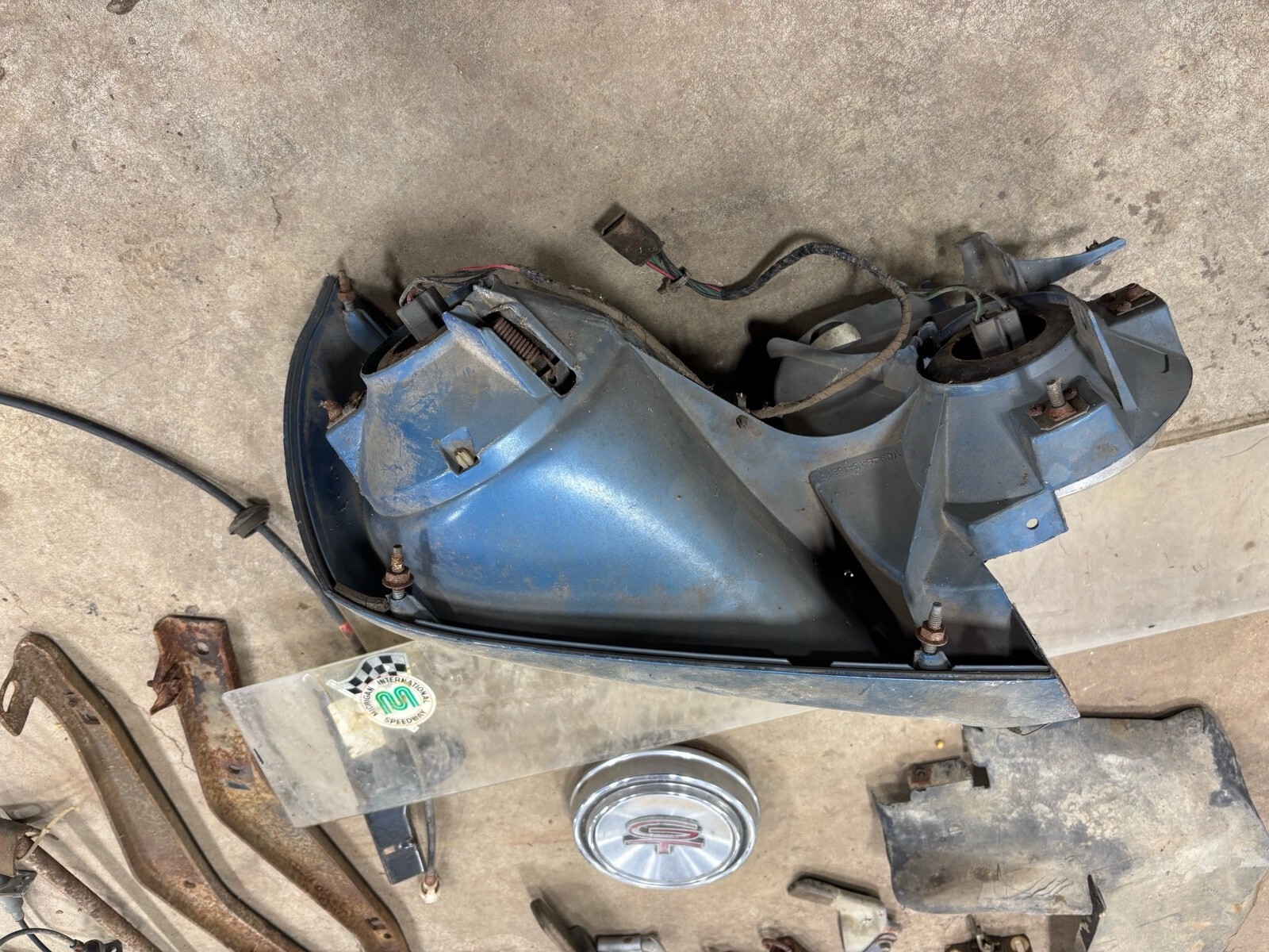 My dad bought this car in the current condition in 1980. He never got around to this one. This is a 69 gt convertible with a 390 and a 4 speed. Hit in the rear and the right front. The passenger side cowl and door hinge post are bent. I do not have the passenger side fender, door, tail lights, front pan or rear pan. Something fell on the roof over 20 years ago, looks like the convertible top supports need to be straightened. Brake drums have been removed so the car rolls. The engine does not turn over. Vin 9f03s……. 9 for 69 model year, f is the Dearborn plant, 03 is a 2 door convertible and s engine code for a 390. Door tag has 76a for a 2 door convertible with standard bucket seats, color code 6 for Acapulco blue, 2b trim is light blue Corinthian vinyl and light blue kiwi grain vinyl, 10b is a build date of February 10th, dso 56 is Davenport Iowa, r axle code is a 3.25 limited slip 9 inch and trans code 5 is for a 4 speed manual. Car needs quarters, all floors, probably all torque boxes, the right rear frame rail has a visible rust hole. Front frame rails and rockers look to be savable and maybe the left rear frame rail. The convertible seat reinforcements look like they can be saved as well. The door and fender could be patched up but I would buy new and the deck lid has some rust along the edge. The hood isn’t bolted on and it looks like the mounts for the hinges are missing, so if you use an open transport, the hood needs to be strapped down. I trailered it on an open trailer from the storage location to my home, it was fine. This has to be a somewhat rare combo, there were not that many big block convertibles, let alone 4 speed big block gt convertibles.