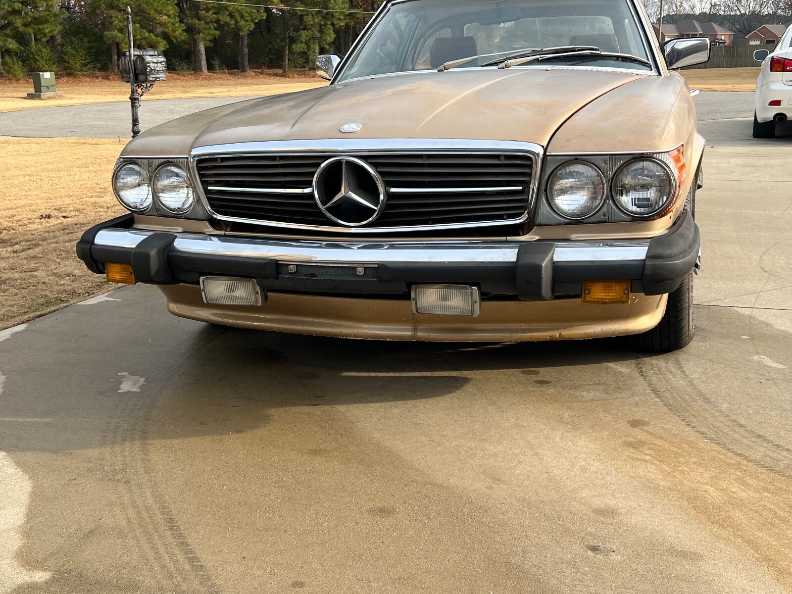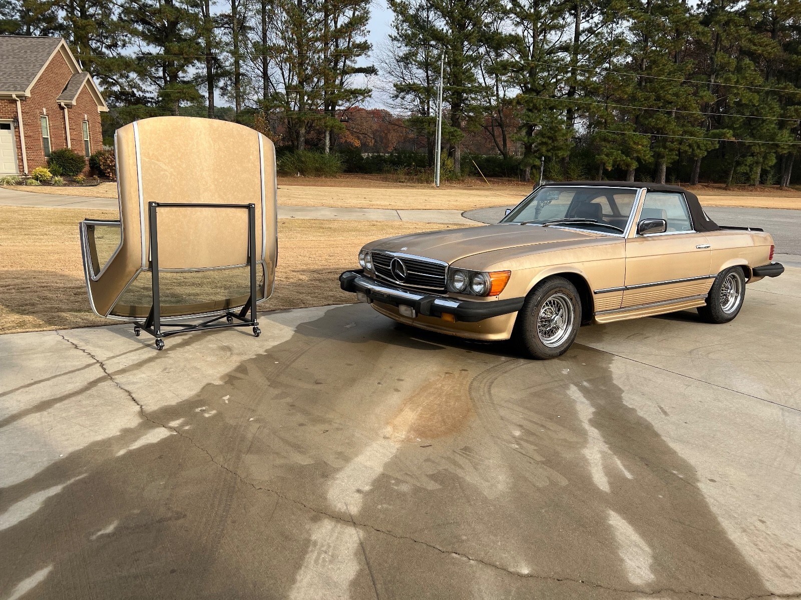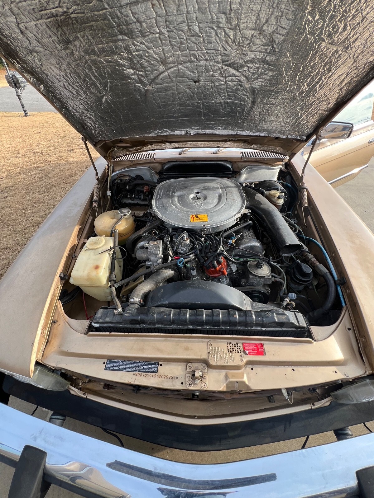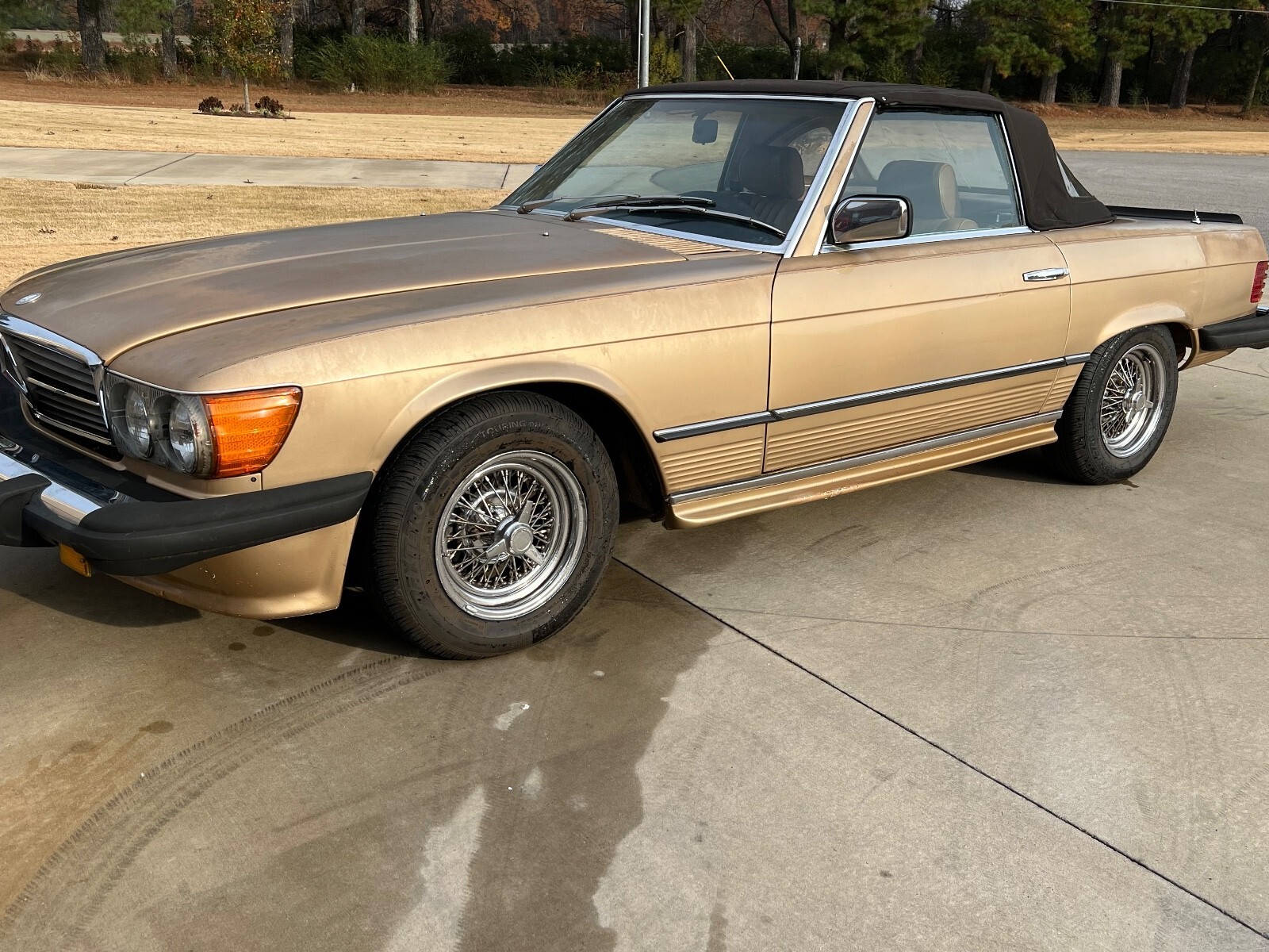 Hello,I am selling my beautiful Gold Mercedes Roadster. This is the 1983 380SL. This Gold Mercedes also has the front air dam bumper and the rear spoiler as well as the side skirts. It gives it that AMG look. Equippedwith Power Windows, Power Steering, Power Brakes, New Tires. New Oil and Filter change. New Air Filter, New Fuel Pump, New Fuel Filter and new Fuel Accumulator. The brown convertible cloth top is in great condition with no rips or tears. Also, comes with the chrome wire wheels. The paint is old and will need a re-spray to look new again.Please look at my 100% Positive feedback from the last 28 years of selling here on Ebay... MAKE OFFER AND YOU JUST MIGHT WIN!!!