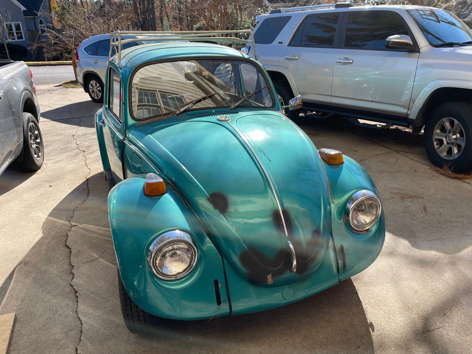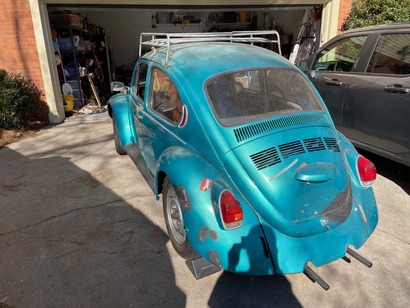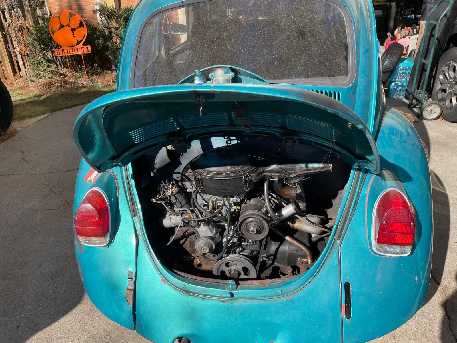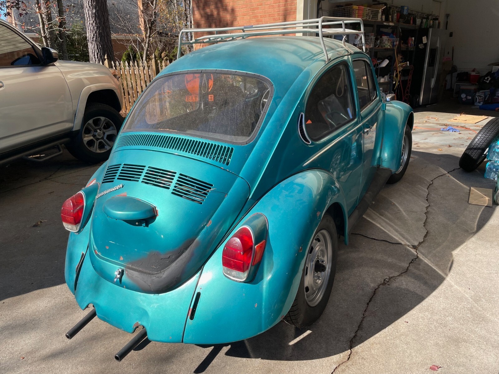 I bought this beetle several years ago with the intention of making a perfectly stock beetle. It starts right away and runs like a top. It even has the original windshield-wiper-fluid powered by the spare tire pressure, though it’s going to need some new seals for this to work. Frame and suspension are in great shape, floor pans are solid, and even that spot under the battery that’s rotted out of most beetles is just fine there.