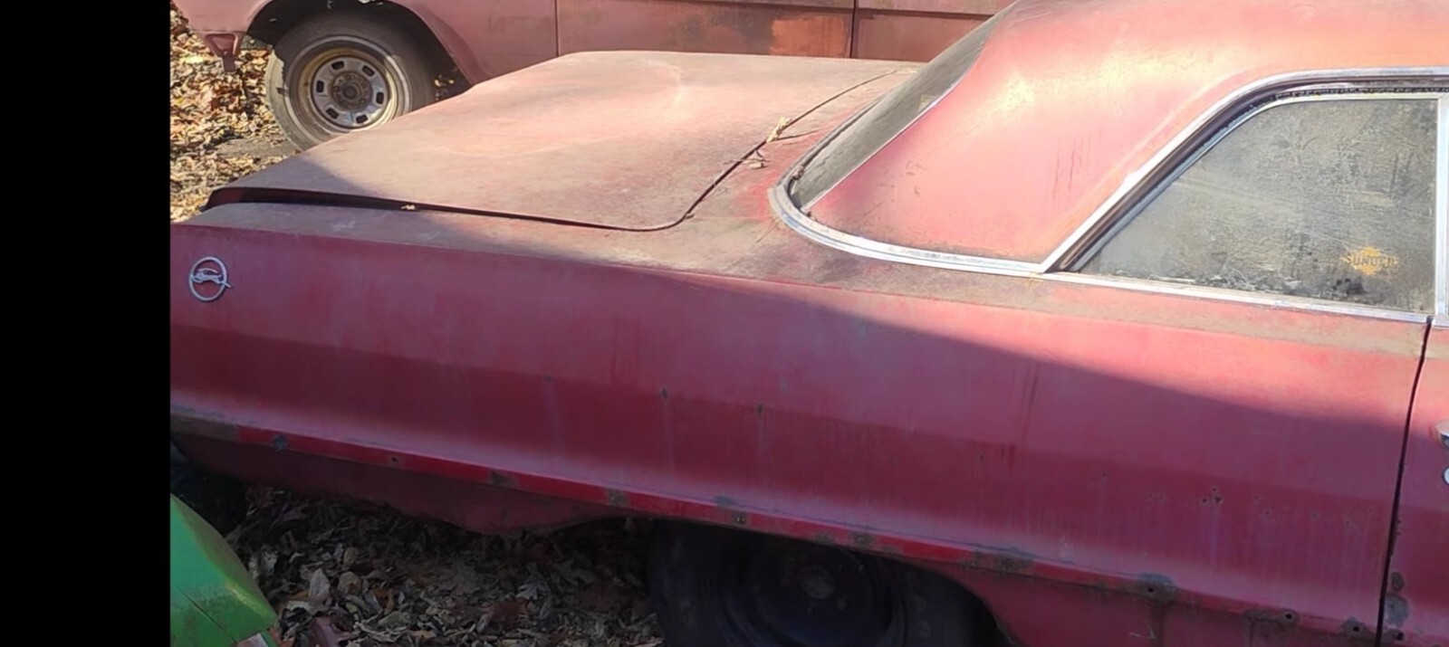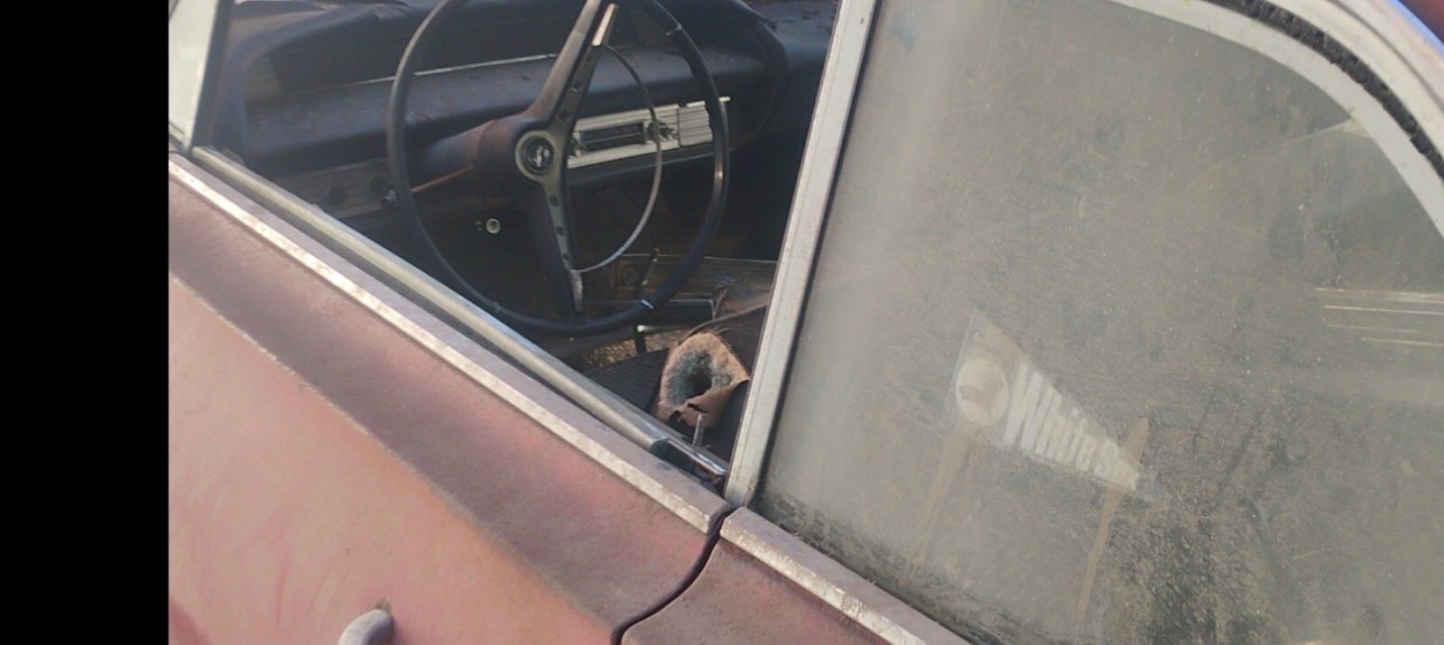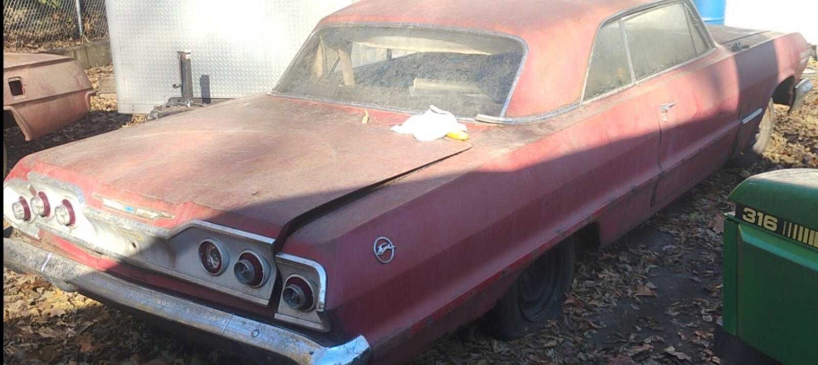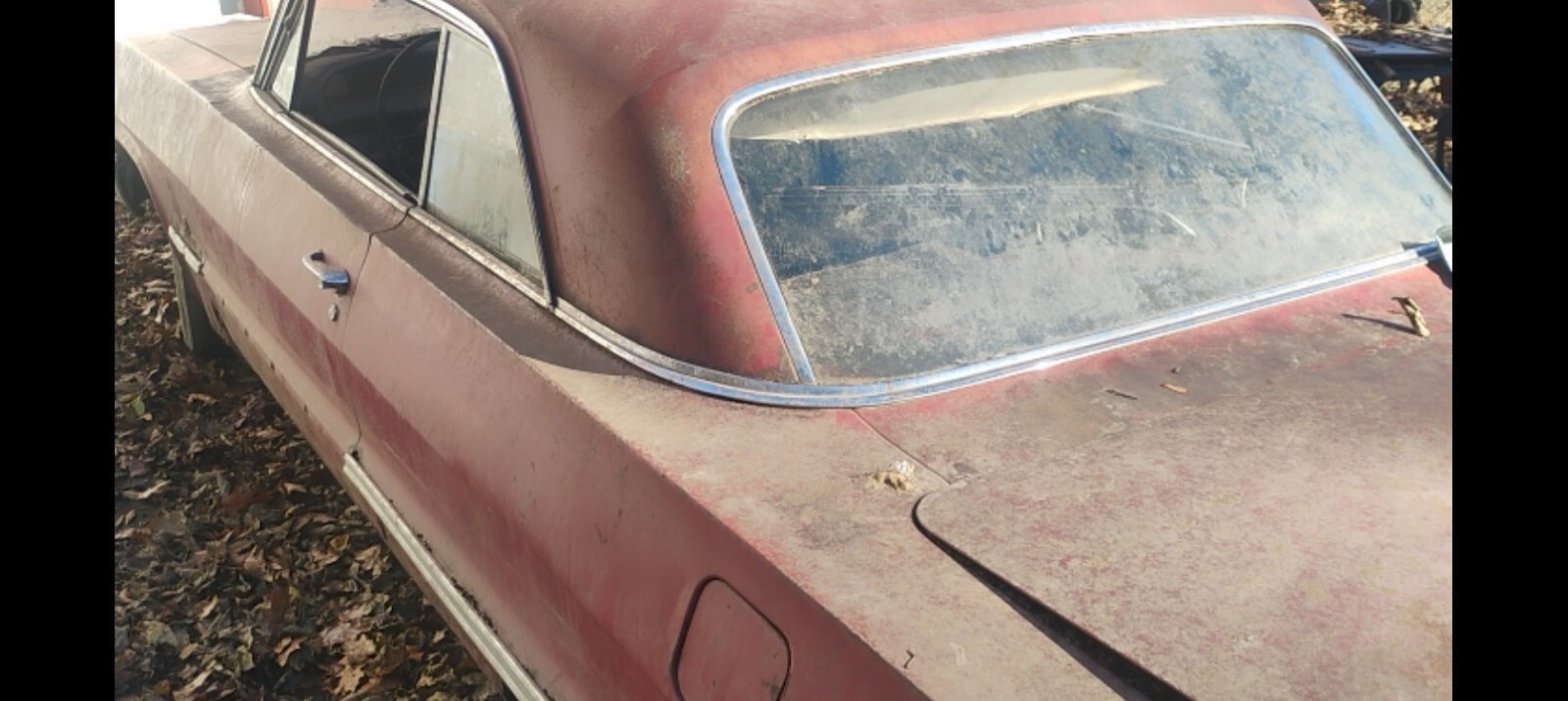 This Impala was sitting in storage for over 20 years. I'm selling it for a friend. The owner past away and he never really got to do much to it in his later years. It's now time for a new home. The Vin comes back as a V8 2 door hardtop. I was a bit confused when I noticed the 6 badges on the fenders. The owners sister who inherited his property stated that was his joke and regularly raced it around town. The engine appears to be a 327 4bbl. and converted to a floor shifted 4 speed. I can't verify exactly the engine or trans but, it looks very original. Someone had broken into the garage and stole the carb from it many years ago. The old exhaust is rusty and just kinda hanging there. It's got coilover rear shocks. This car is very straight. It came from the Janesville Wisconsin Assembly plant. Because of that region and the harsh weather, the lower edge of quarter panels behind the rear wheels are rusty. The lower part of the wheel wells behind the rear wheels also have rust holes. Plenty of original metal to work with for floor and well repair. The rocker panels are in nice condition and the overall sheet metal is mostly solid and intact. Lower edge of fenders need minor work. Plenty of metal to work with. The two rear tires are flat however, I will get something on there prior to sale so that it will roll easy. All the glass is in nice shape, just very dirty from critters walking walking all over it. The frame looks to be in very good condition with the suspension mounts intact and strong. There is no evidence of any damage to the frame due to an accident. The very tail end of the driver's and pass side rail has a little rust but looks to be very repairable. The two rear tires are flat however, I will get something on there prior to sale so that it moves easily. Lots of good straight trim. The dash pad is spilt and curled up but, all the metal and trim is totally original and uncut. The factory original radio is still in place. The steering wheel is in super great shape! This car is still just like it's been for over twenty years and has been pushed in and out of the barn about 10 times. Light reasonable sheet metal repair. Definitely a real nice candidate for restoration. It's a real nice builder. I've tried to take detailed photos the best I could. Nothing hidden or disguised. It's a no reserve bid so bid to win. Thanks for looking. Sold with a bill of sale. I'll try to answer questions the best I can.